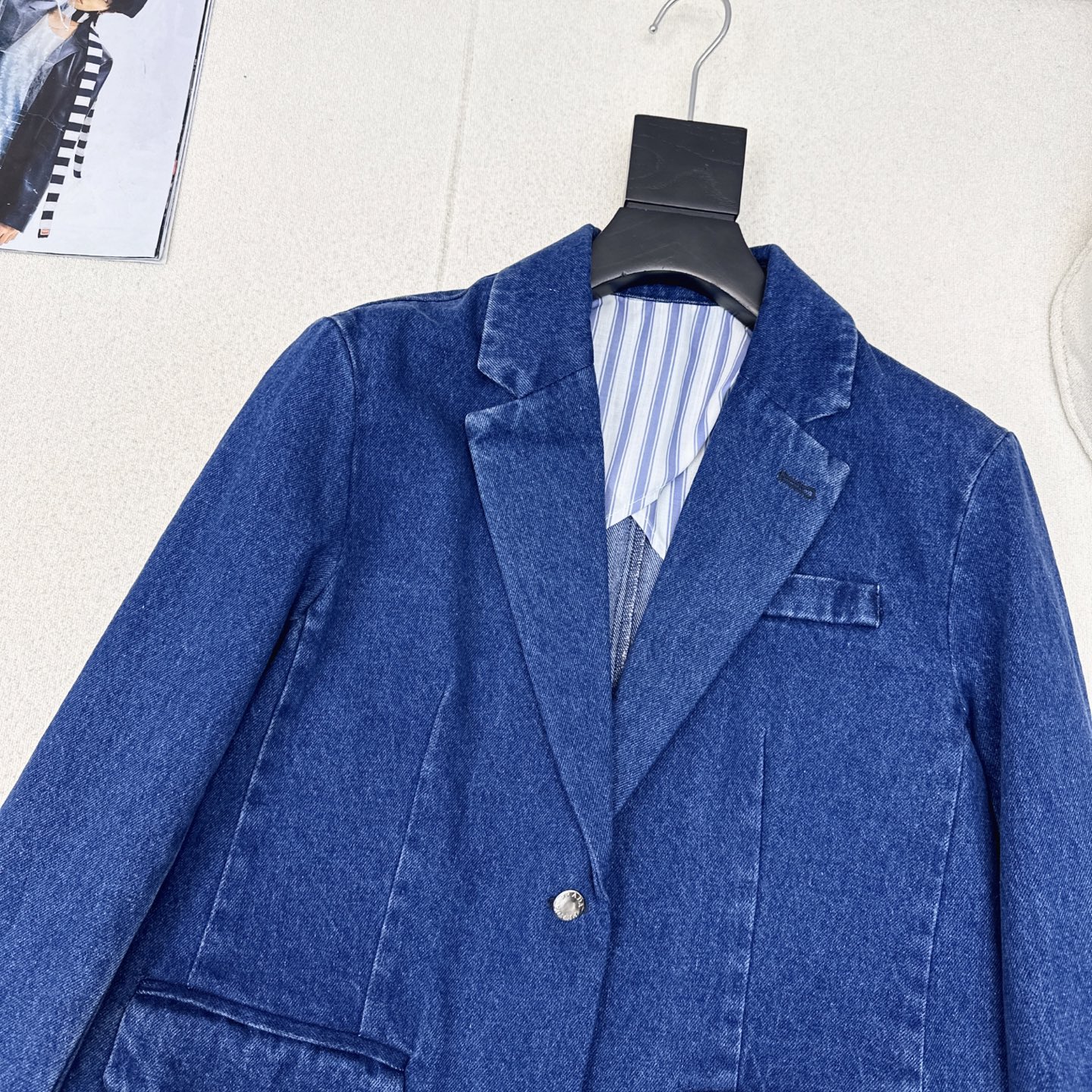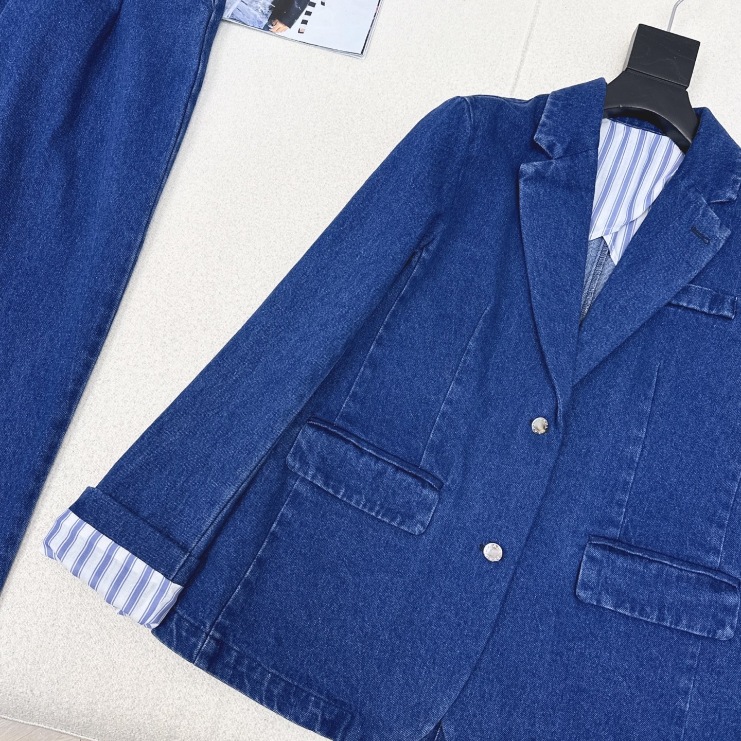 Details: Popular early-autumn denim suit, loose silhouette, sweet-cool style, flattering.