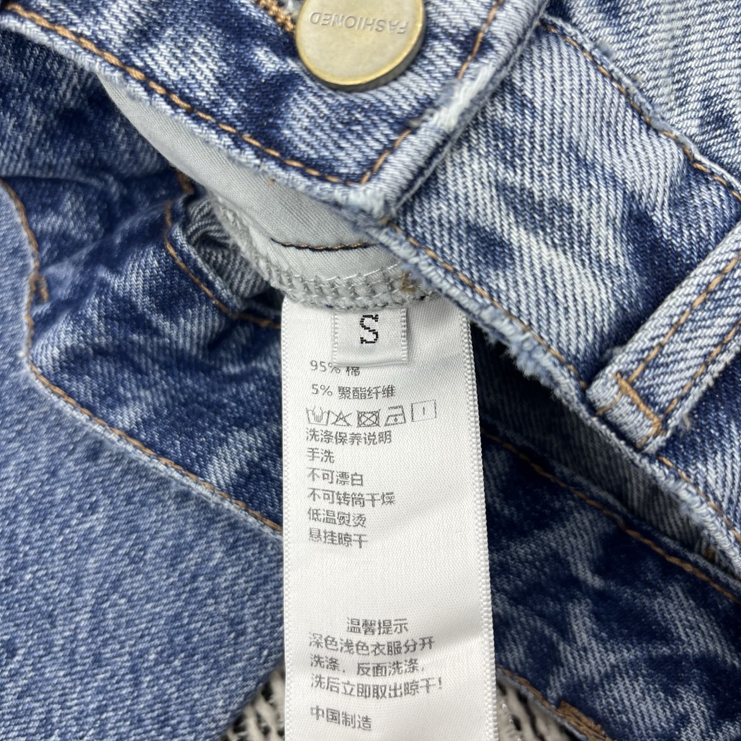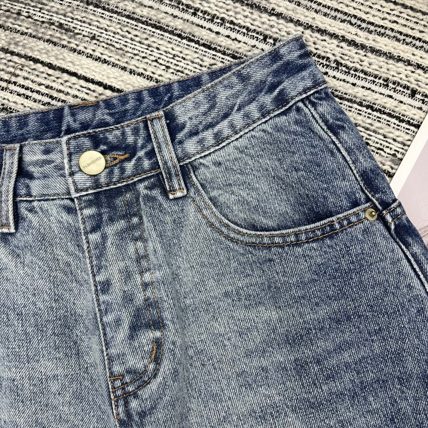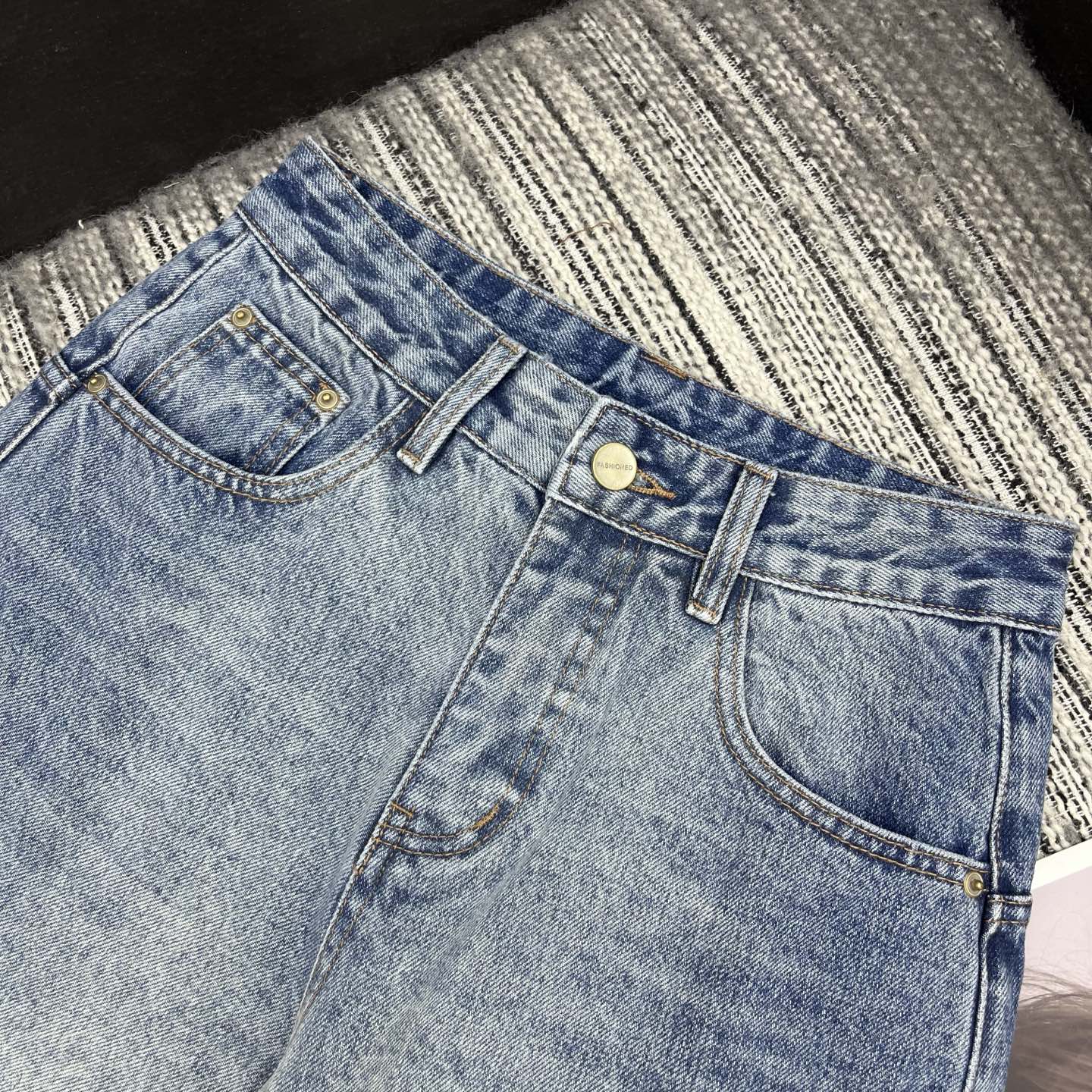Details: Highly recommended. New denim wide-leg pants with a classic inverted triangle logo pocket, having a great wash color.