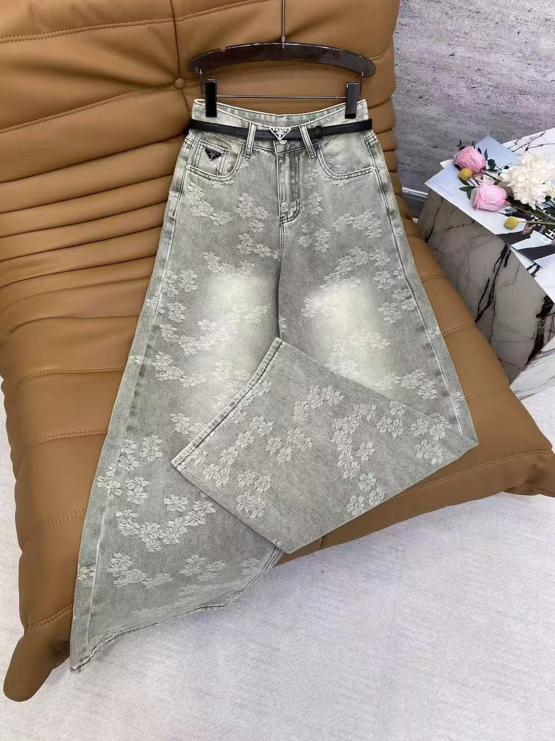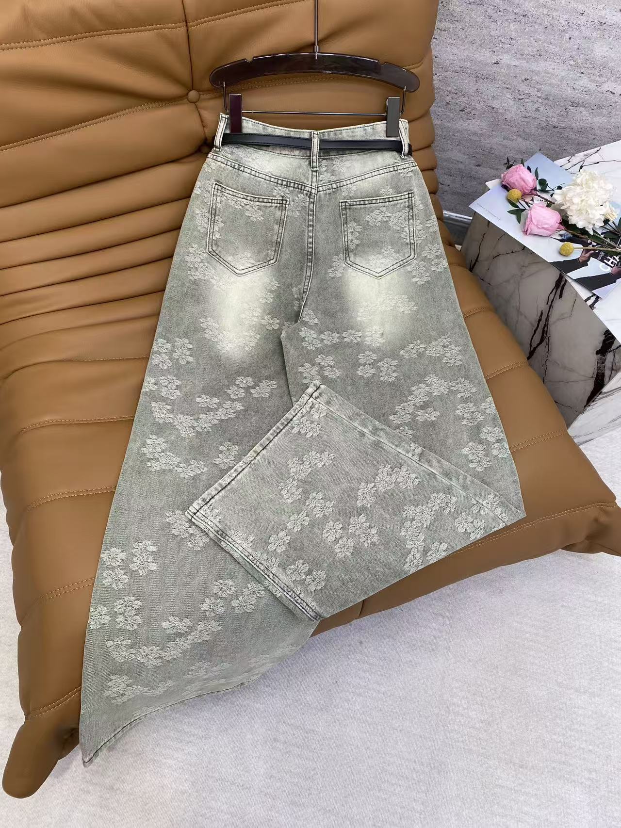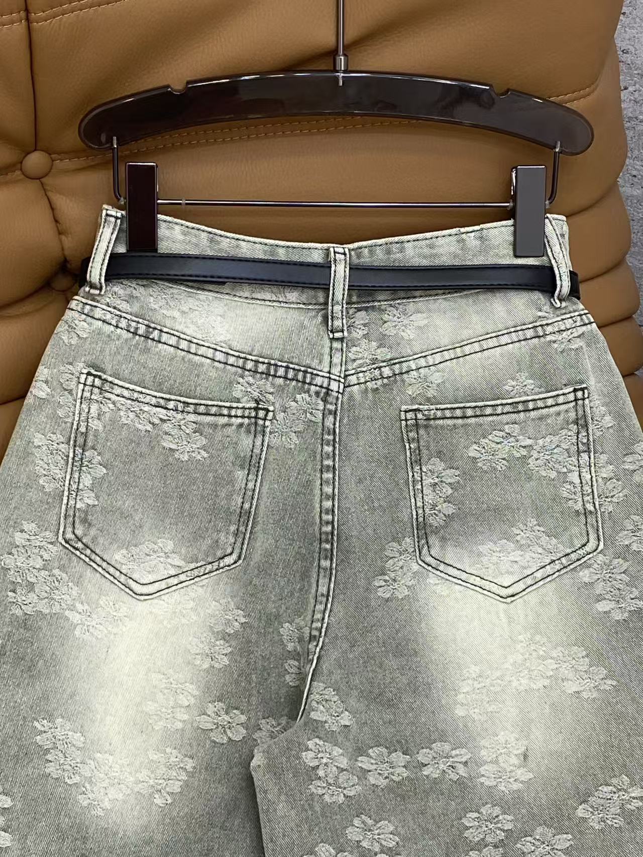 Details: Spring vintage floral jeans, high-waisted wide-leg, perfect for a unique look. High-end custom, fine workmanship