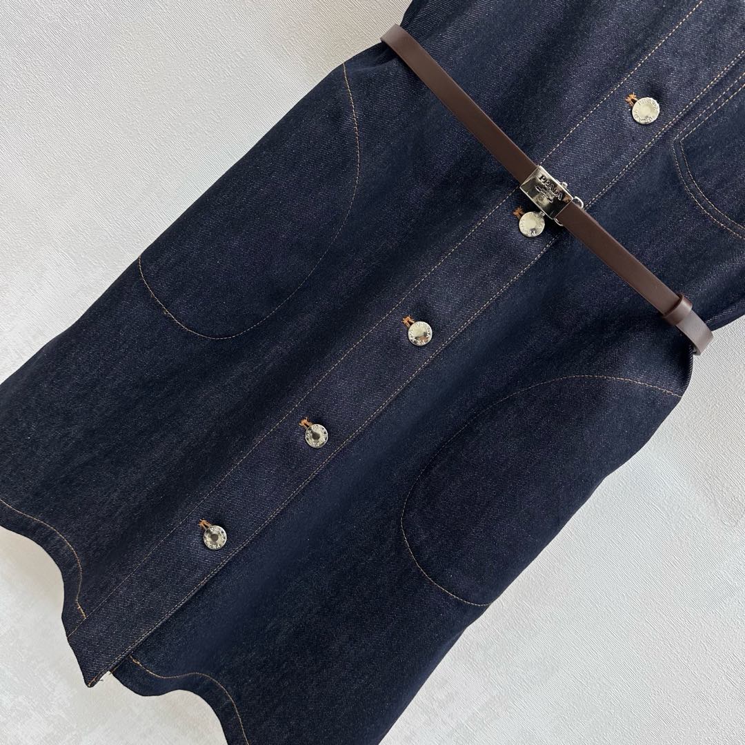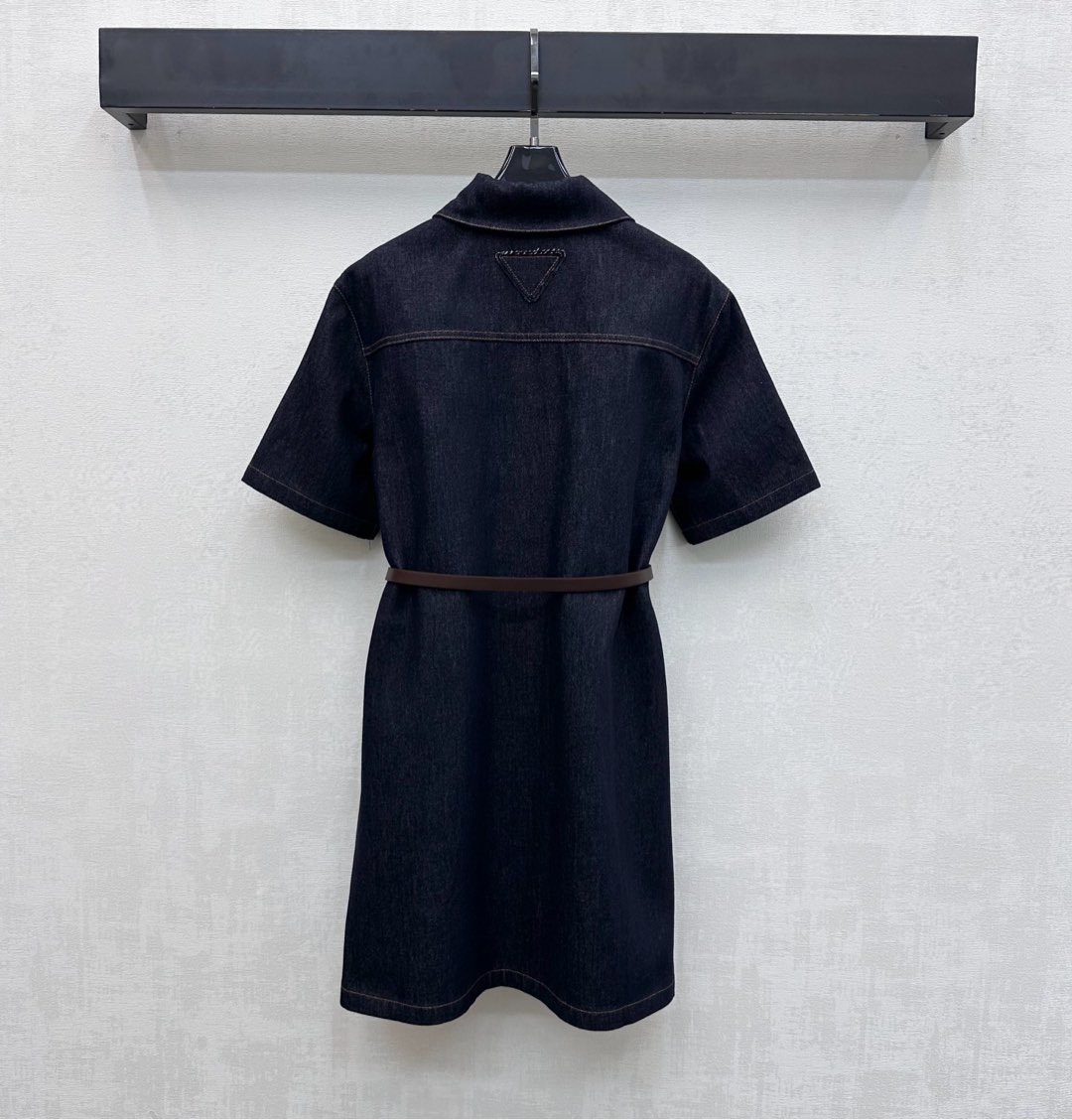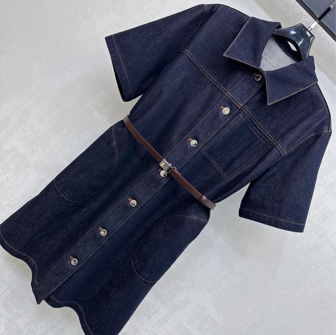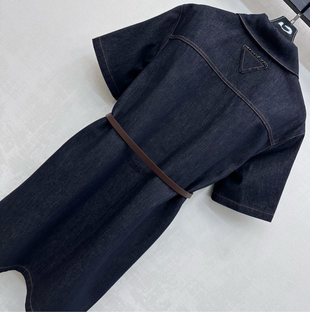 Details: Denim dress with belt, suitable for various occasions, high-end custom, fine workmanship