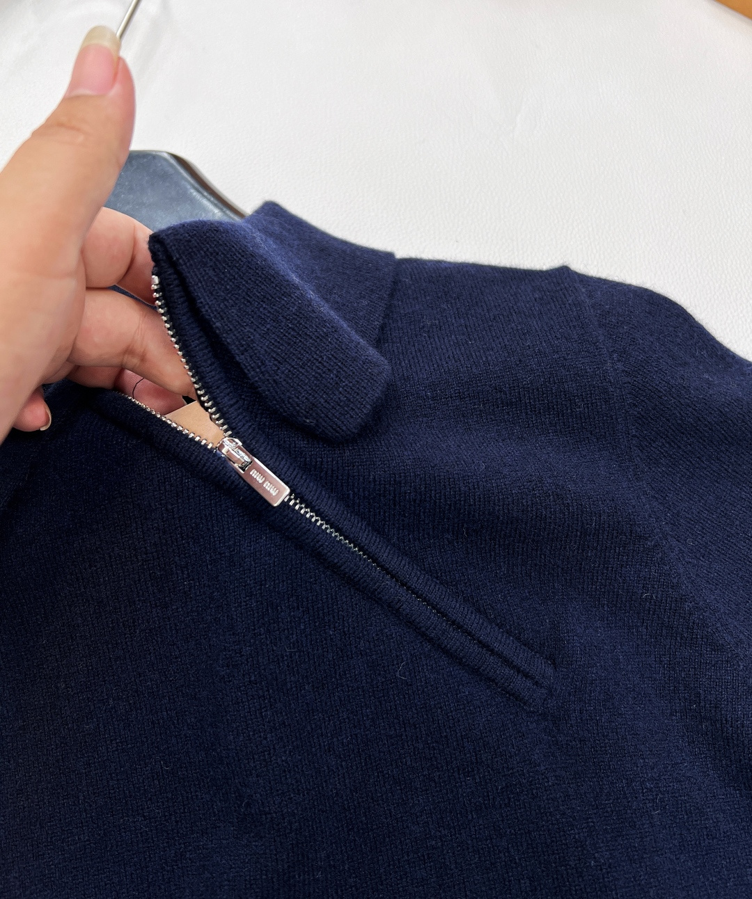 Details: Autumn goat - cashmere polo shirt with slant zipper, high - end customization, fine workmanship