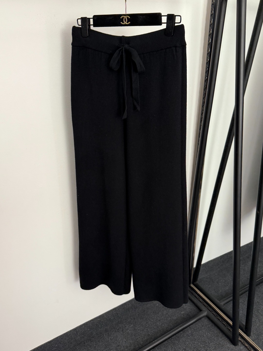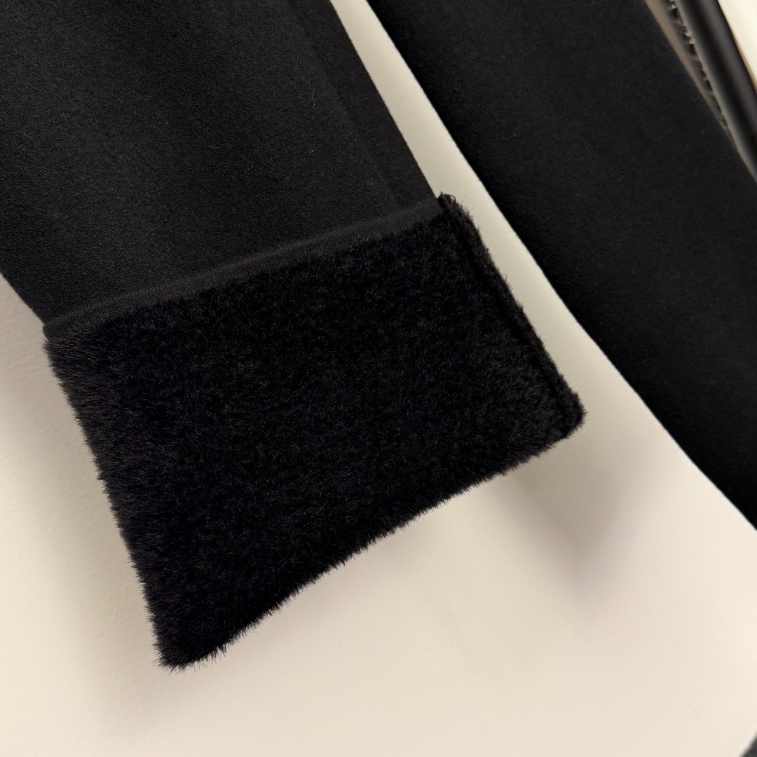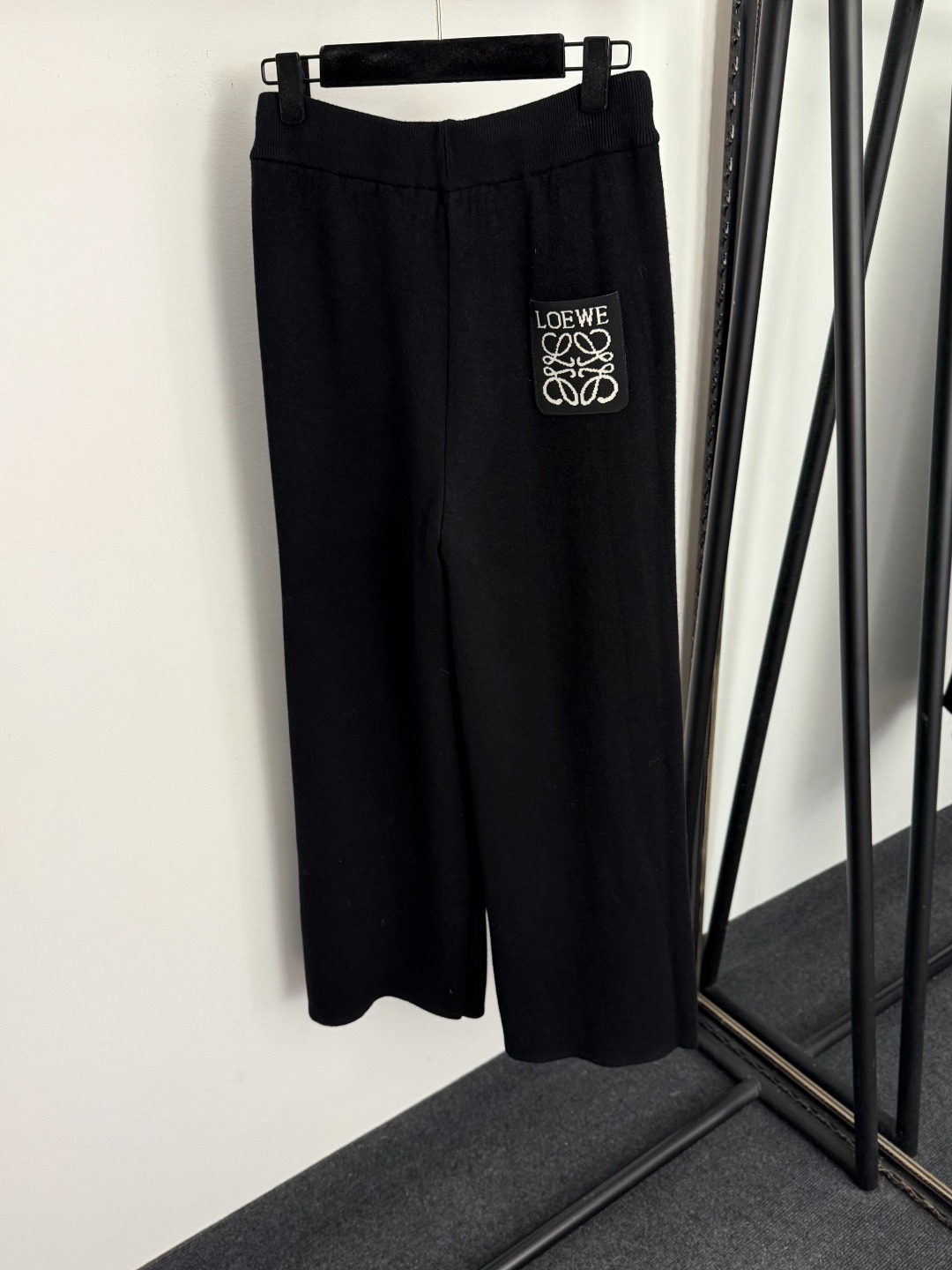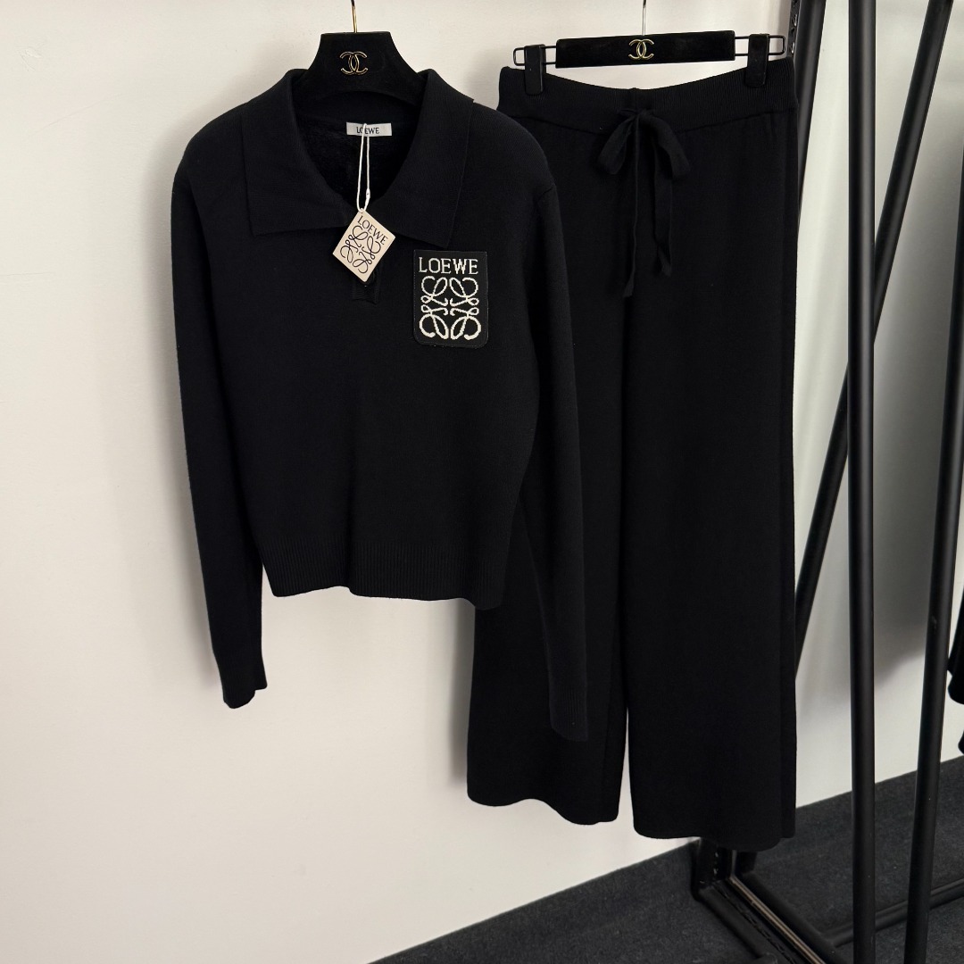 Details: New warm composite fleece suit, logo letter single-pocket half-button long-sleeved pullover knitted top and high-waisted knitted wide-leg pants, black, one size fits all.