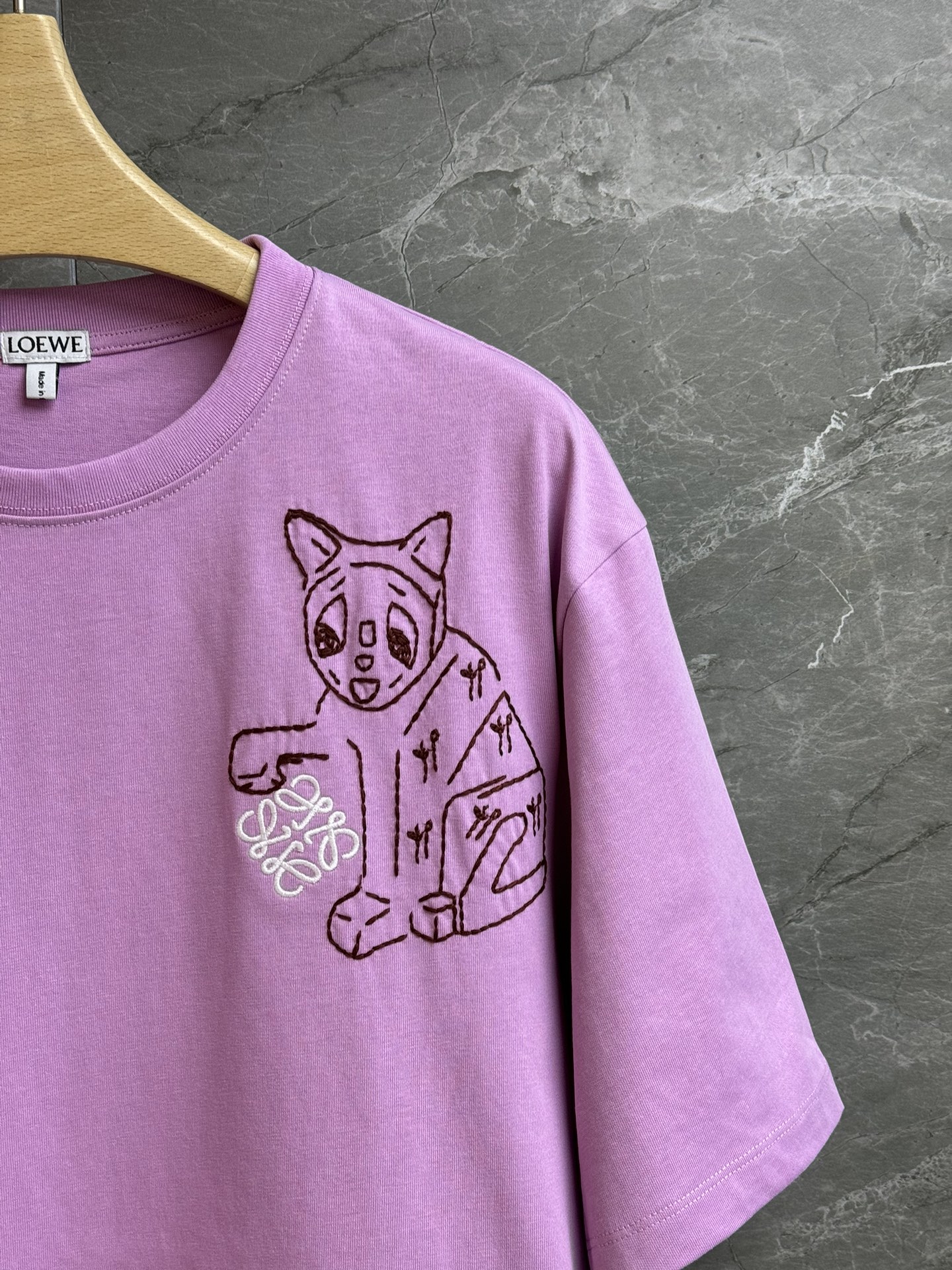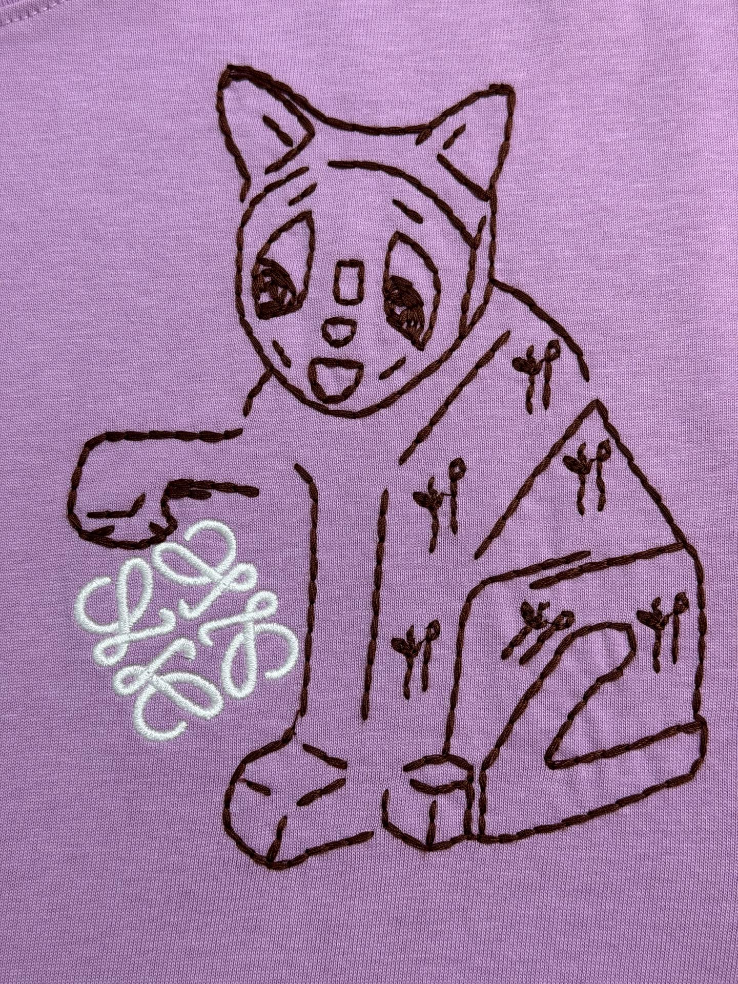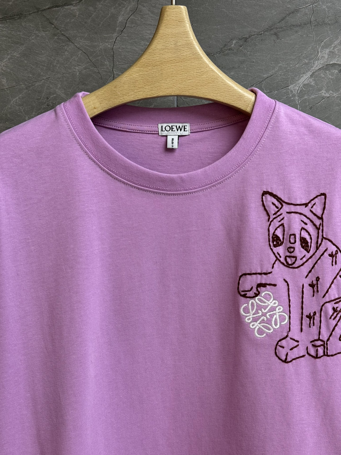 Details: Early spring cat - embroidered cotton round - neck loose - fit unisex T - shirt.