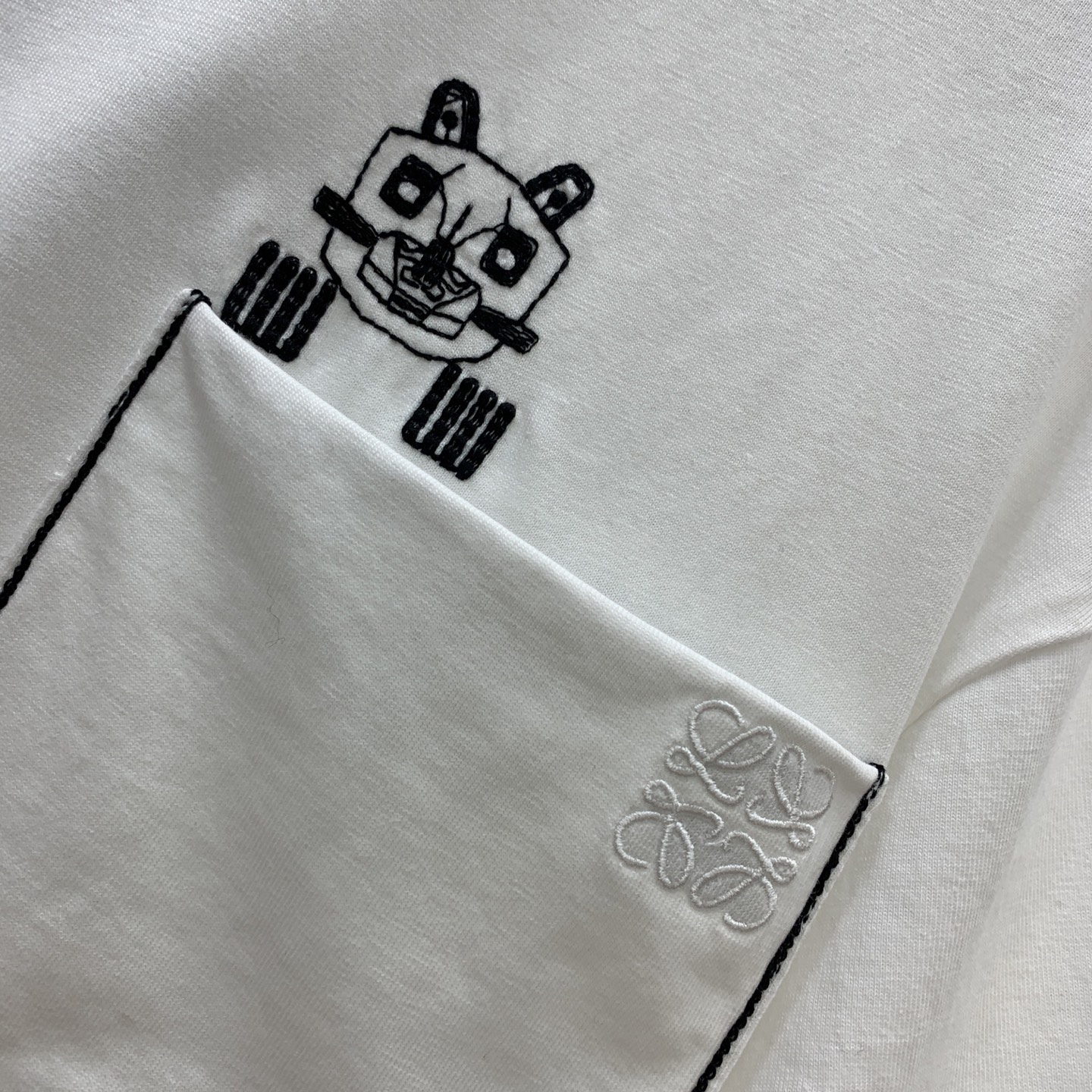 Details: Spring - Summer New Round - neck Short - sleeve T - shirt with Cat Embroidery, Two - color (Black/White), Available in M Size, High - end Customization