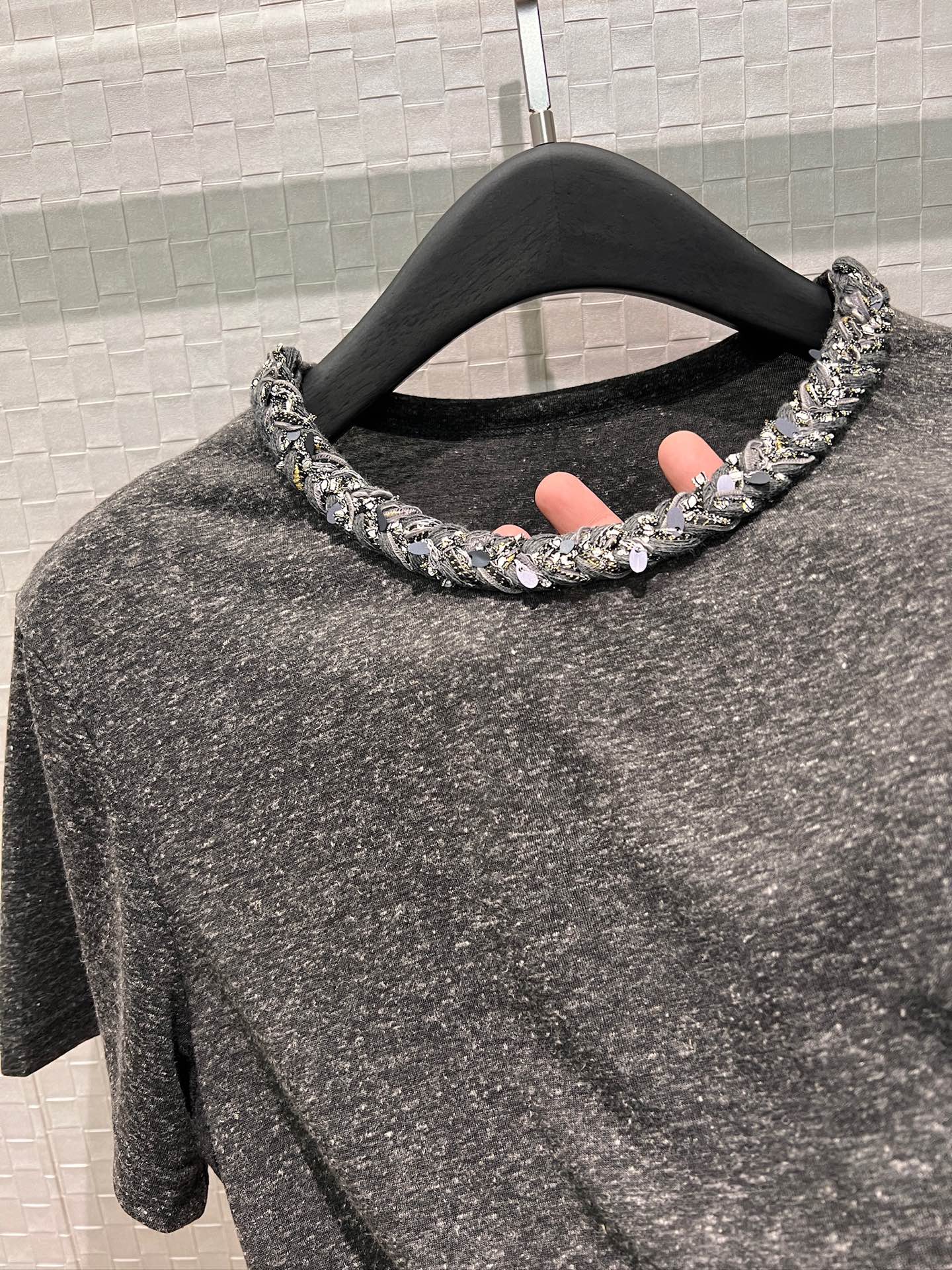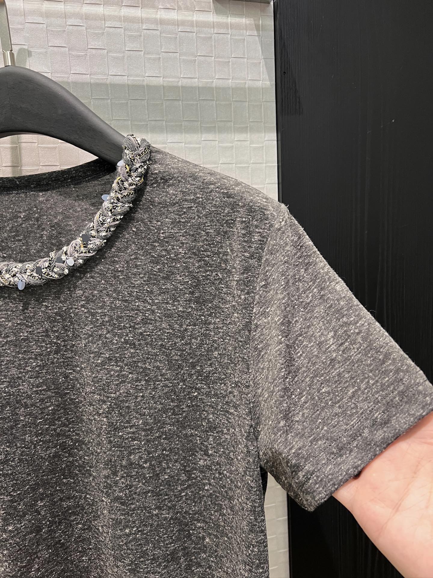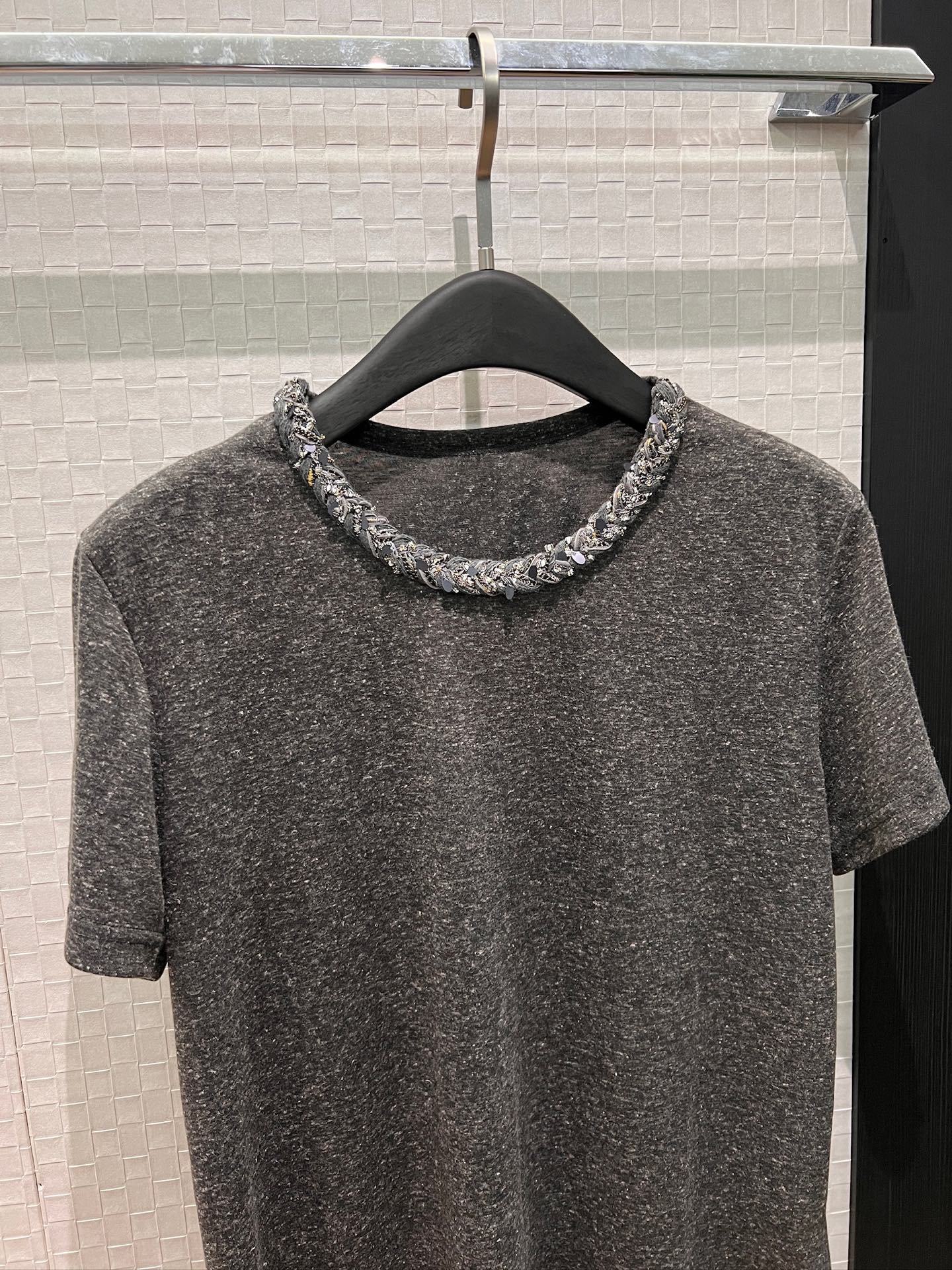 here:home > WOMENS > Loewe > Top Loewe (W) > Loewe Sequin Knit Collar Linen Cotton T-Shirt, Elegant