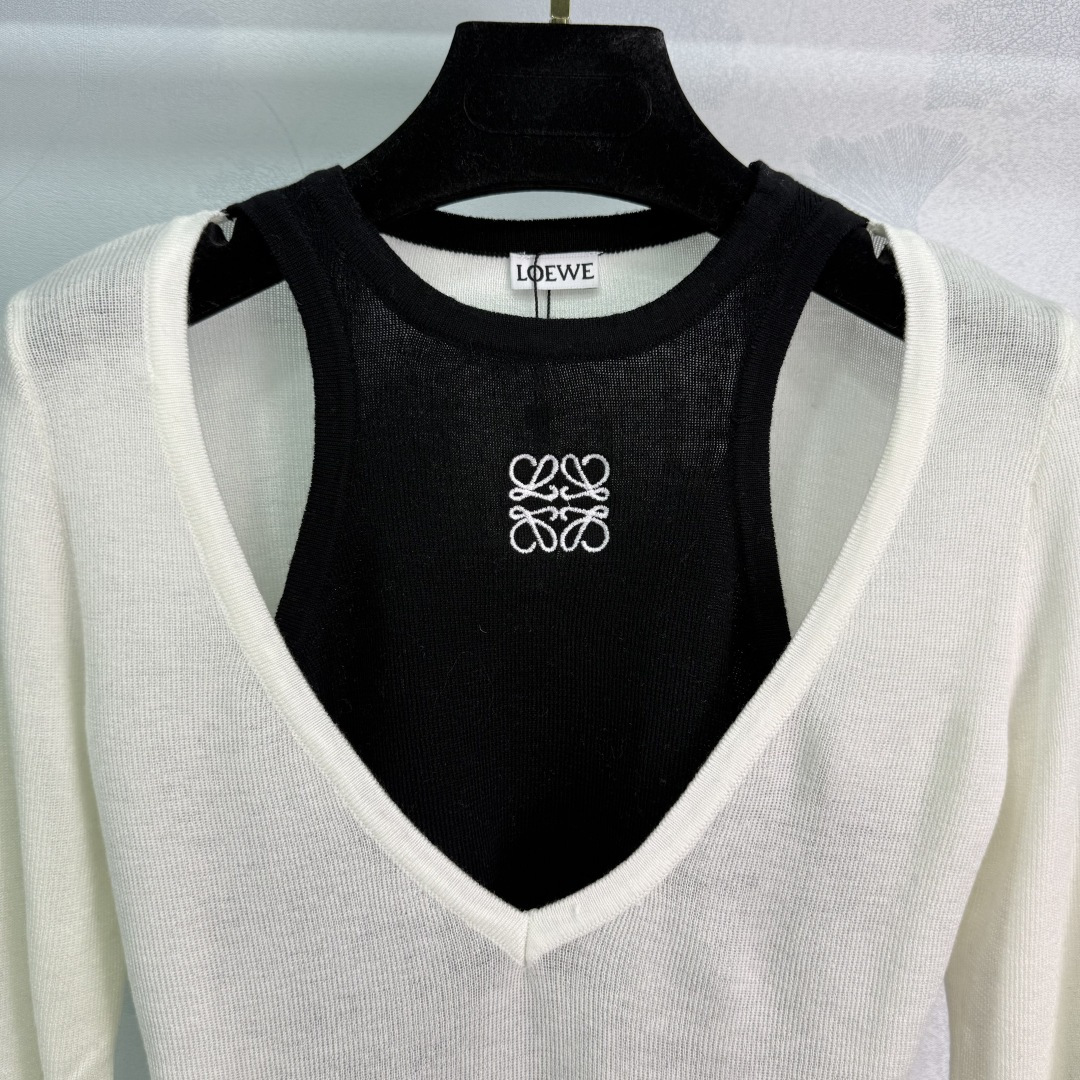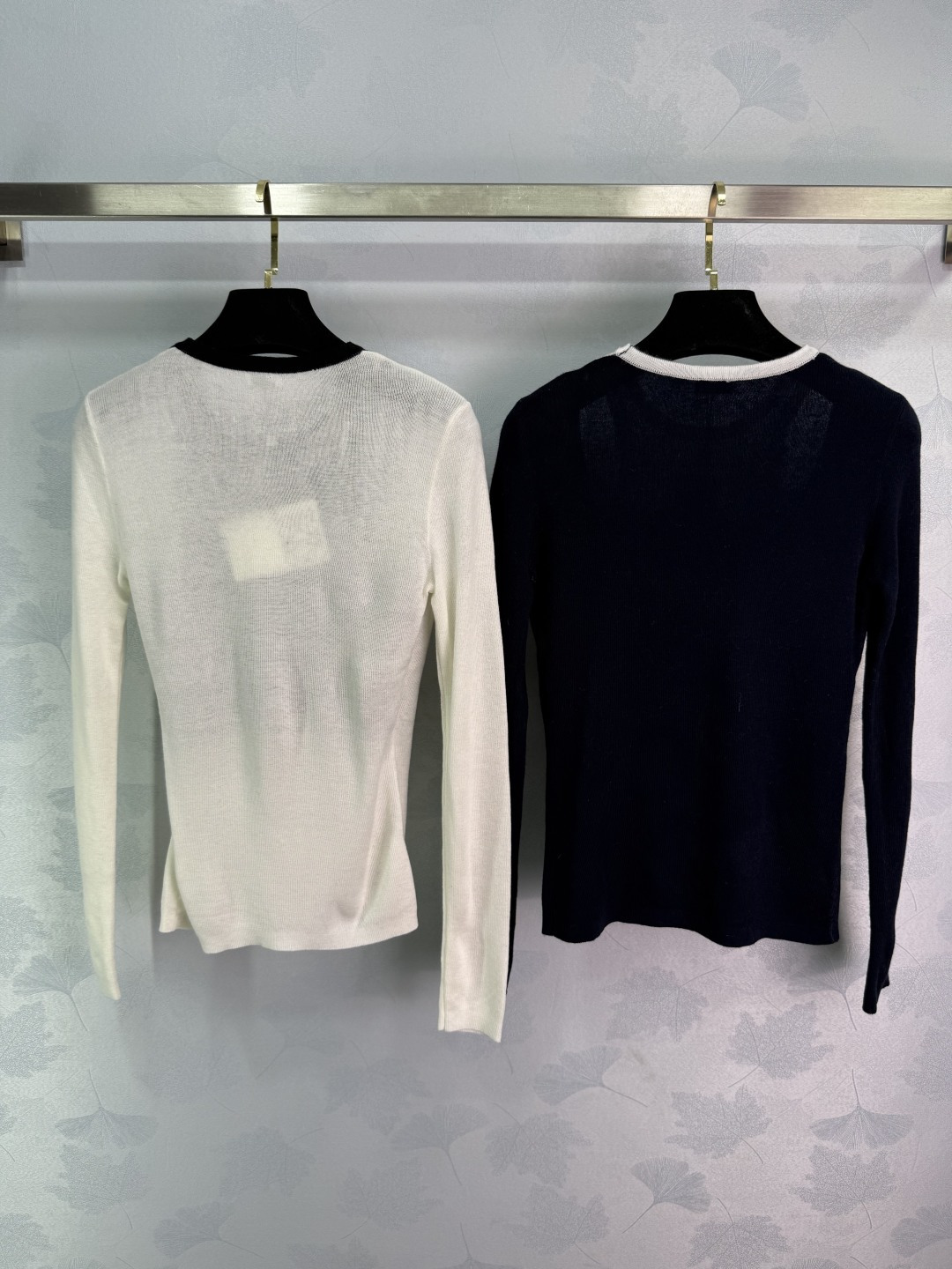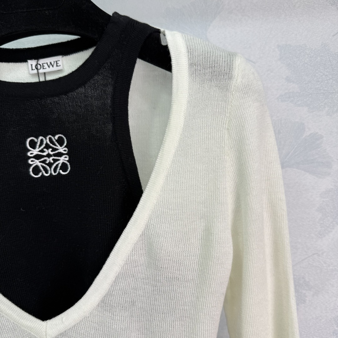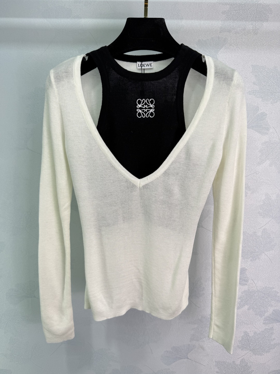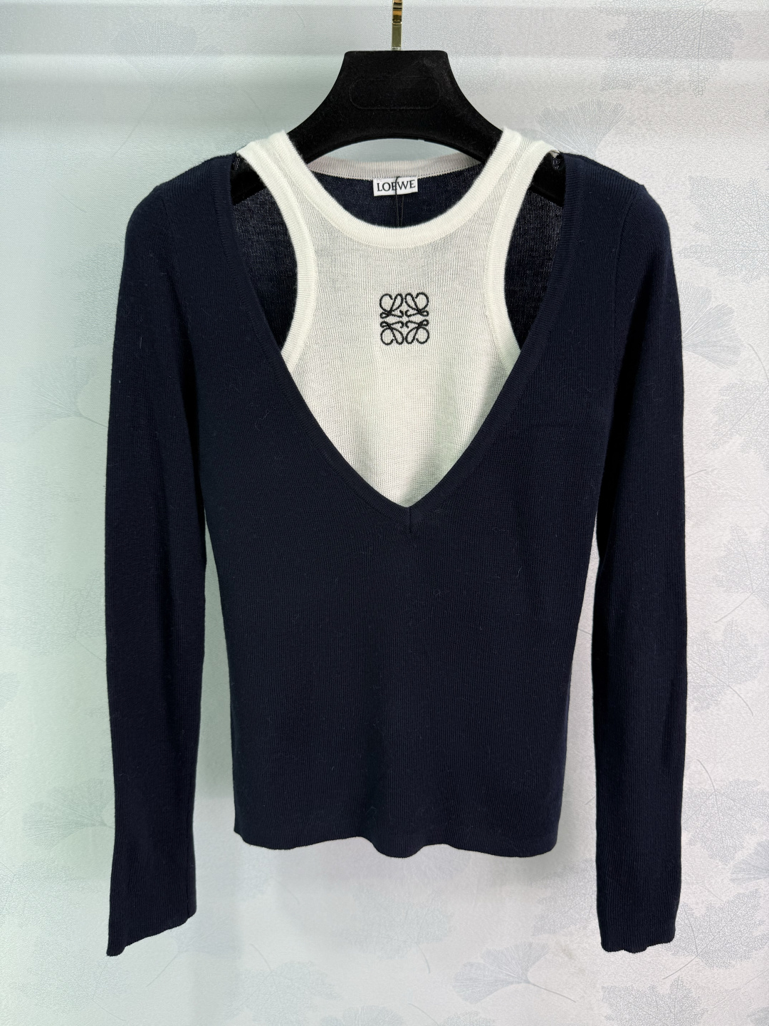 Details: Early Autumn Color-Blocked Fake Two-Piece Knitted Long-Sleeved Top, Elastic, With Logo, High-End Customization, Fine Workmanship