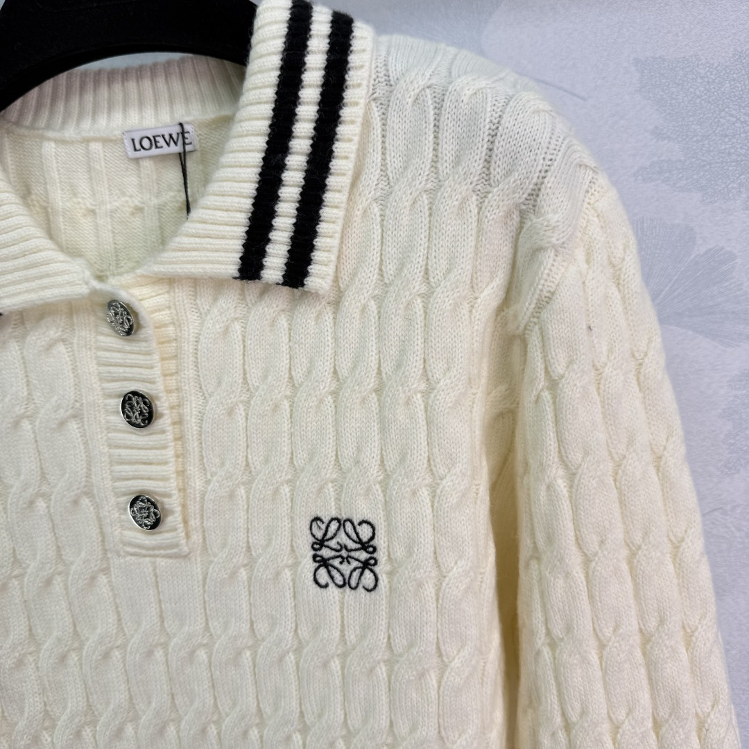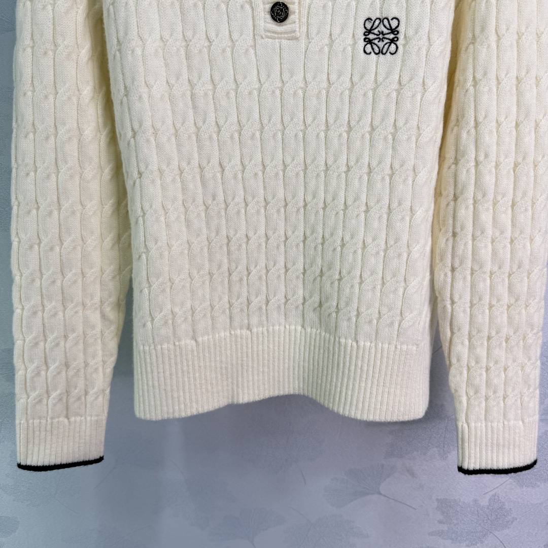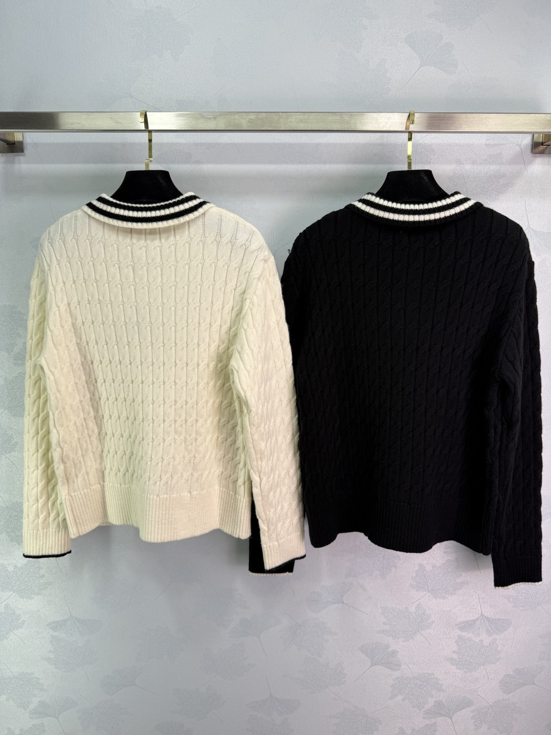 Details: Early Autumn Knitted Sweater with Twisted Stitch, Striped Binding and Totem Emblem, High-End Customization