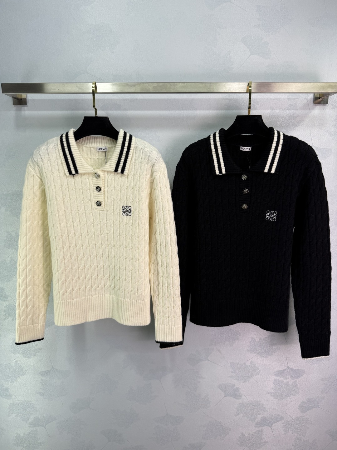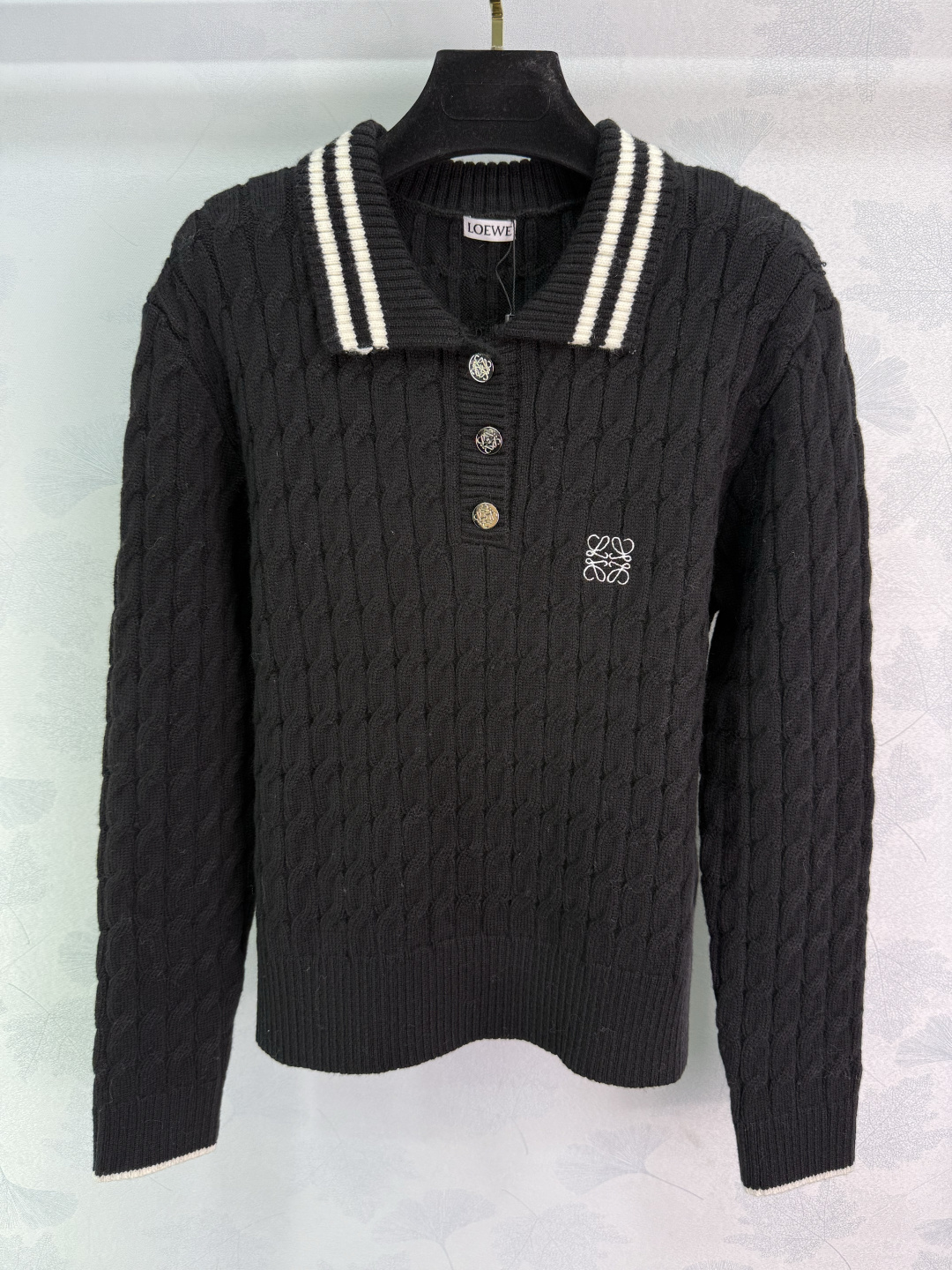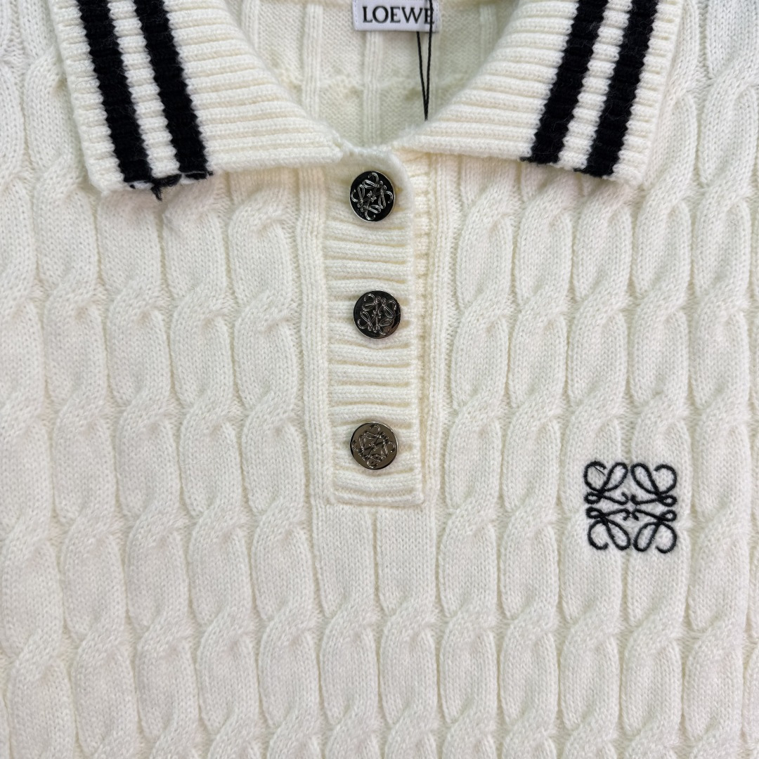 Details: Early Autumn Knitted Sweater with Twisted Stitch, Striped Binding and Totem Emblem, High-End Customization