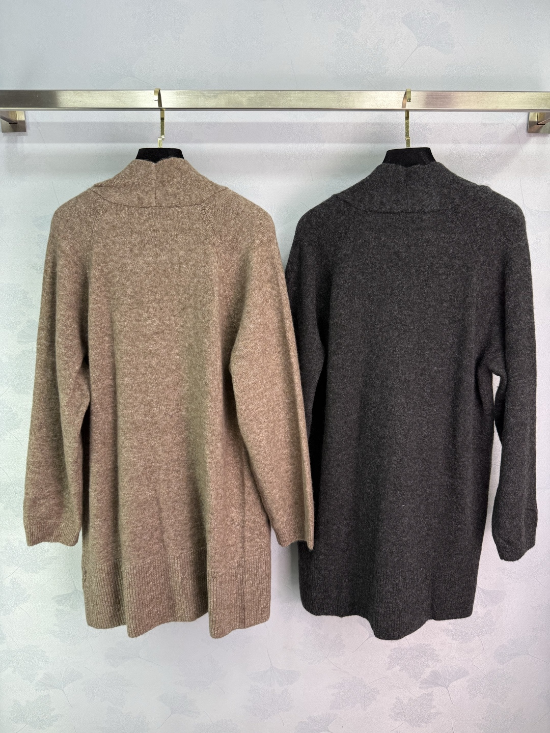 Details: Early autumn long cardigan with chest logo embroidery and large side pockets. Comfortable and versatile with high-end customization and fine workmanship for an original quality.