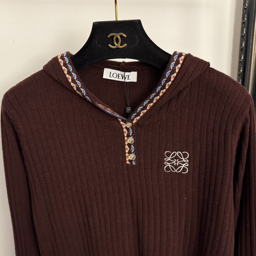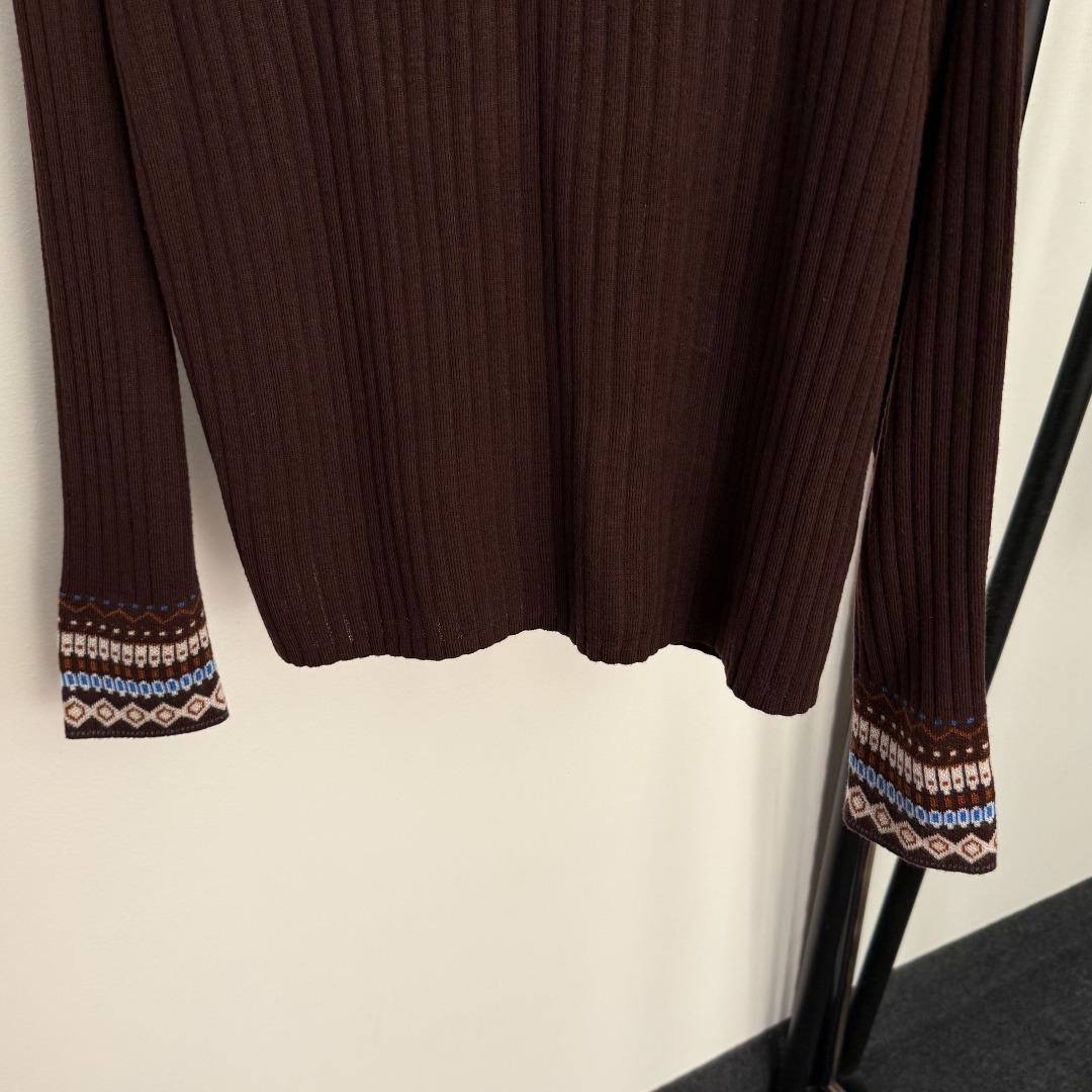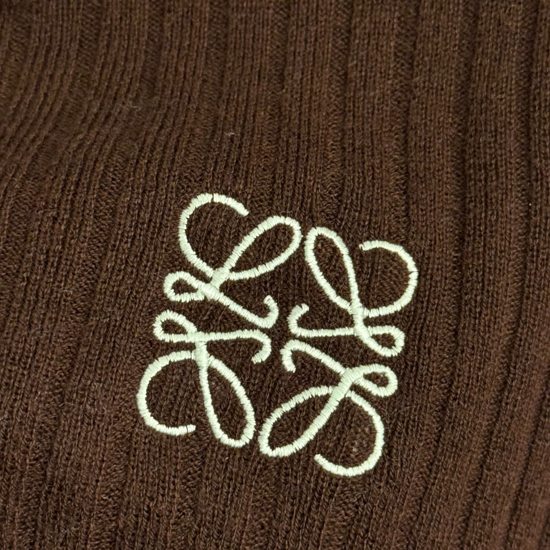 Details: New Logo Embroidery Knit Top in Coffee & Black, High-end Customization, Fine Workmanship