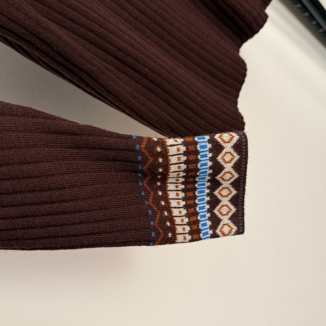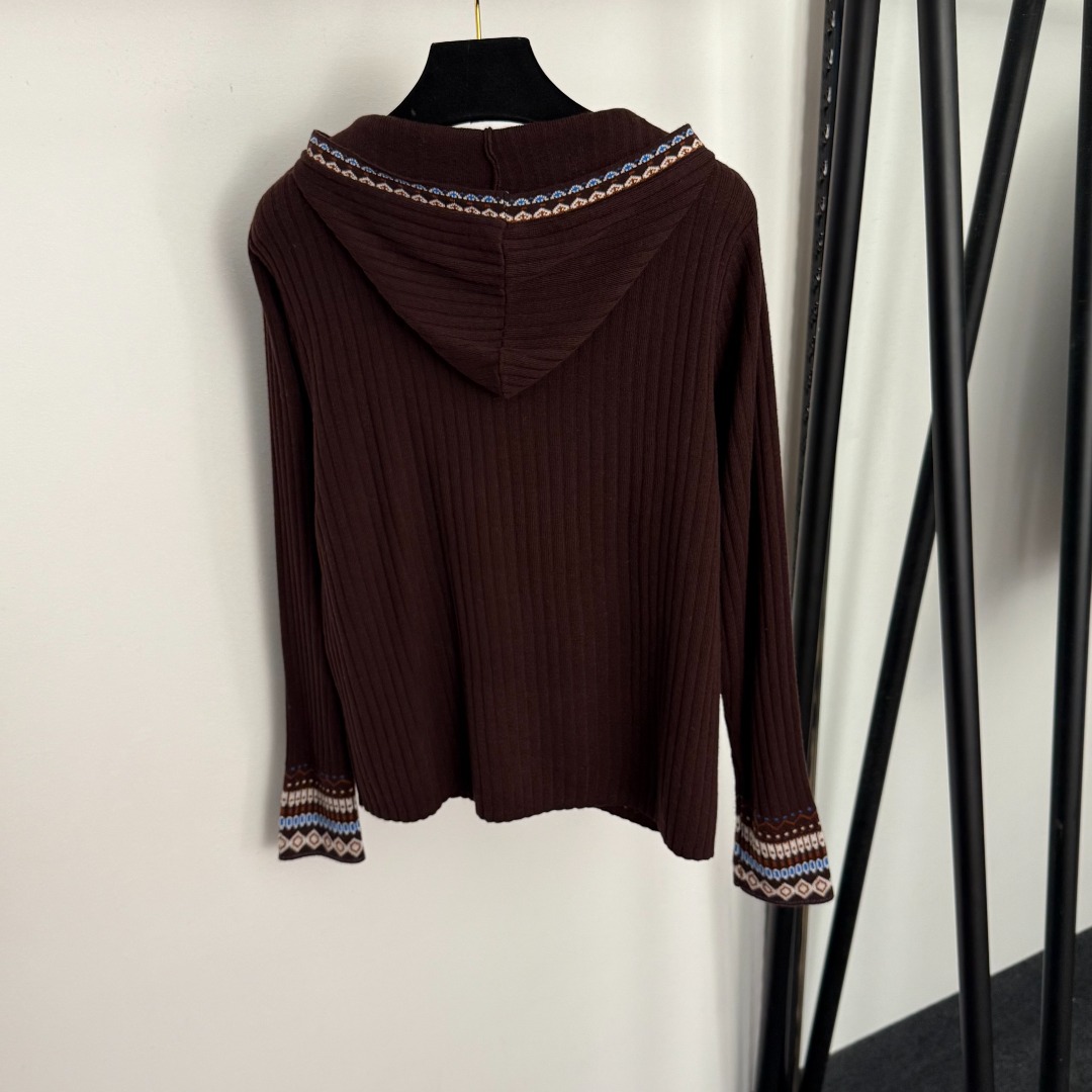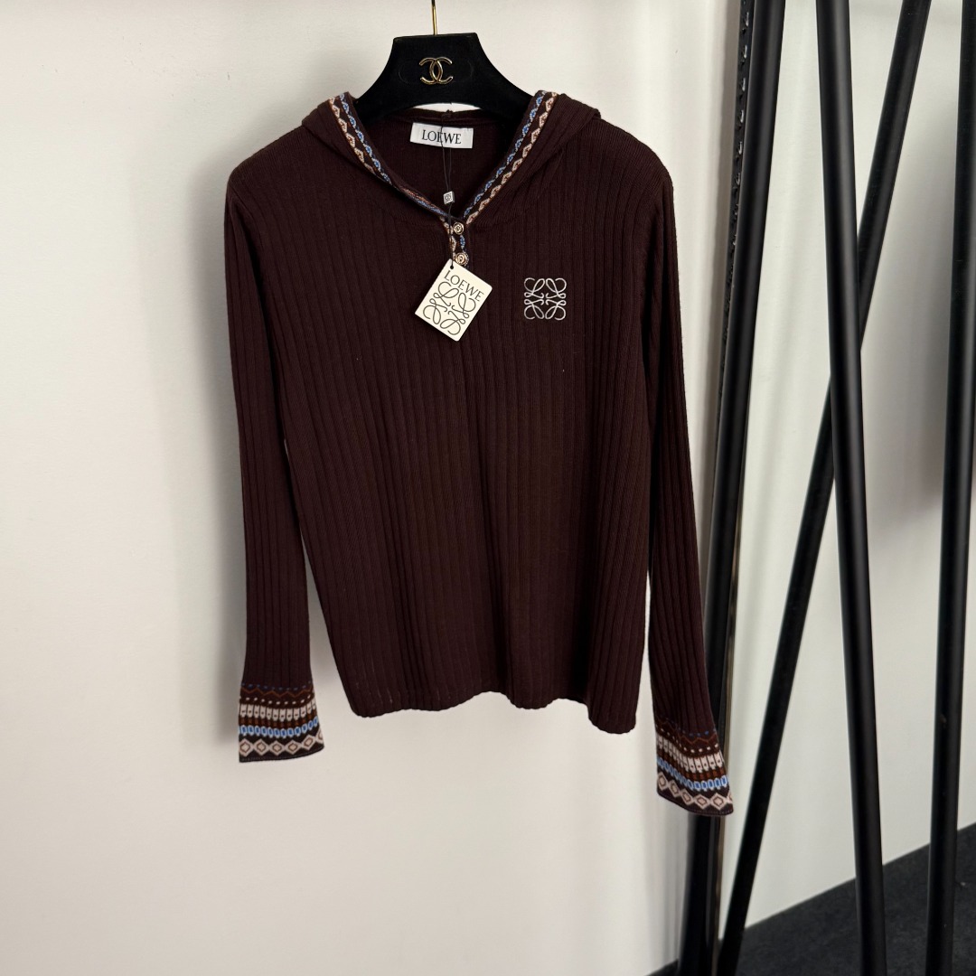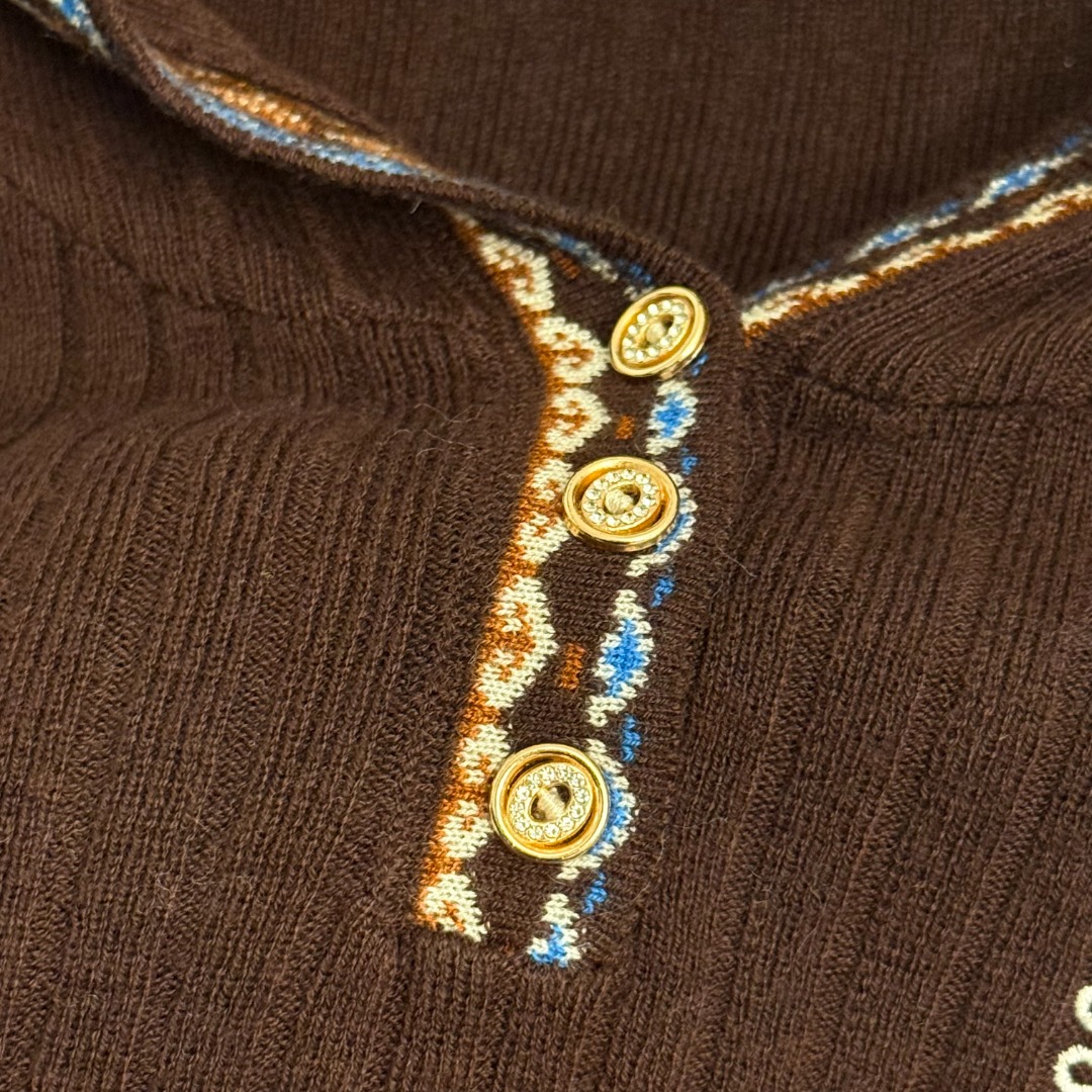 Details: New Logo Embroidery Knit Top in Coffee & Black, High-end Customization, Fine Workmanship