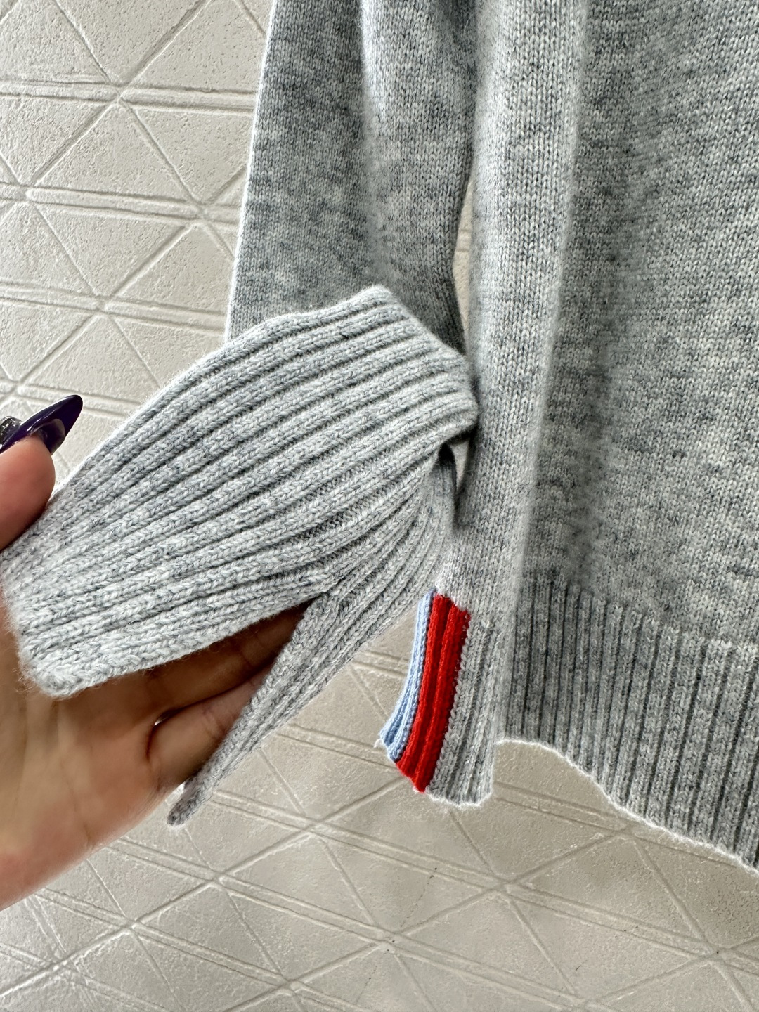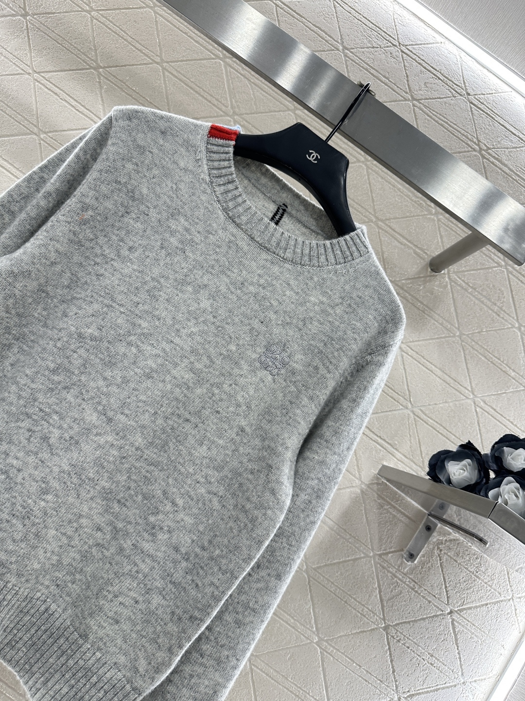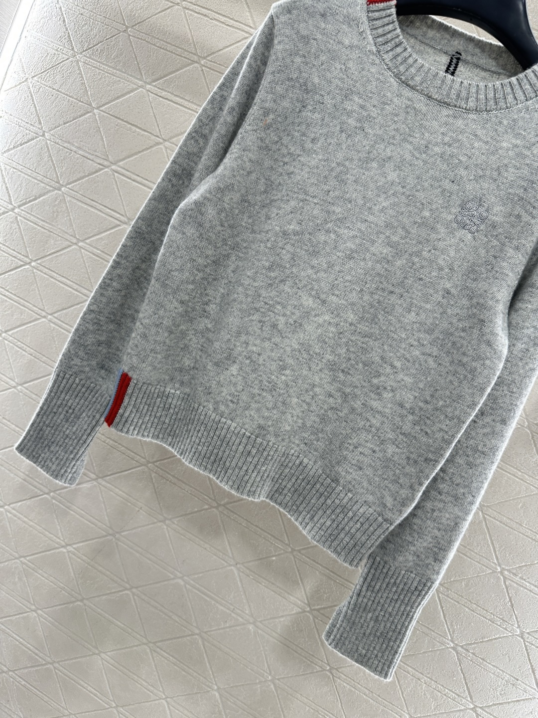 Details: Embroidered Contrast Knit Sweater. High-end Customization, Fine Workmanship