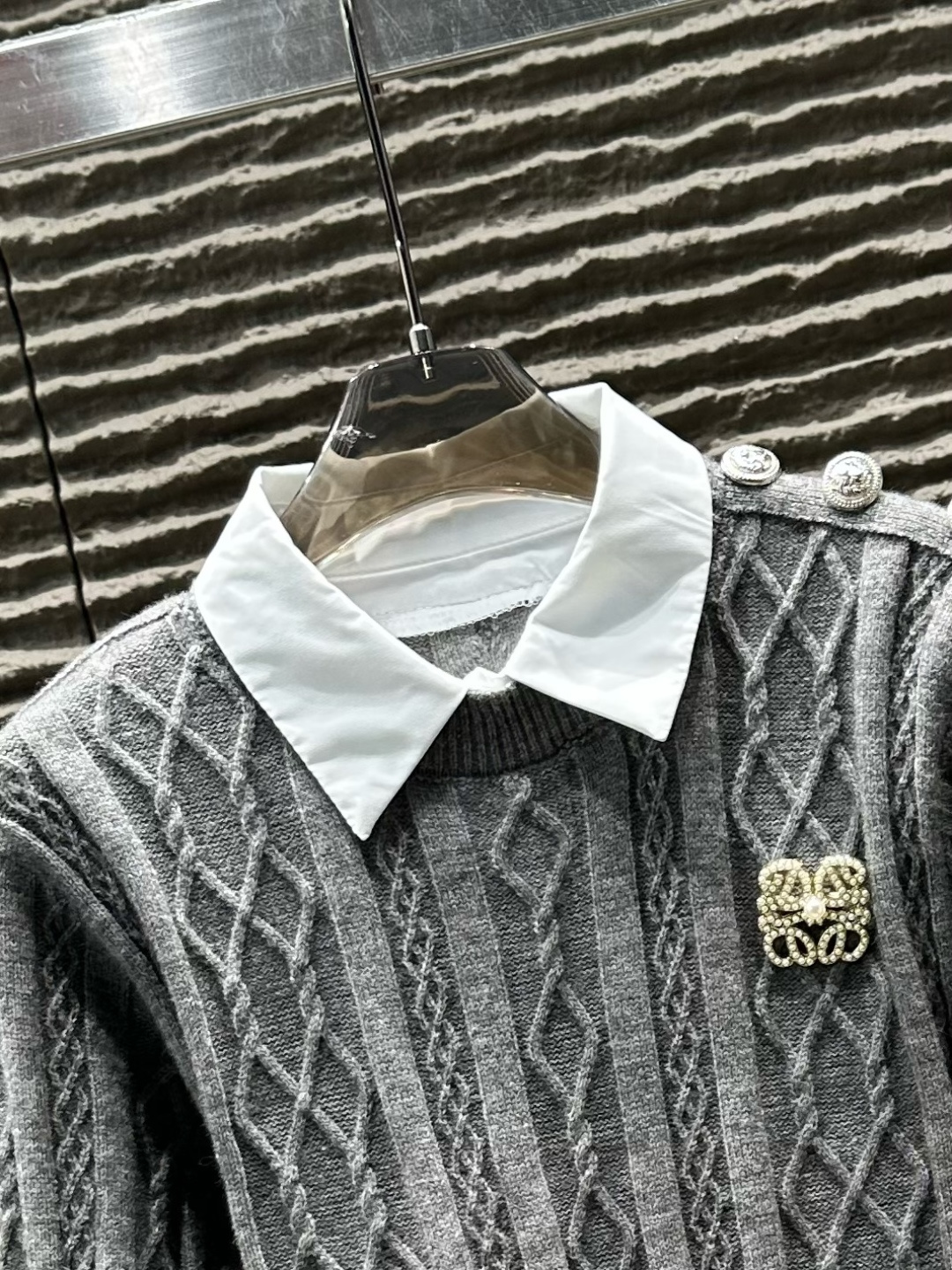 Details: Realistic large - quantity pictures of faux - two - piece pullover sweater, High - end customization, Fine workmanship