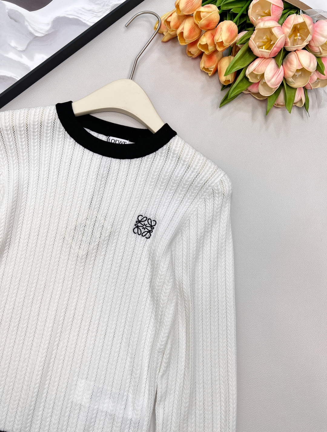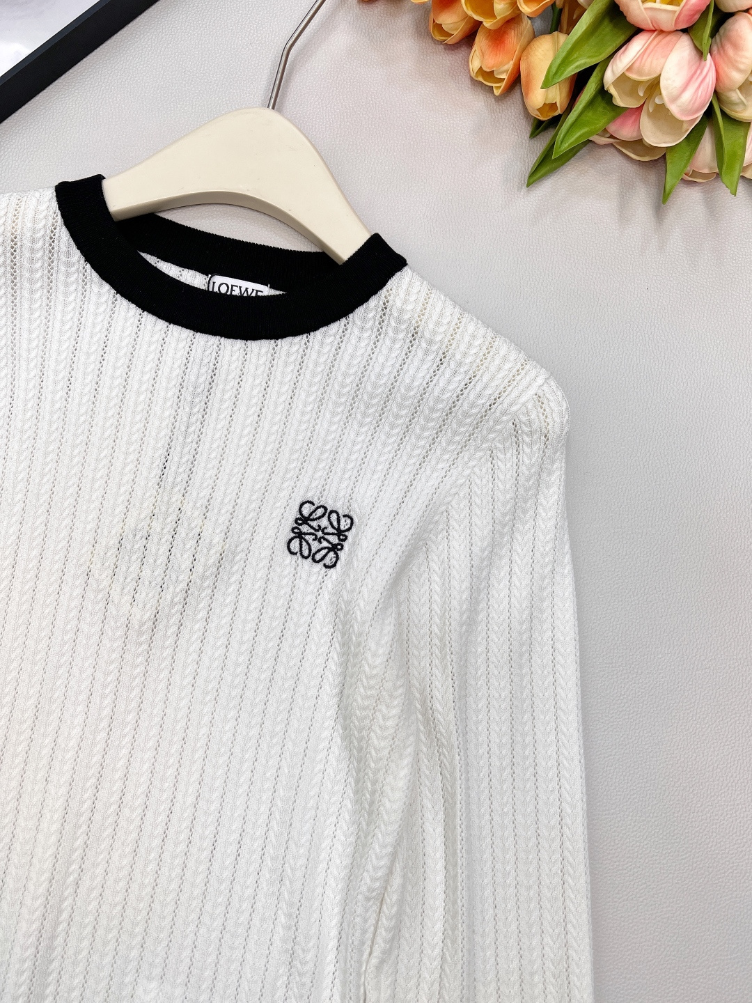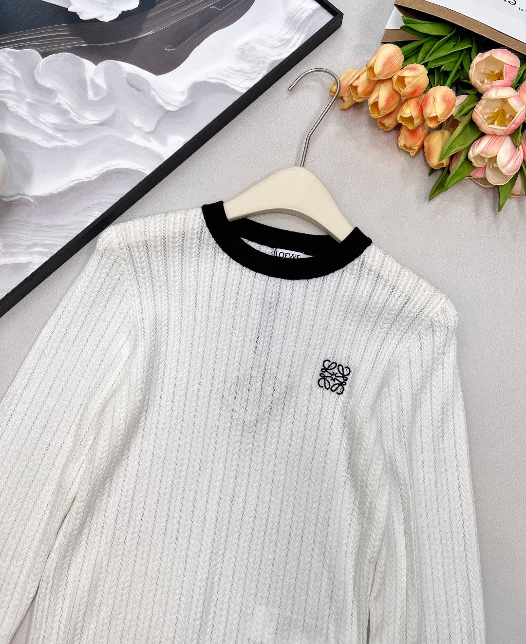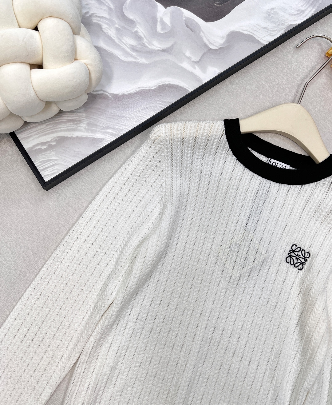 Details: Black and white color-blocked knitted sweater with logo, soft and adaptable for various styles.