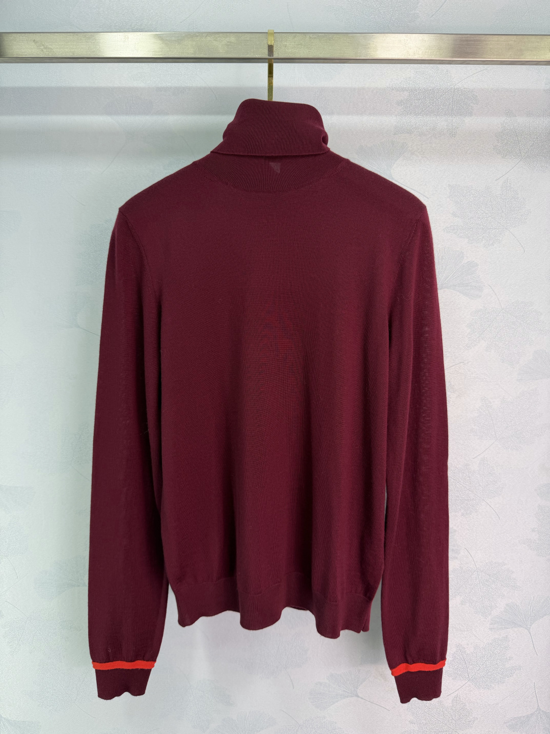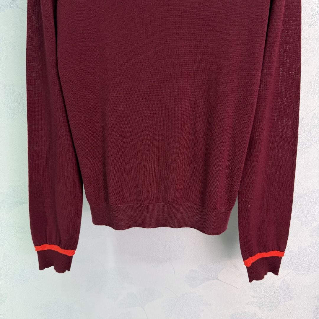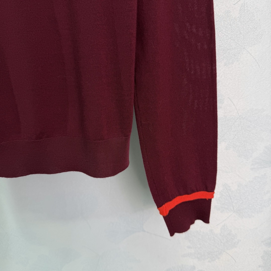 Details: Autumn-winter turtleneck sweater with soft fabric, red cuff stripes, and logo embroidery