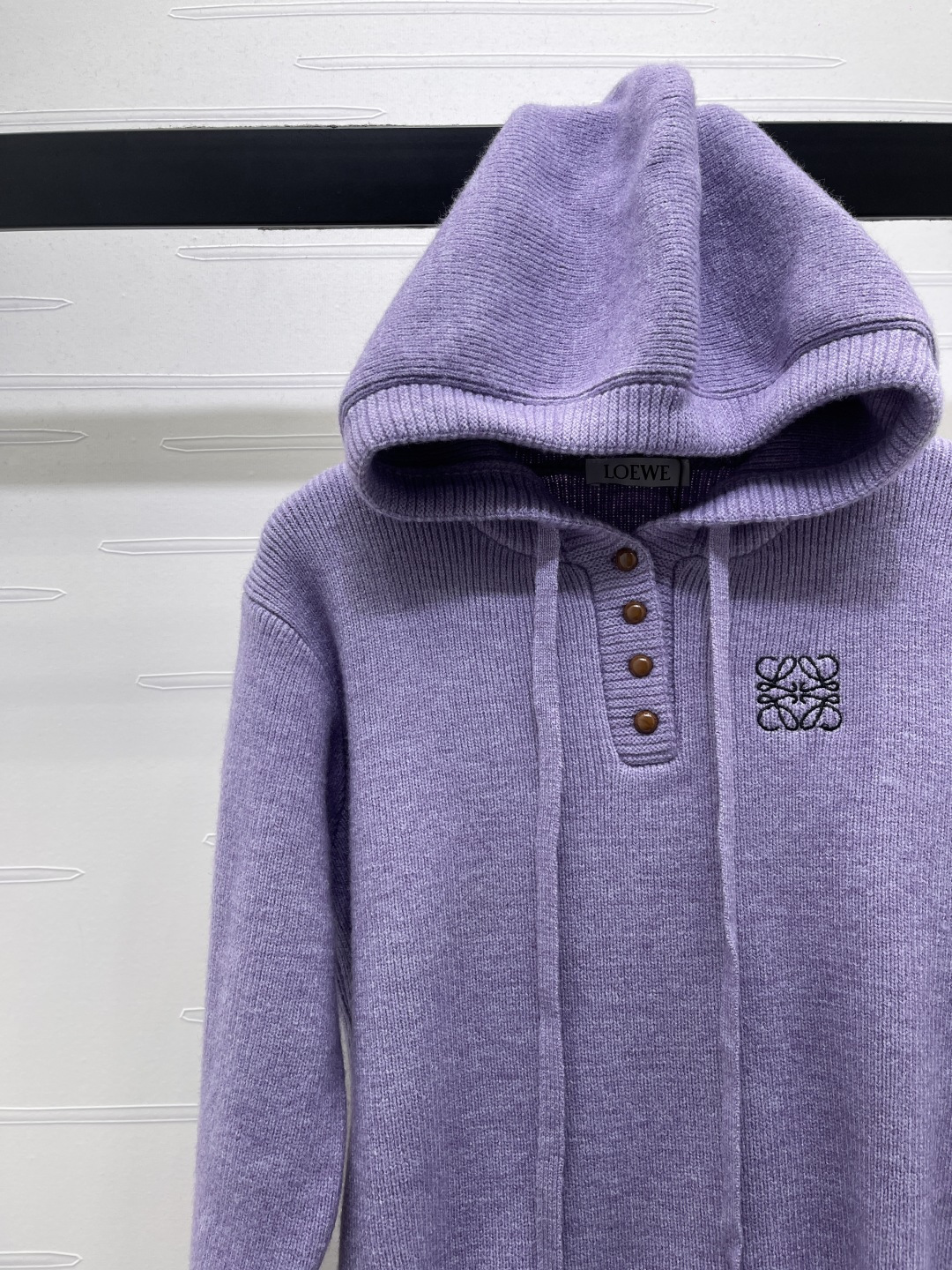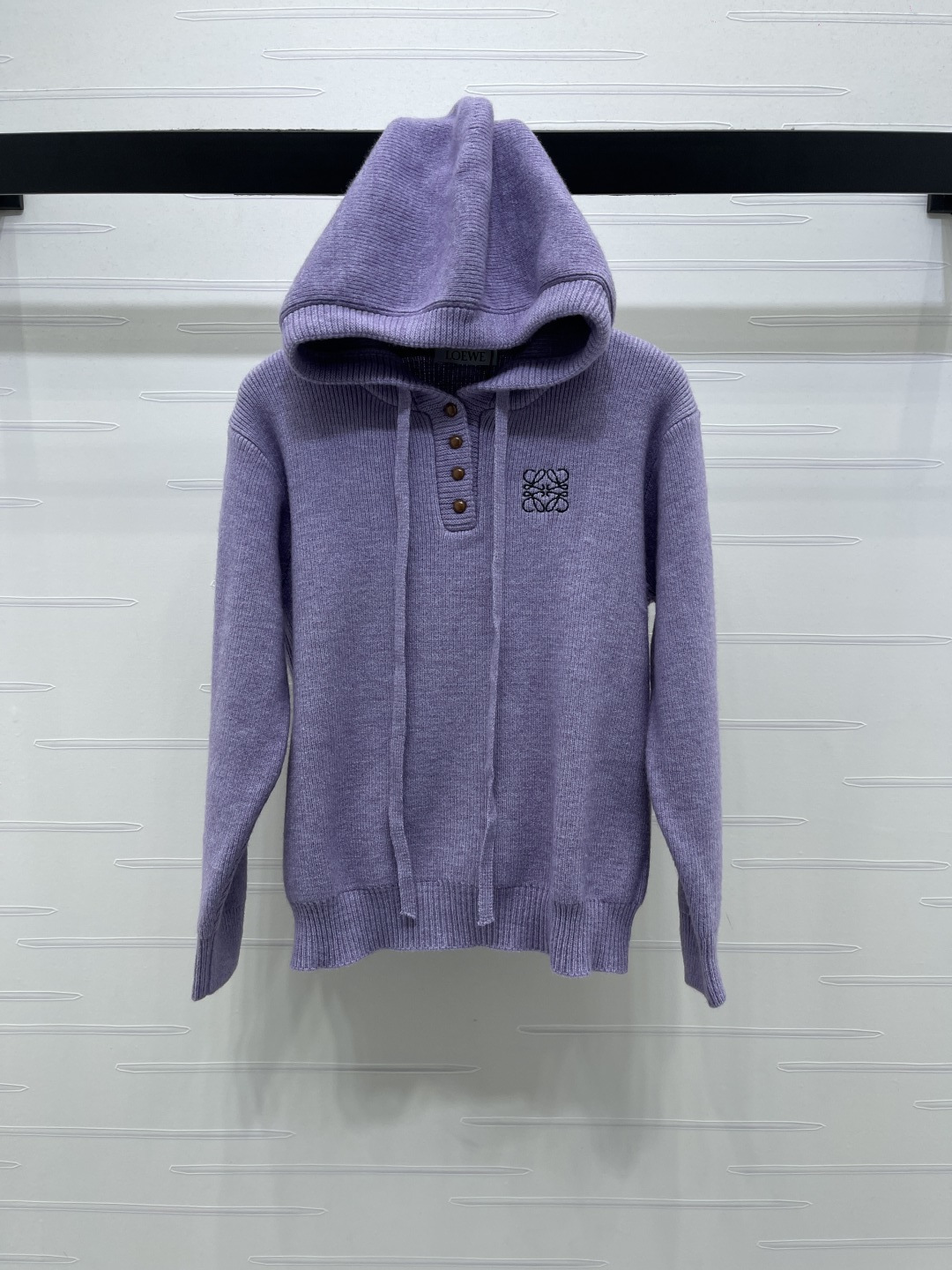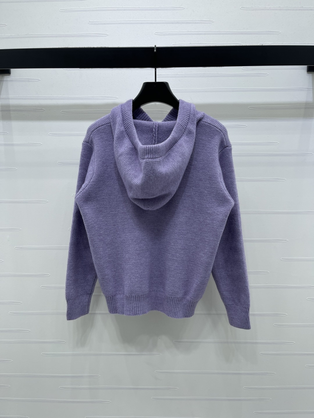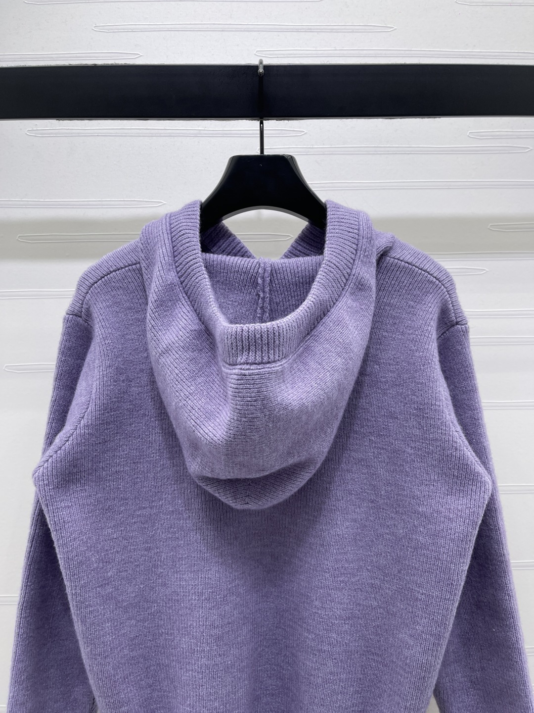 Details: Elegant early spring series, hooded half-button knit pullover with custom wool yarn, simple yet sophisticated look.
