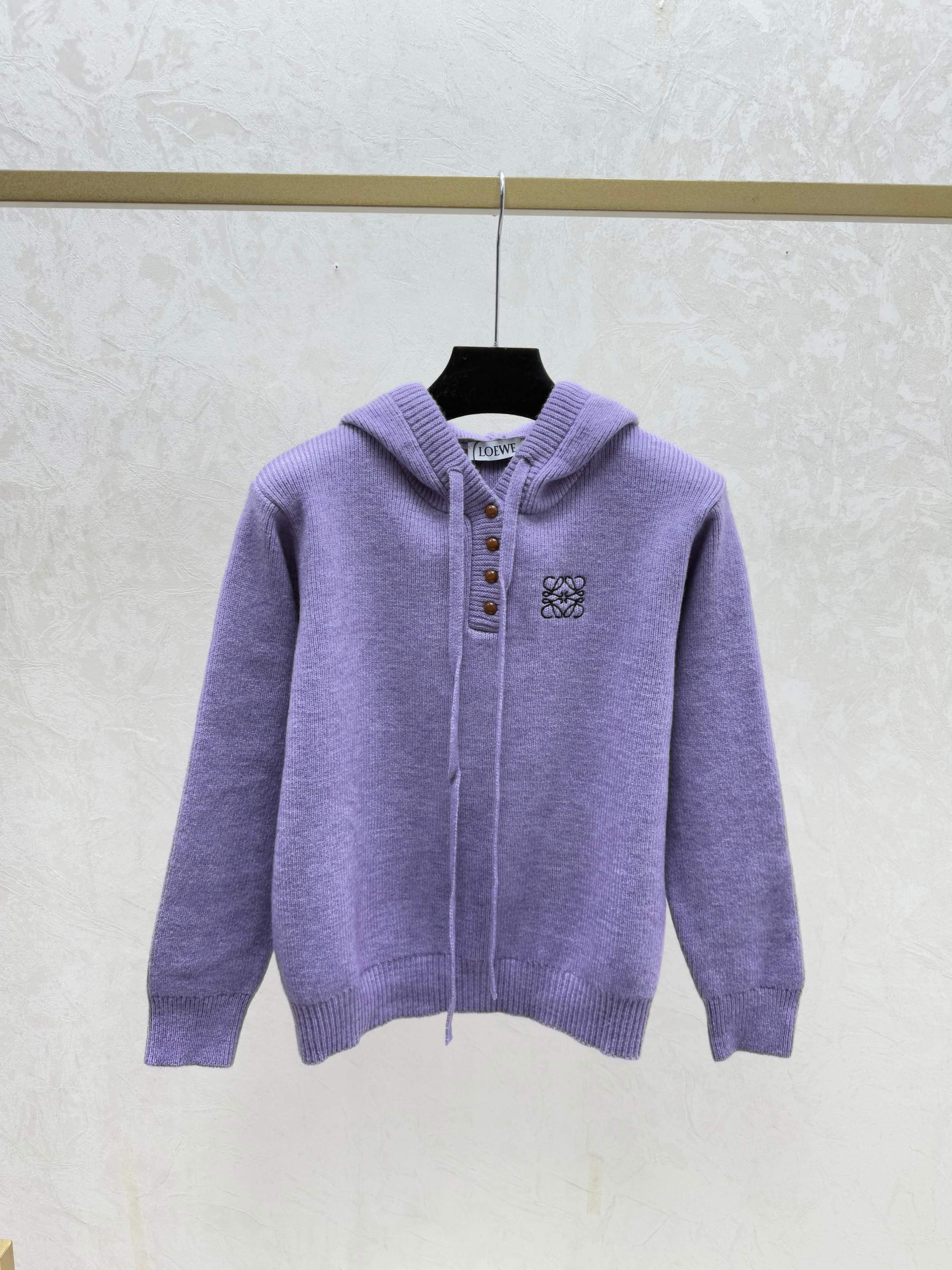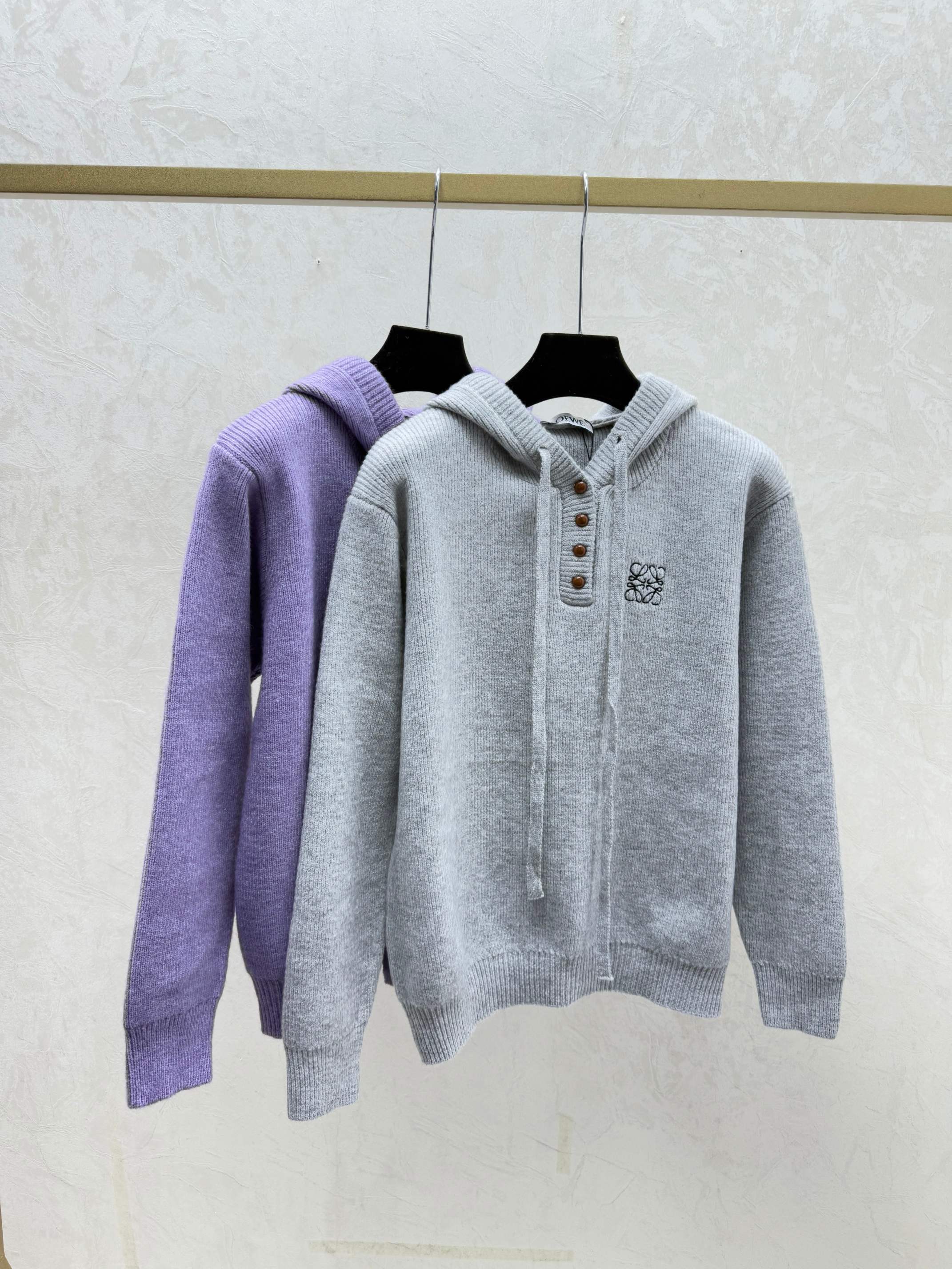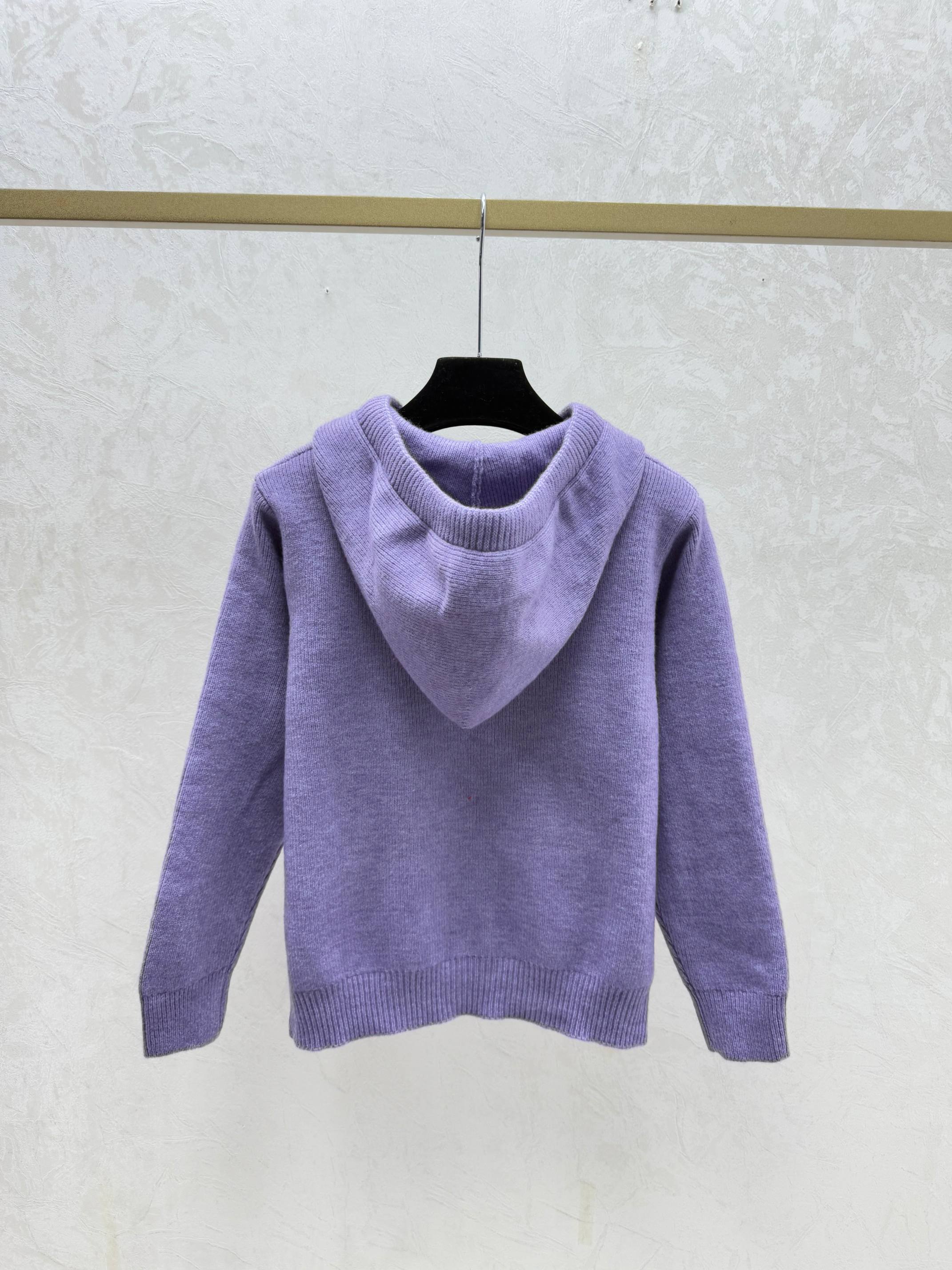 Details: Early autumn new style, solid color hooded knitted long-sleeved top in gray and purple, sizes 36, 38, 40.