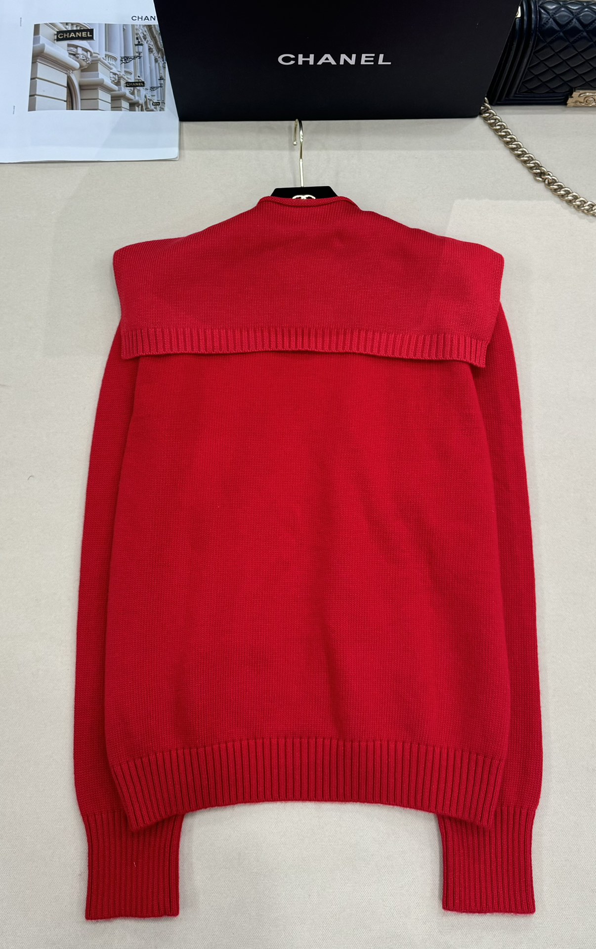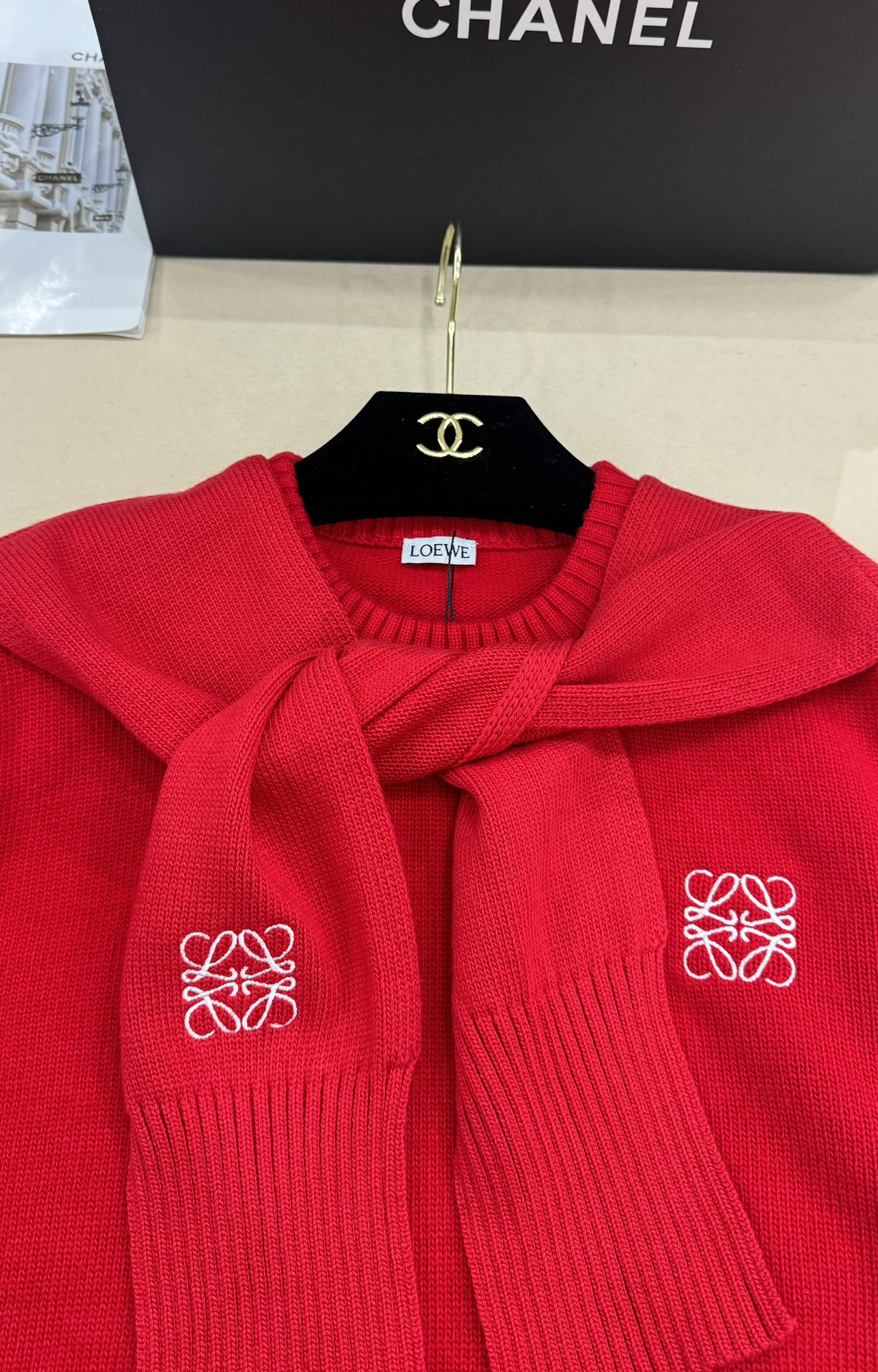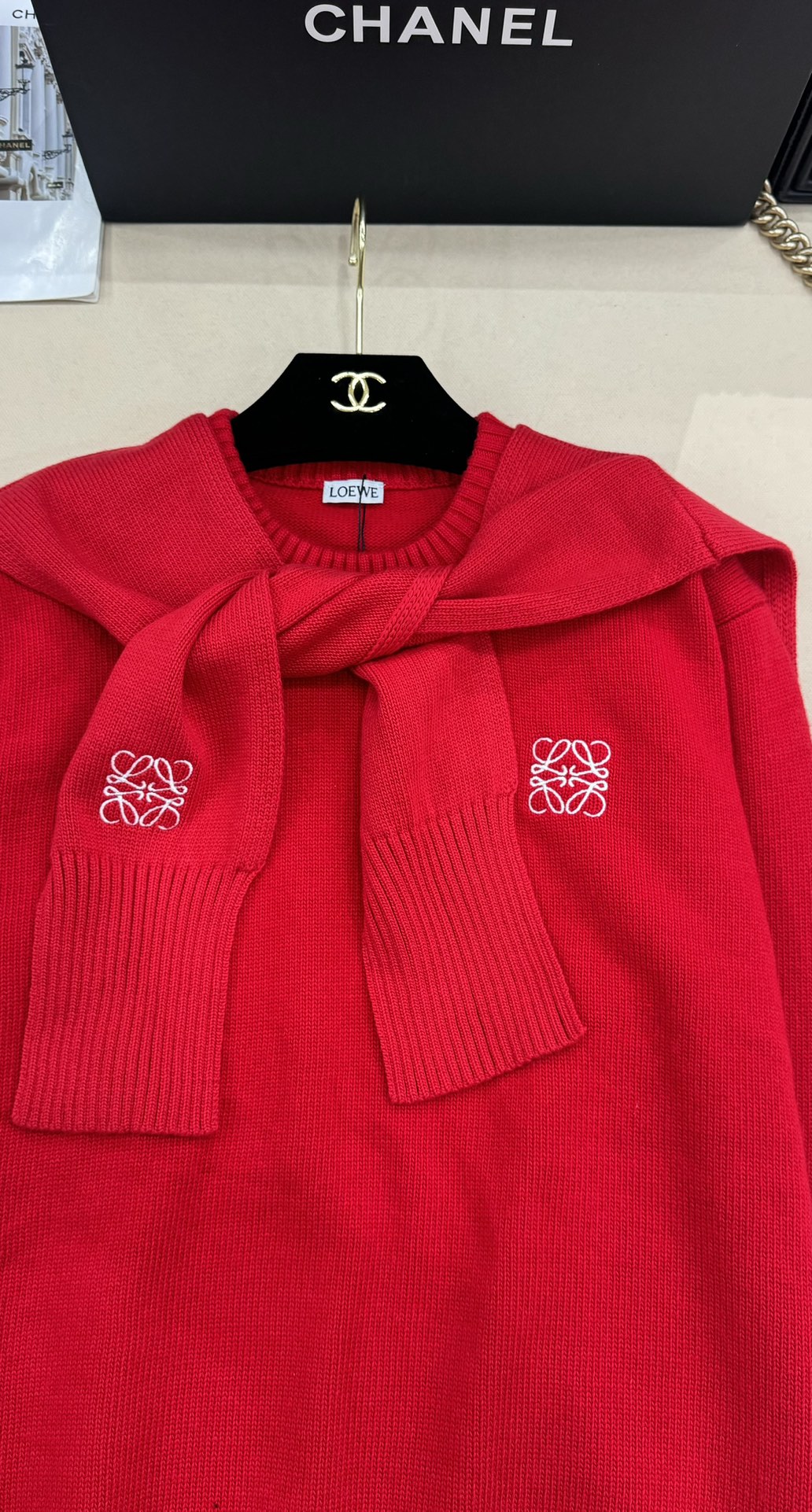 Details: New knitted round-neck long-sleeved top with matching shawl, embroidered logo, in New Year red, sizes S, M, L.