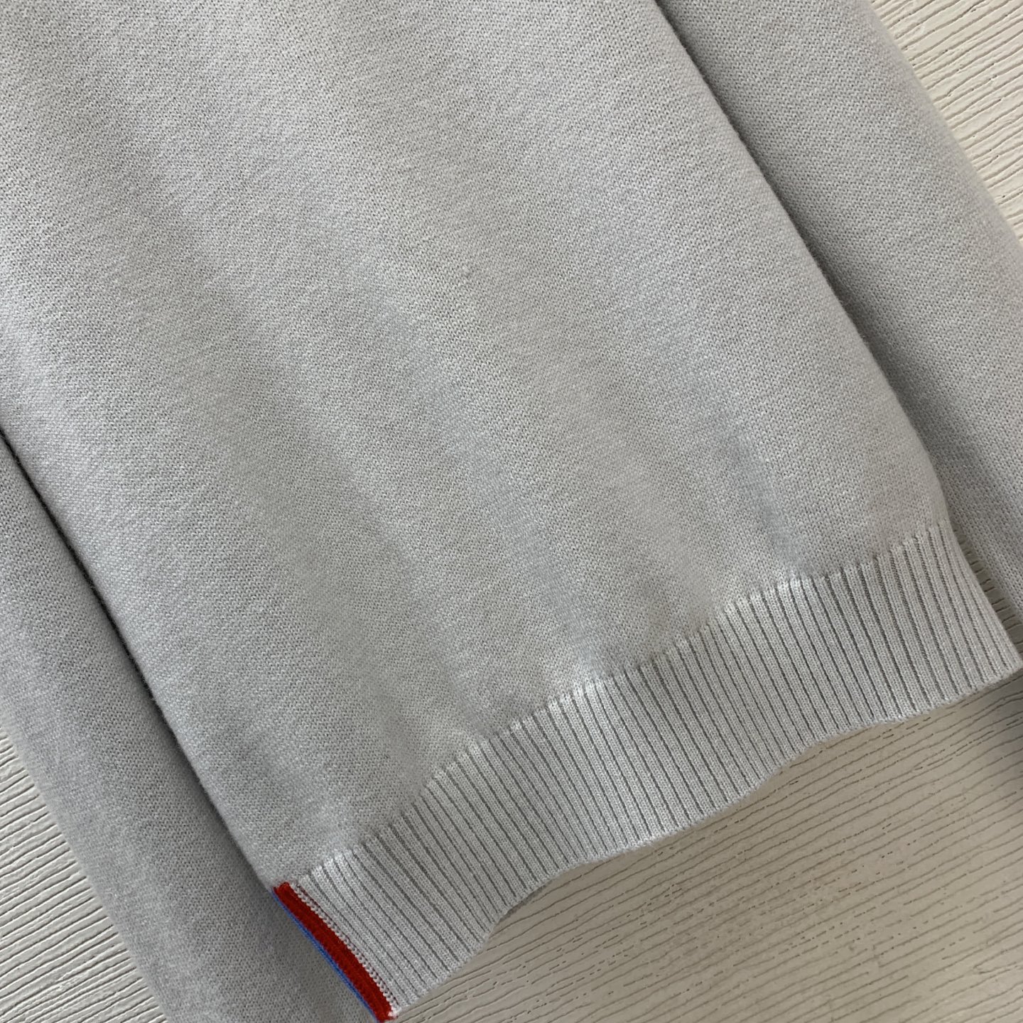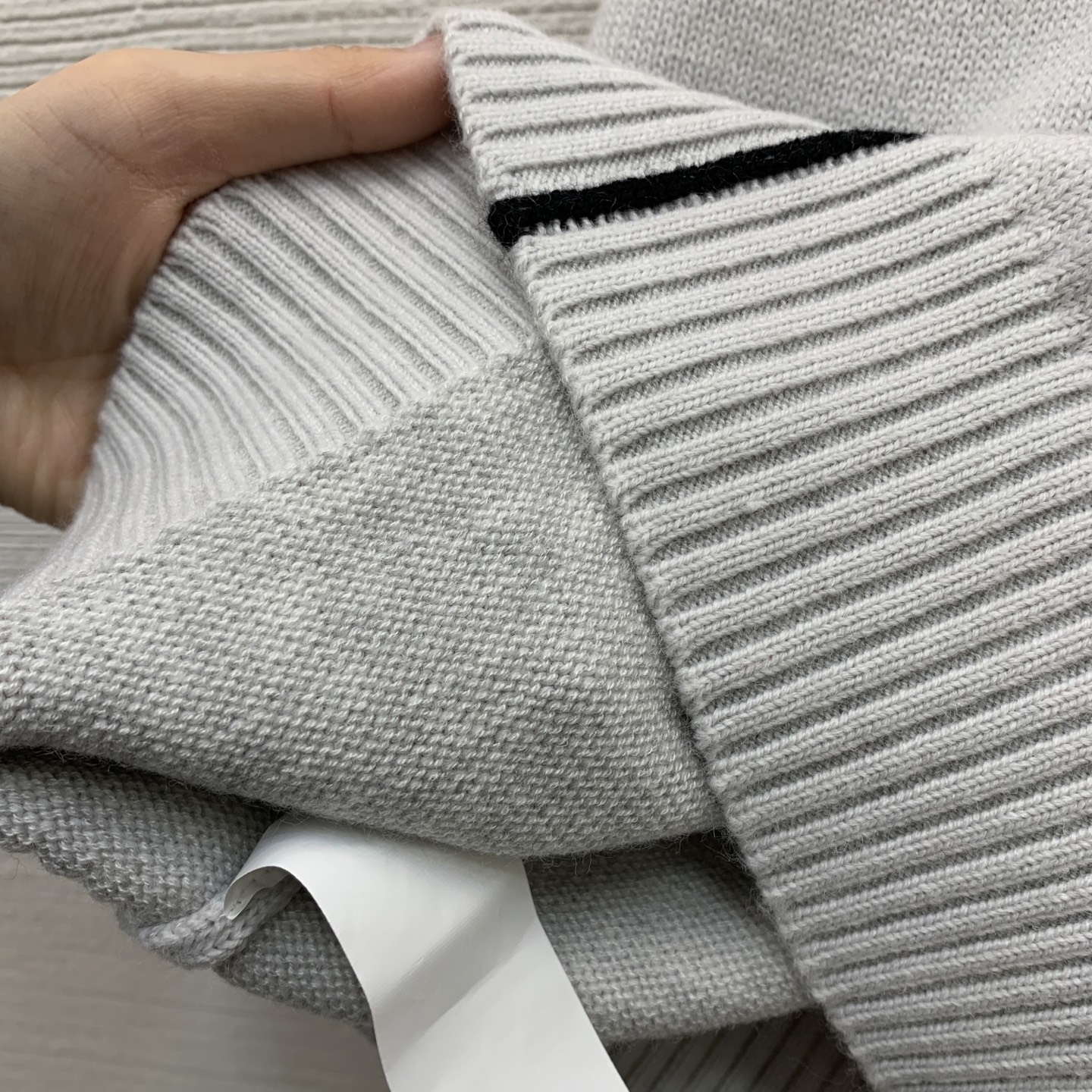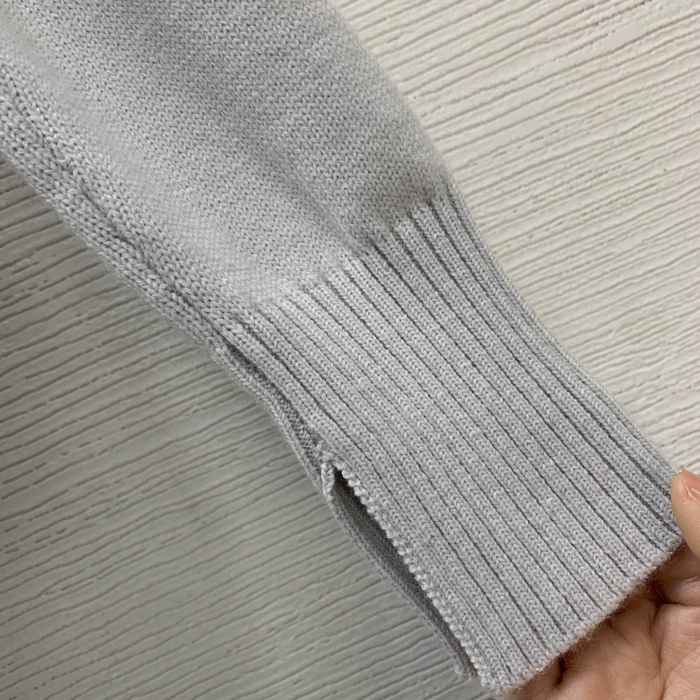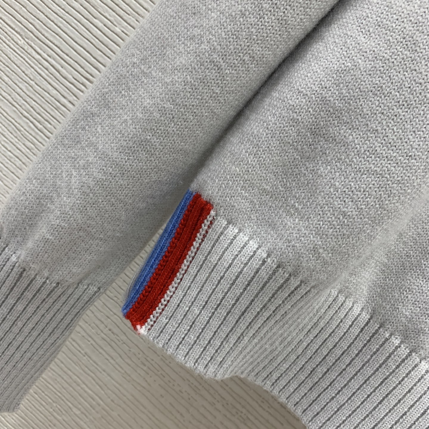 Details: New chunky wool crewneck pullover in light grey and crimson, with embroidered logo, high - end custom