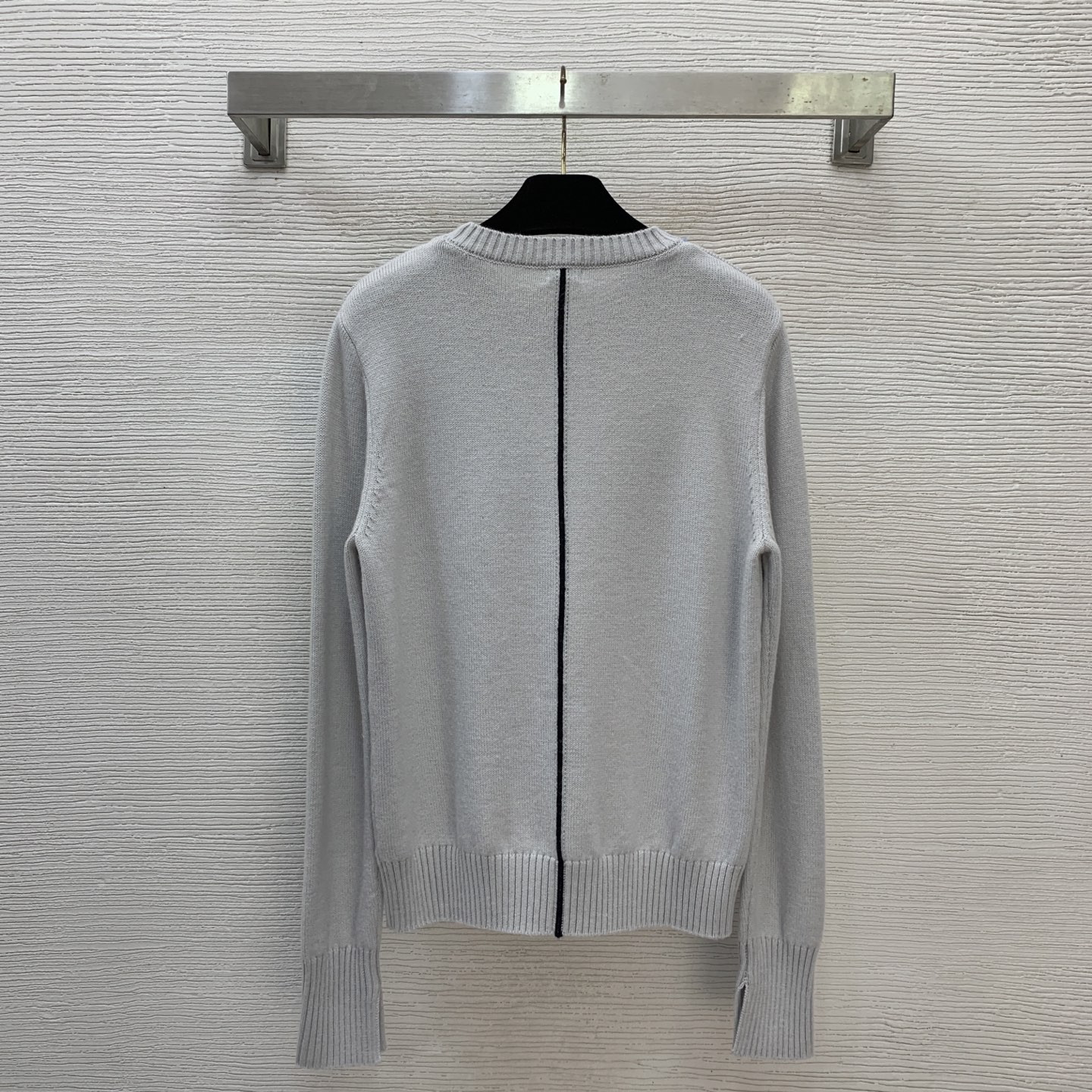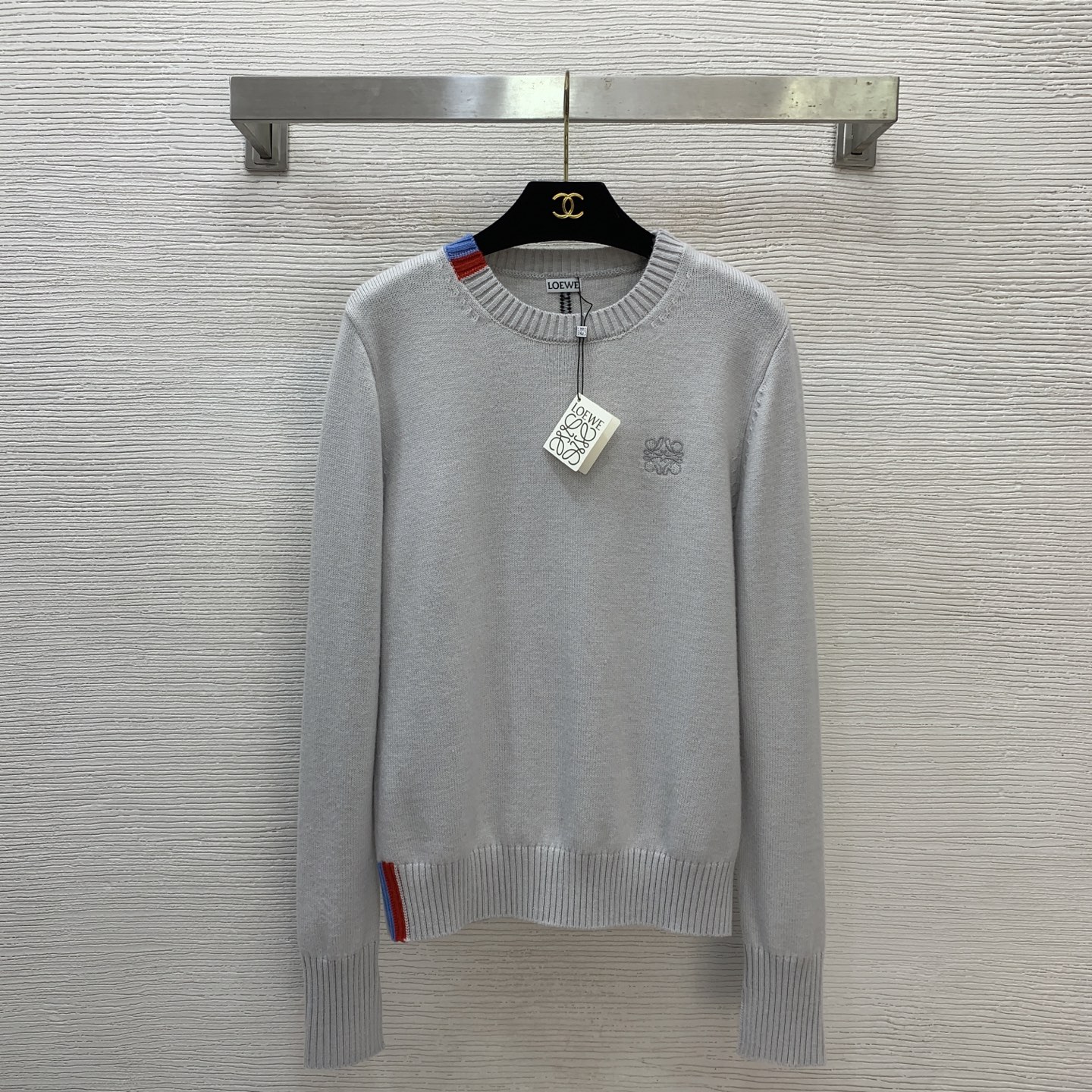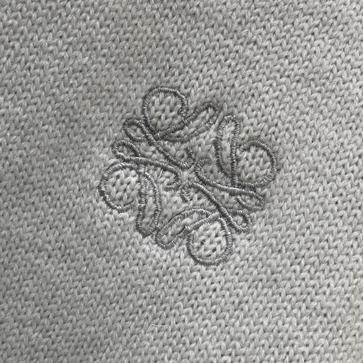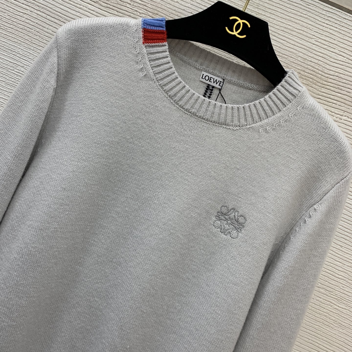 Details: New chunky wool crewneck pullover in light grey and crimson, with embroidered logo, high - end custom