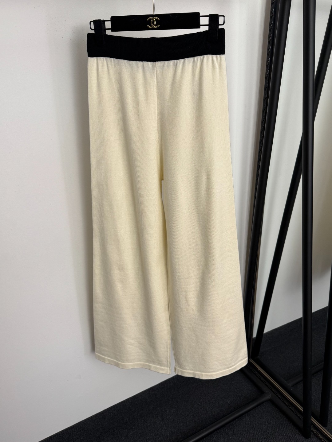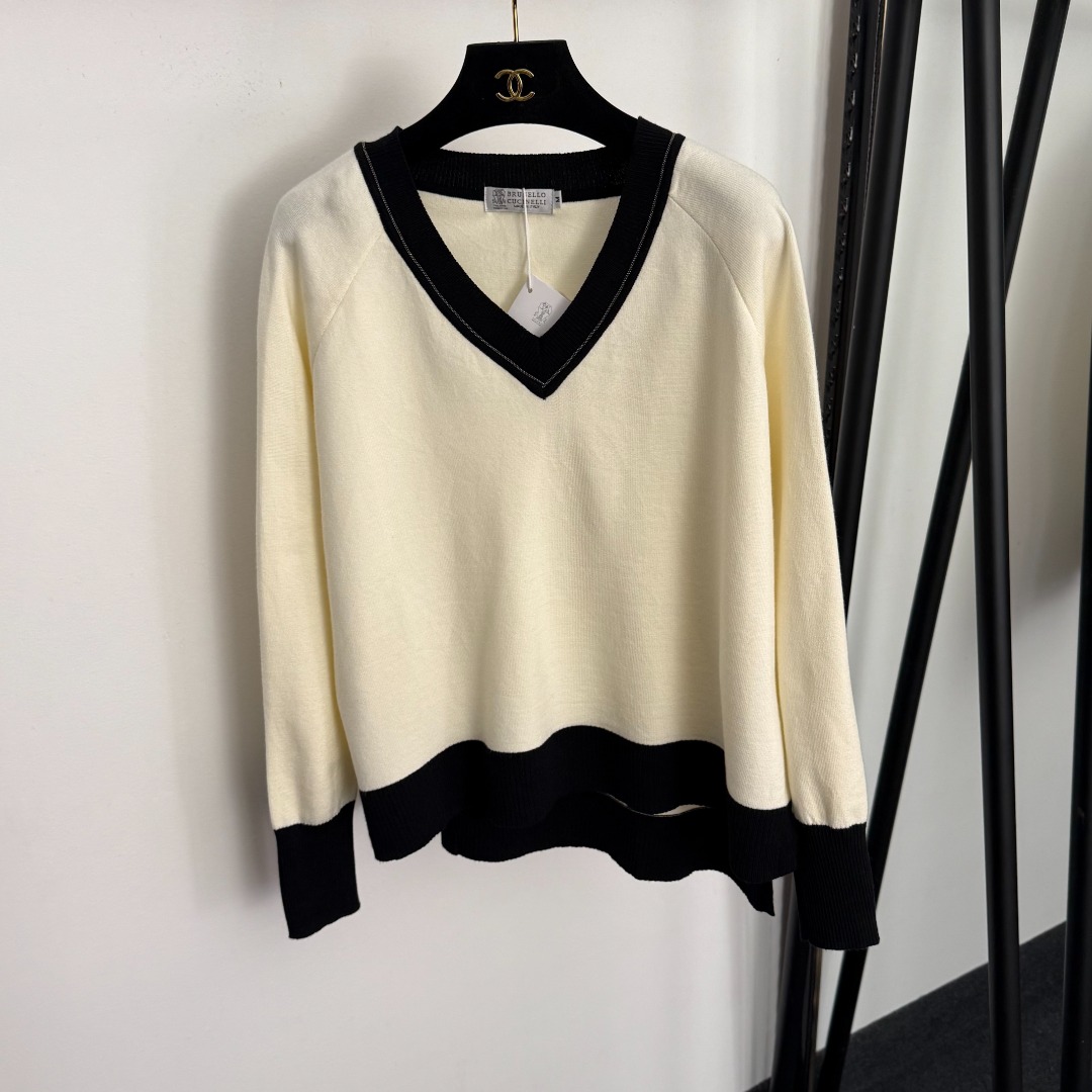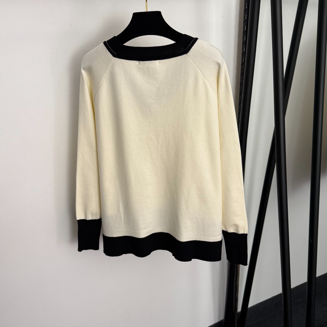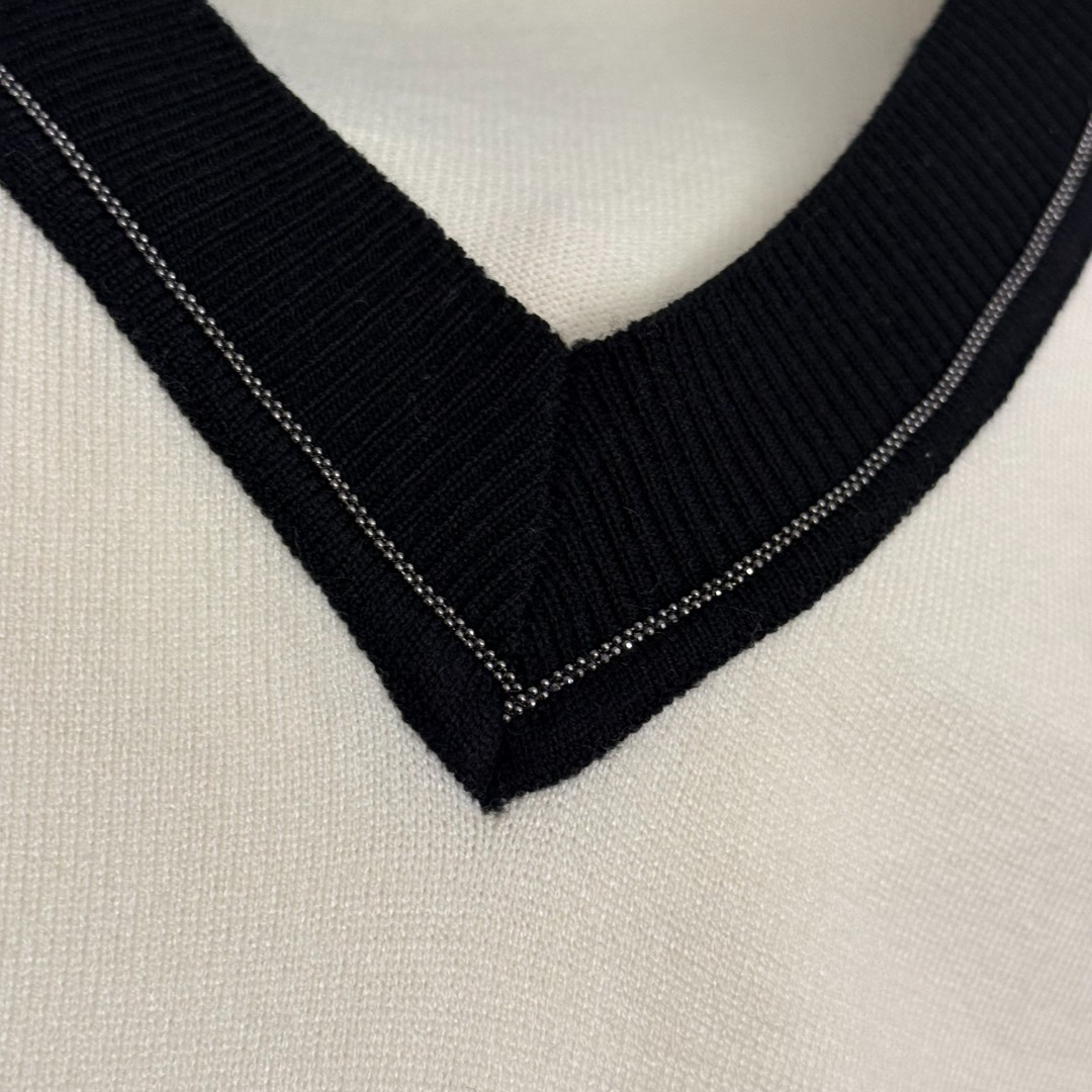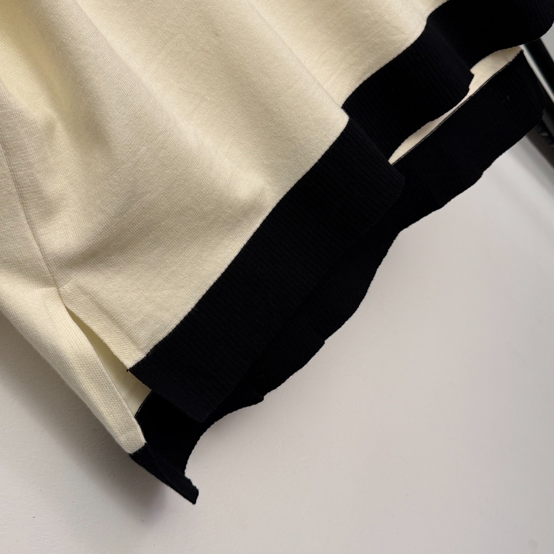 Details: New knitted set with beaded color-blocked V-neck, available in beige or khaki, sizes S, M, XL.