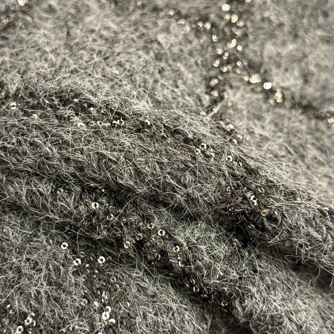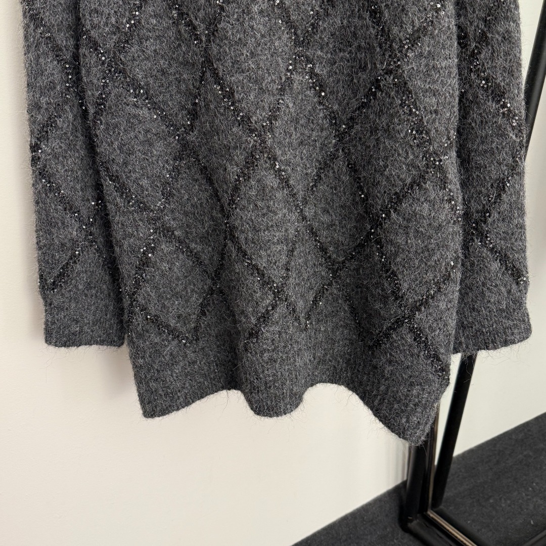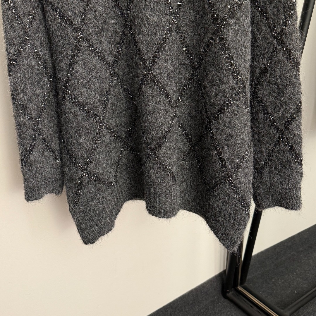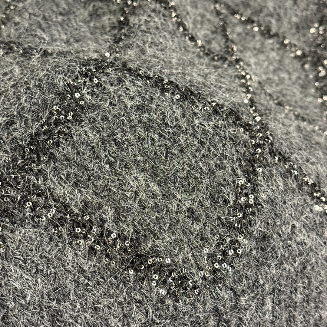 Details: New sequined long-sleeve knitted turtleneck sweater in gray and black, one size. High-end customization with delicate work