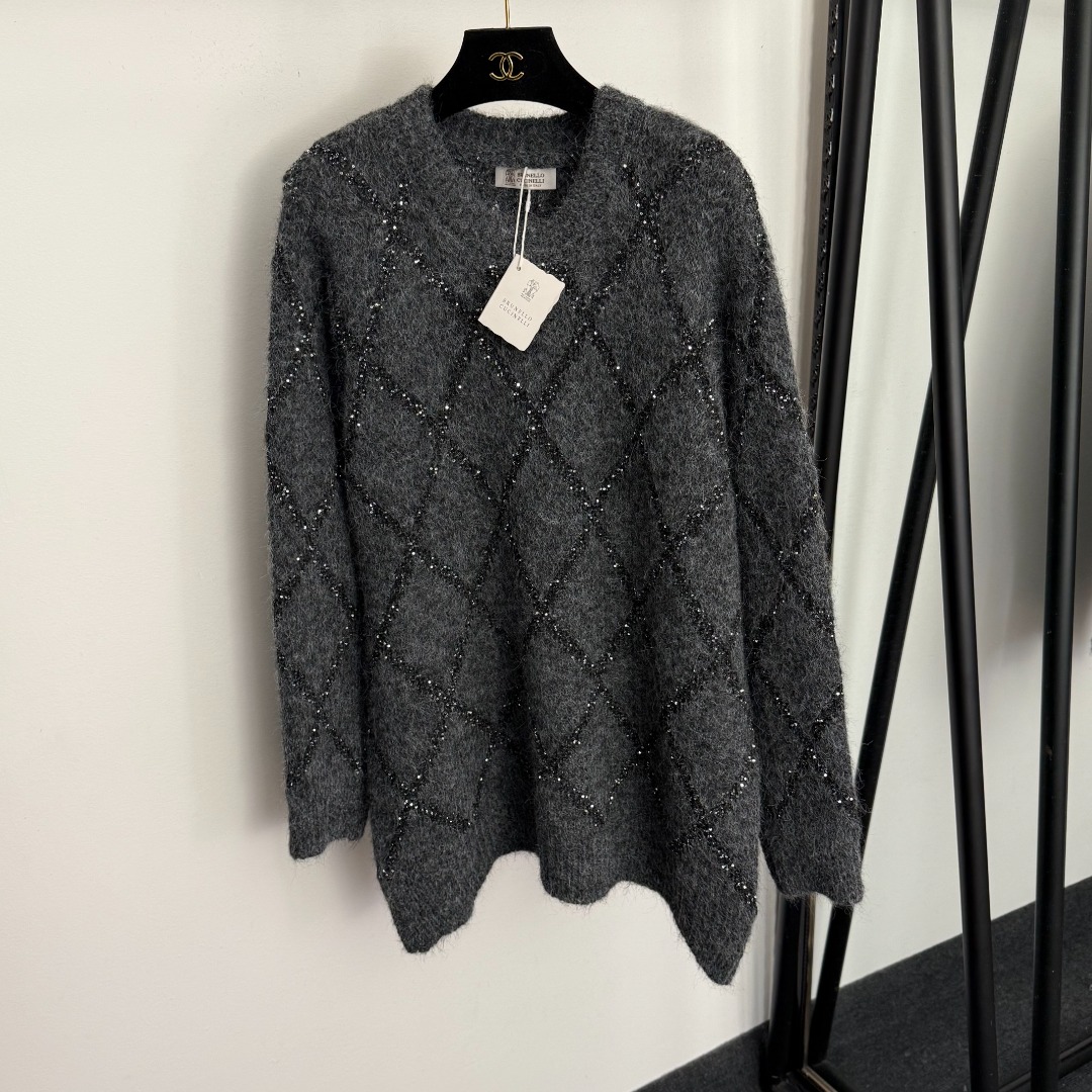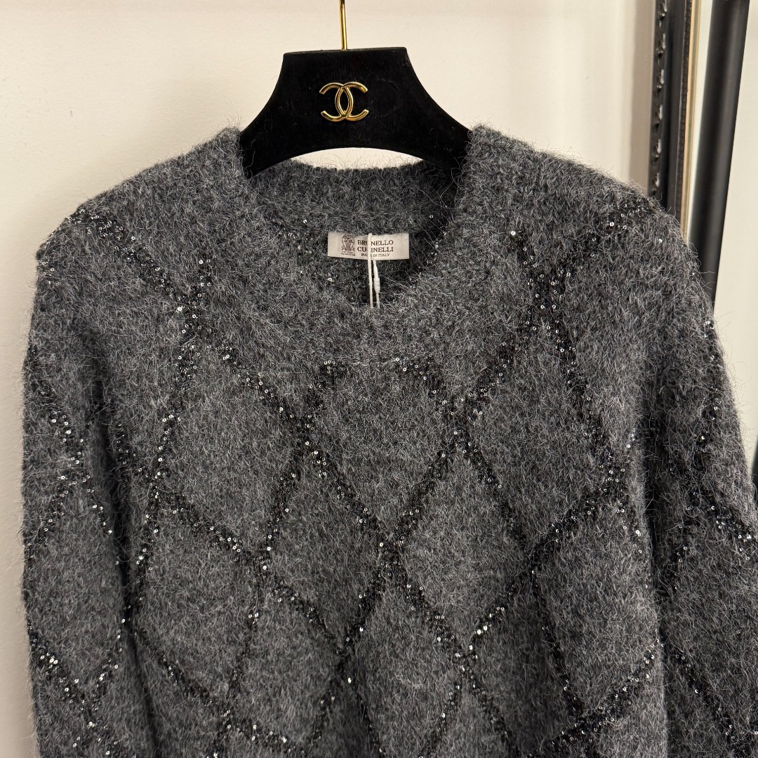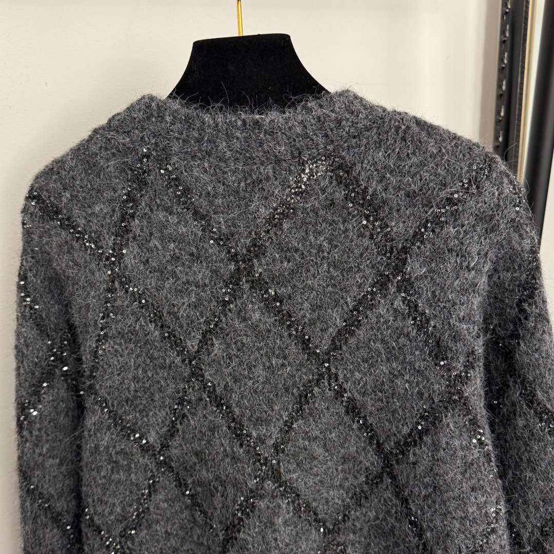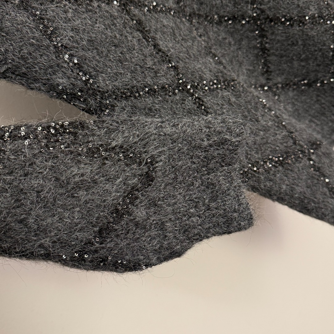 Details: New sequined long-sleeve knitted turtleneck sweater in gray and black, one size. High-end customization with delicate work