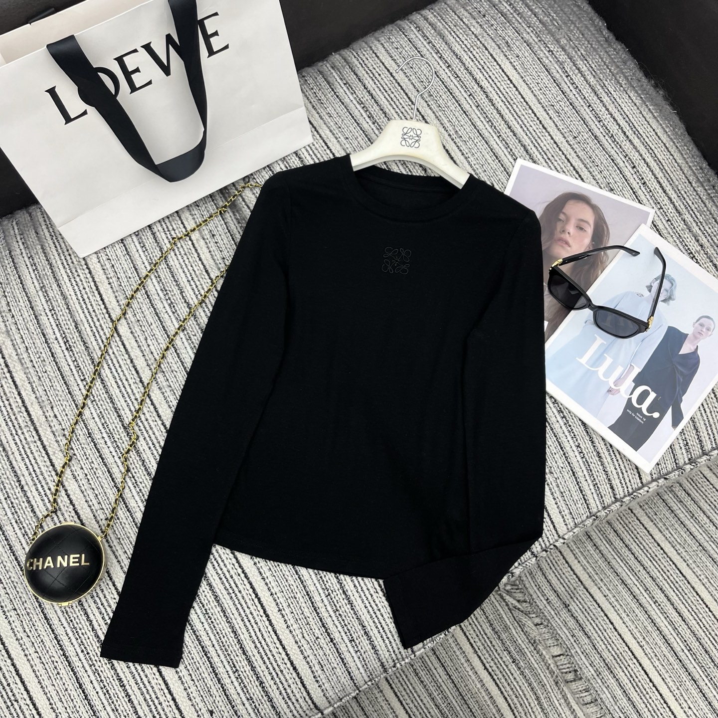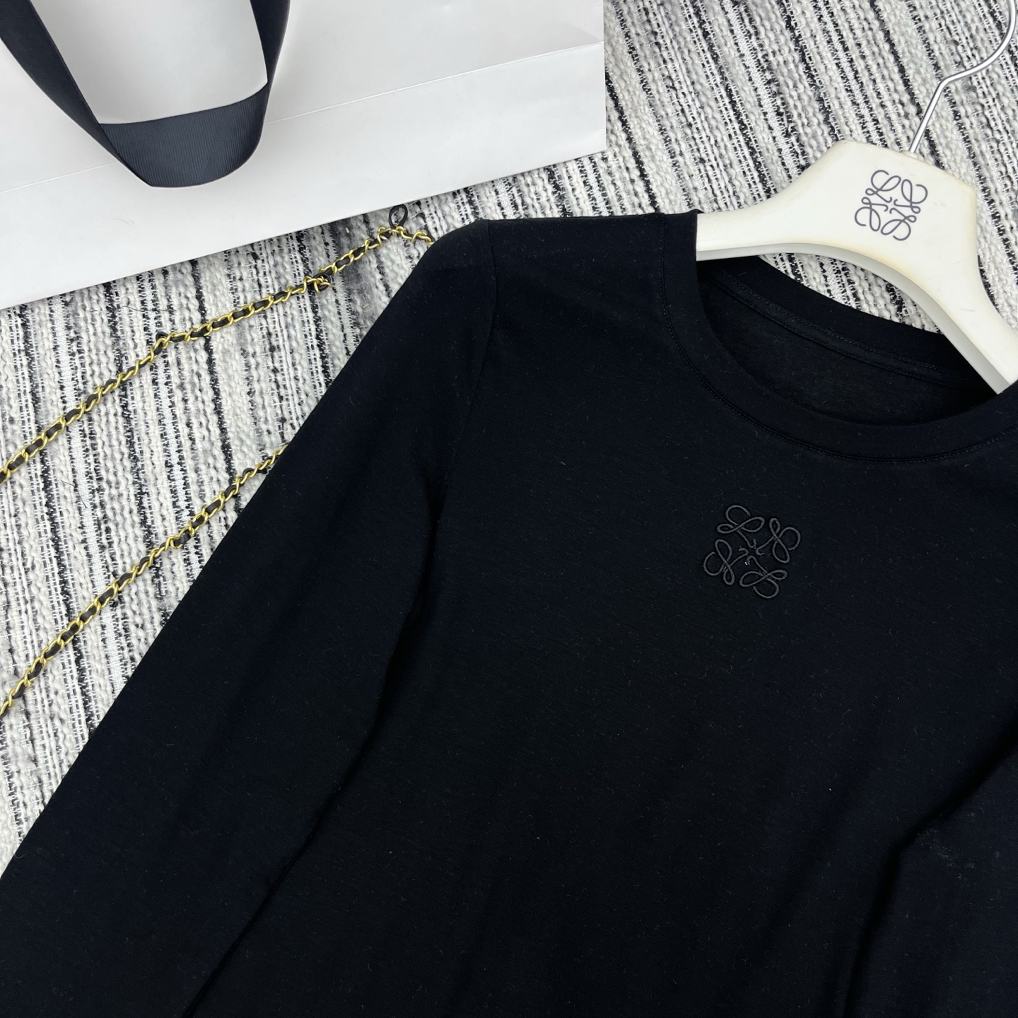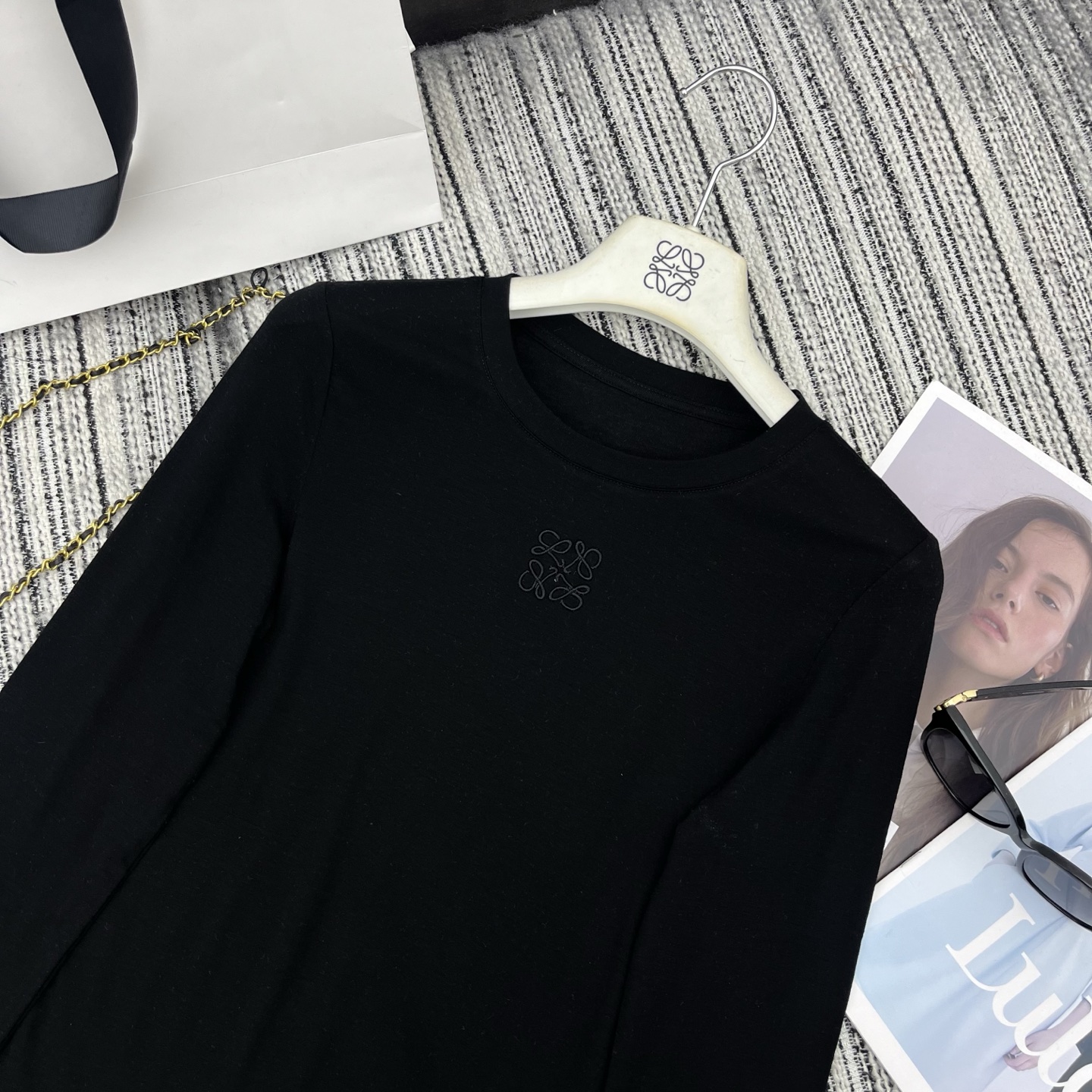 Details: Embroidered letter logo round - neck long - sleeve T - shirt available in three colors. High - end customization and fine workmanship, replicating the original quality.