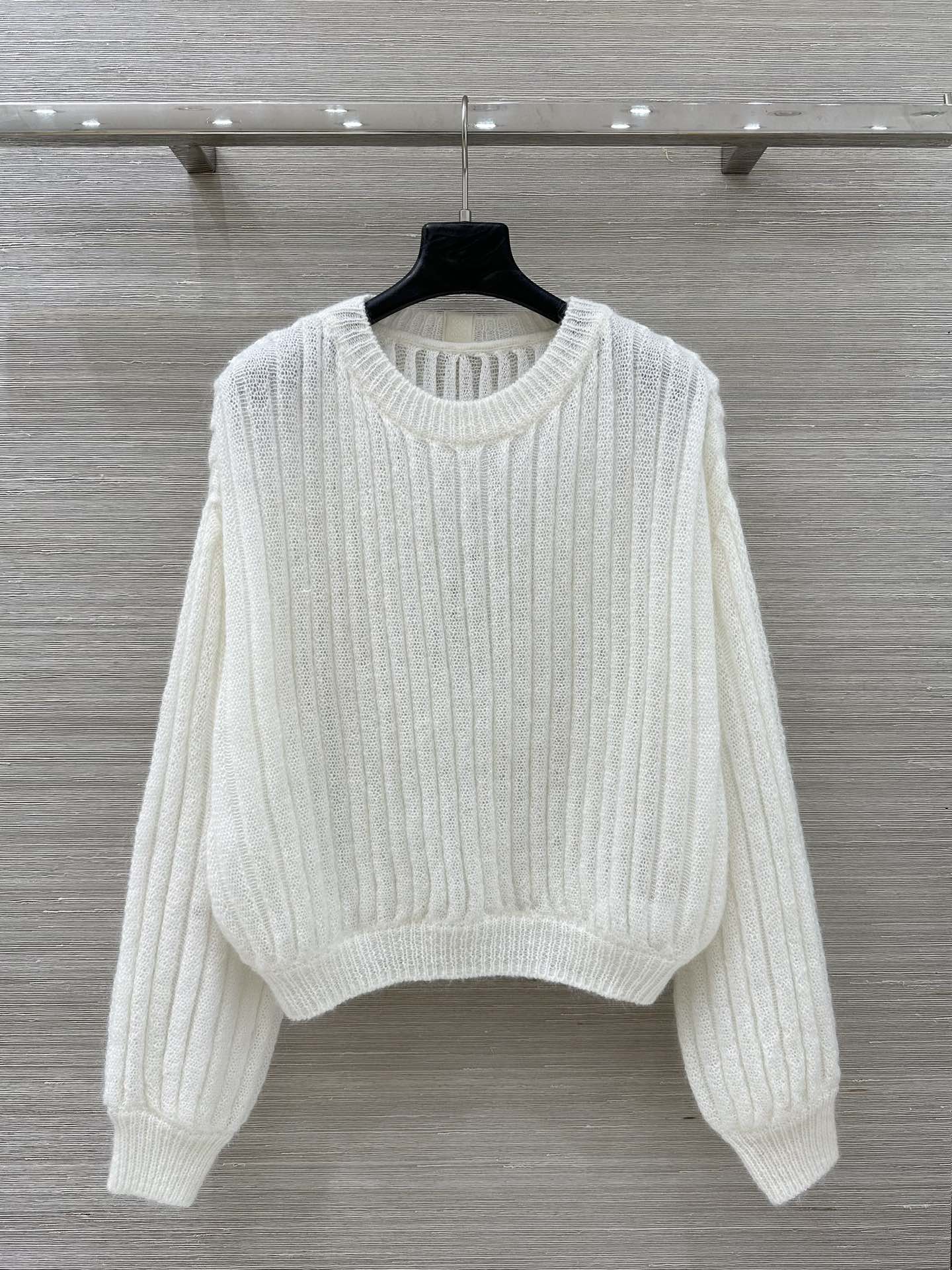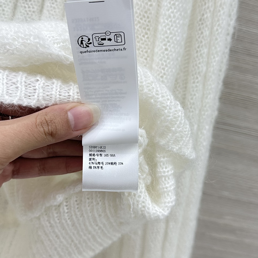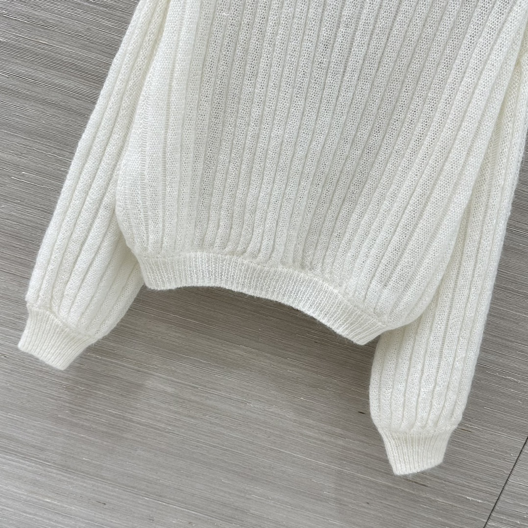 Details: Early spring milk-white mohair top with bat sleeves, imported high-proportion mohair, custom crochet.