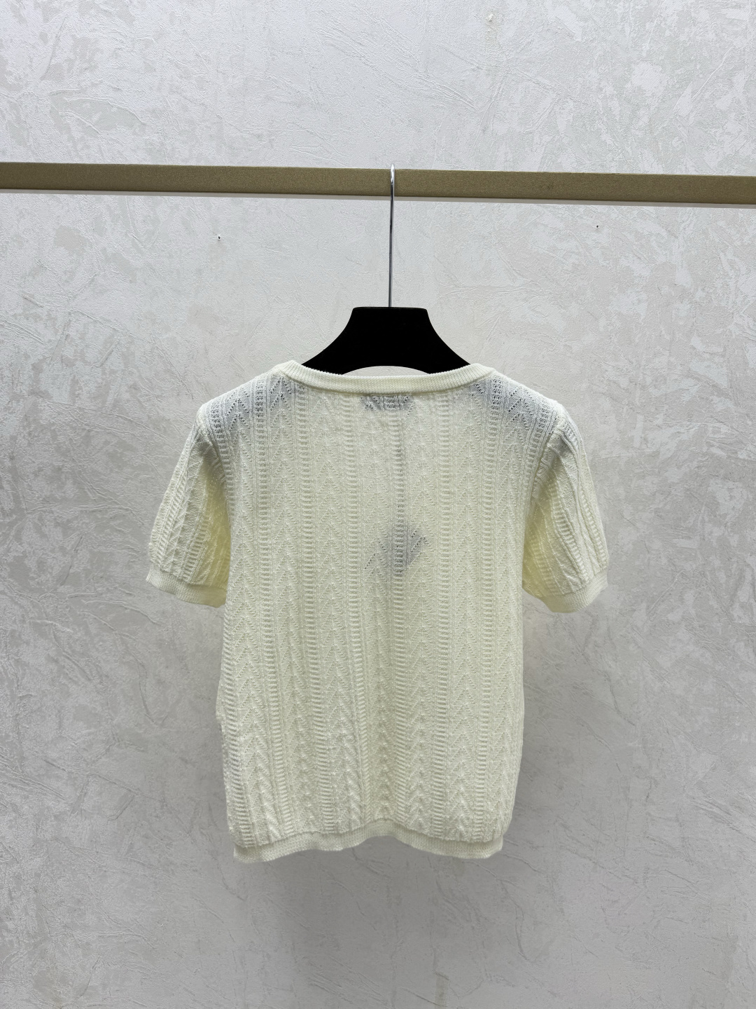Details: Early spring new knitted short-sleeved tops in white, gray and blue, available in sizes 36, 38, 40.