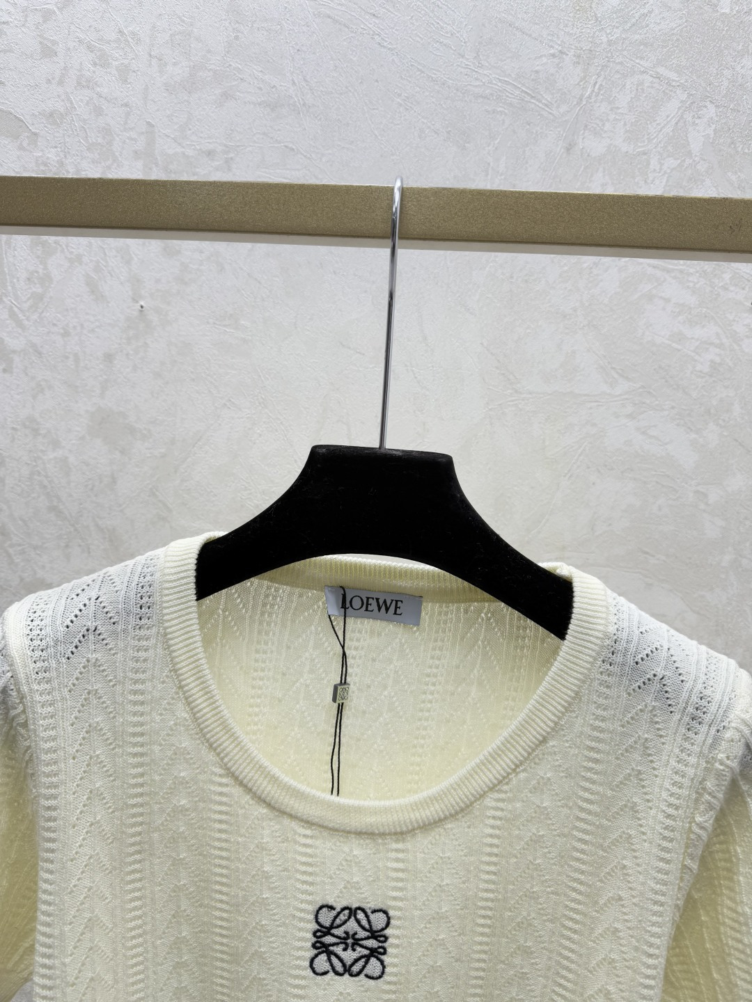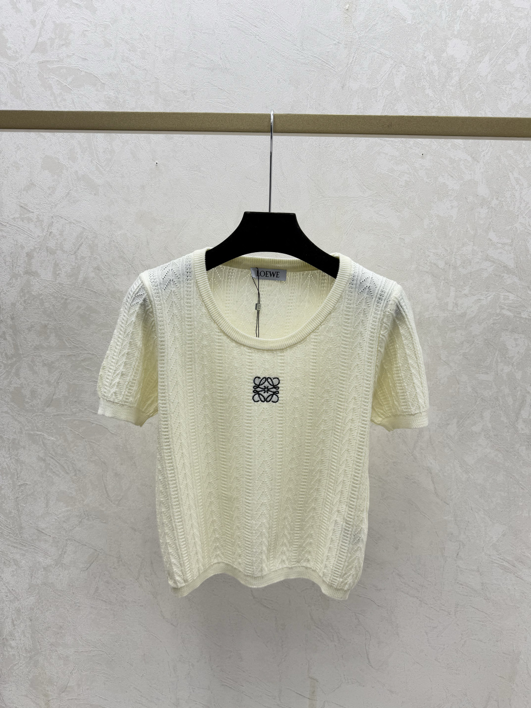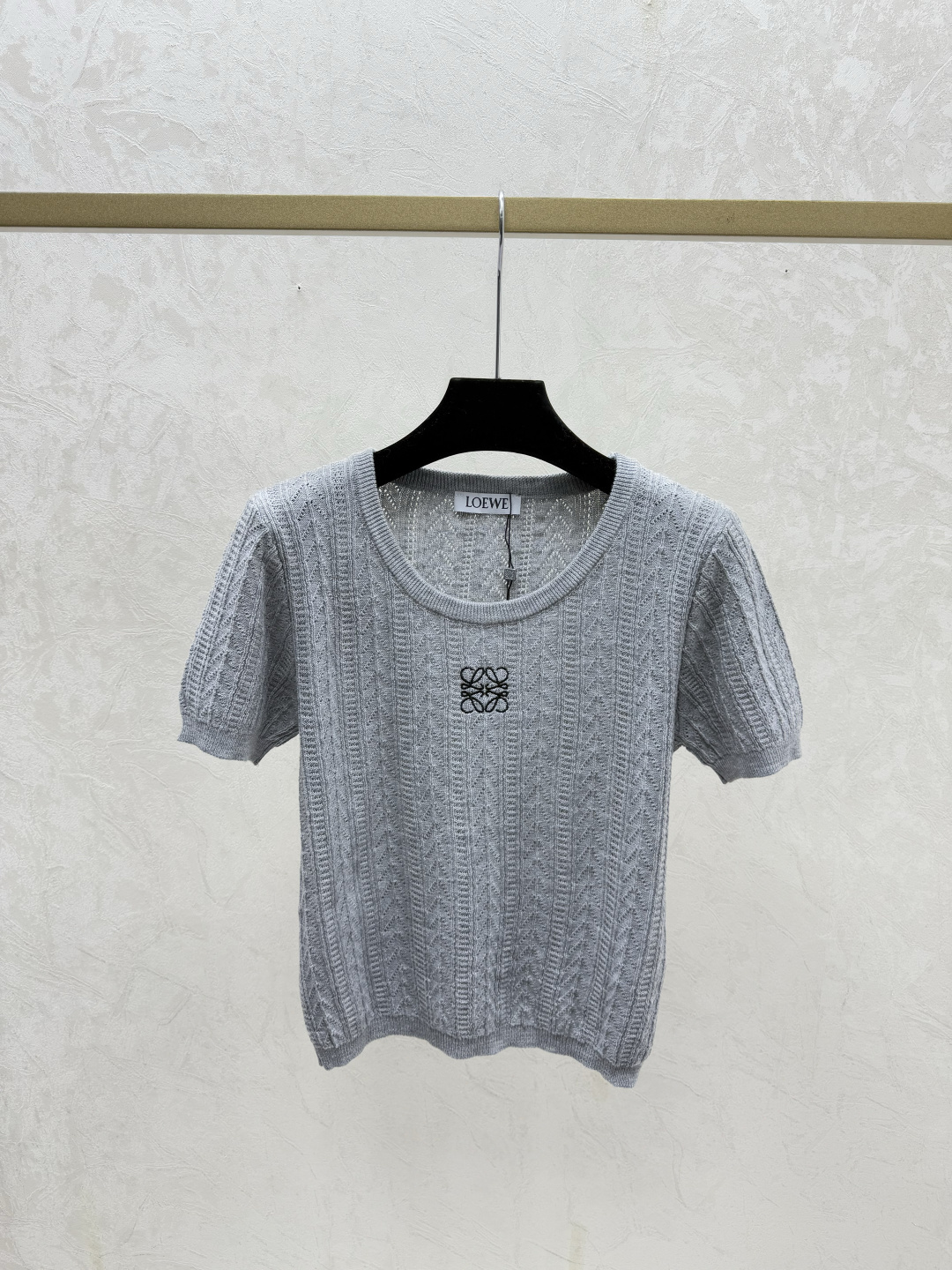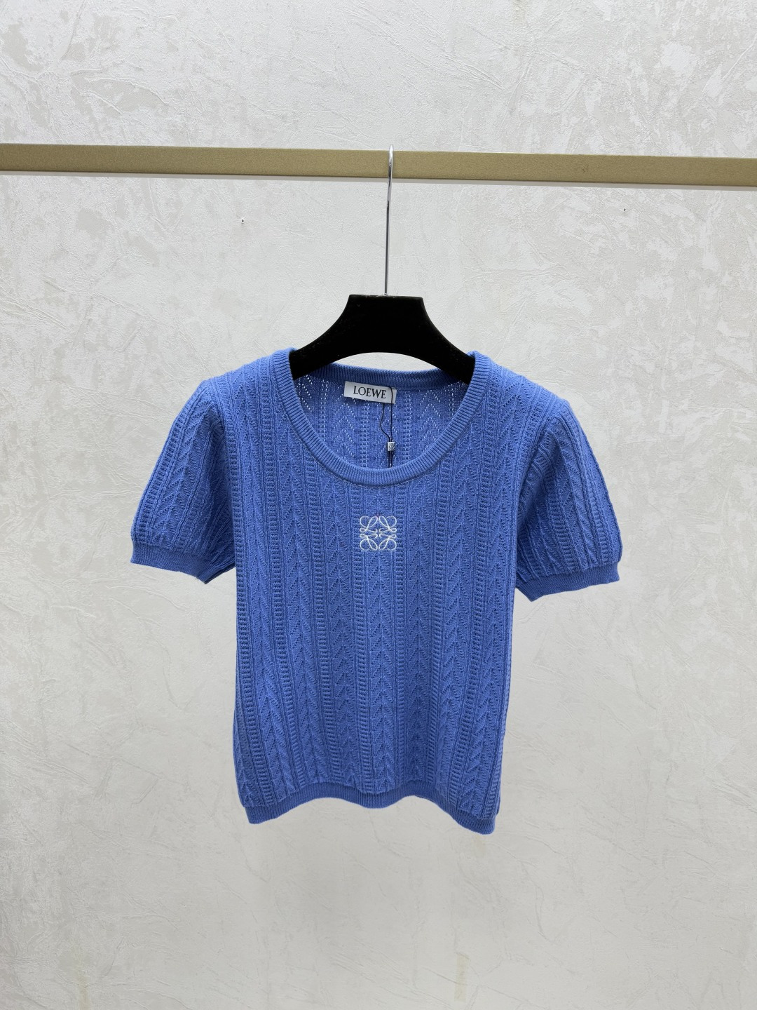 here:home > WOMENS > Loewe > Pullover Loewe (W) > Loewe White, Gray, Blue Solid Color Round Neck Knitted Short Sleeve