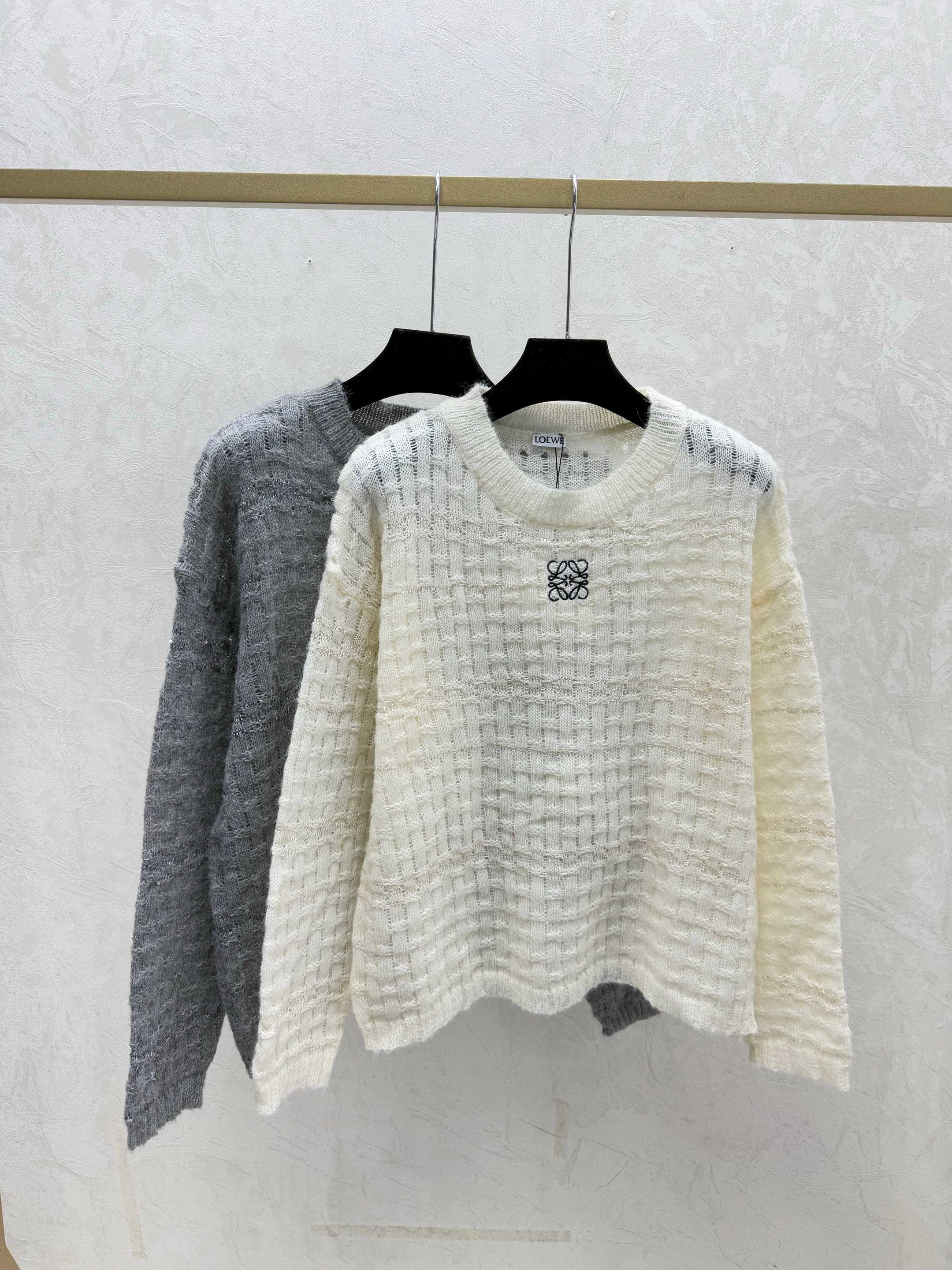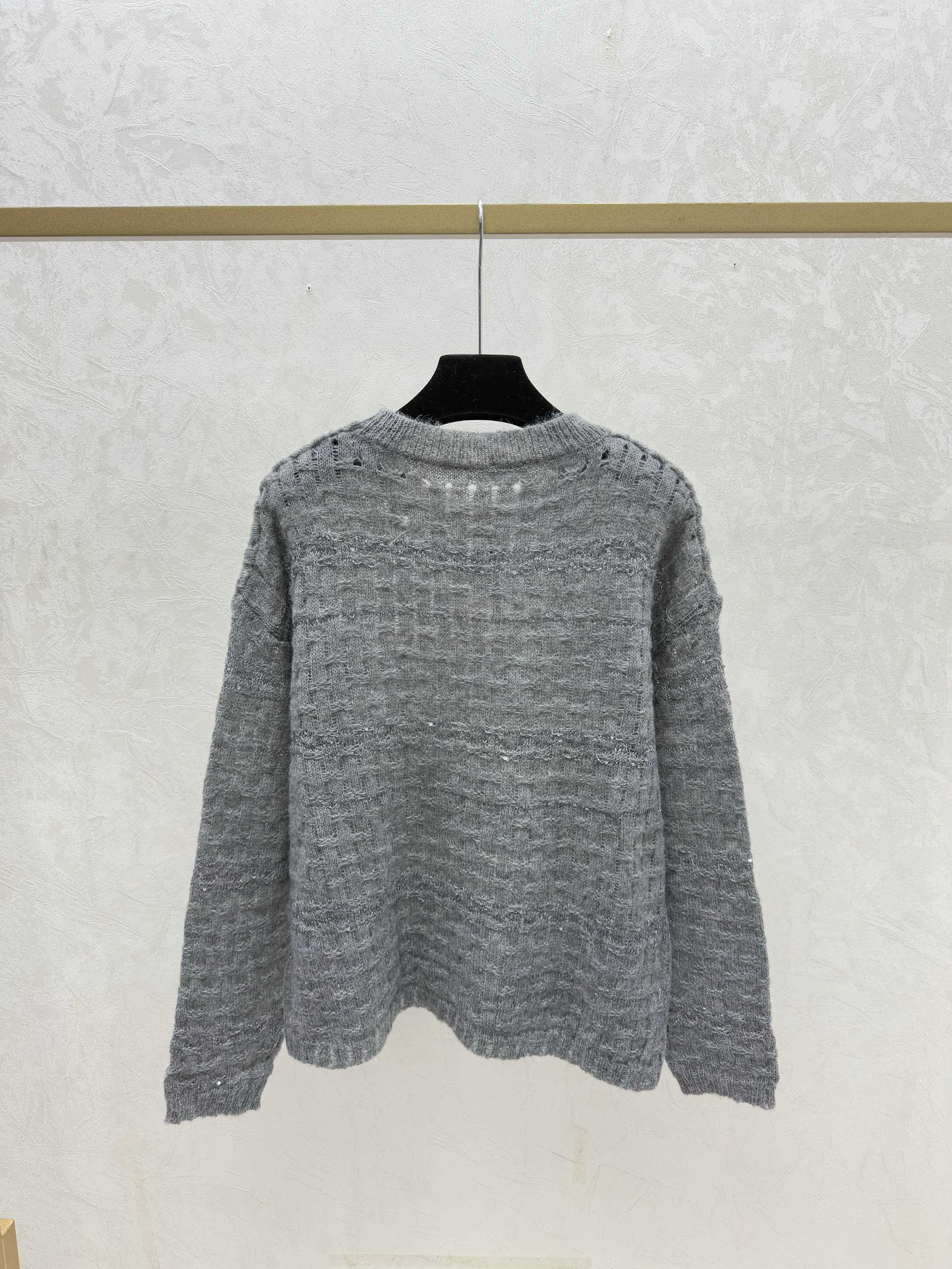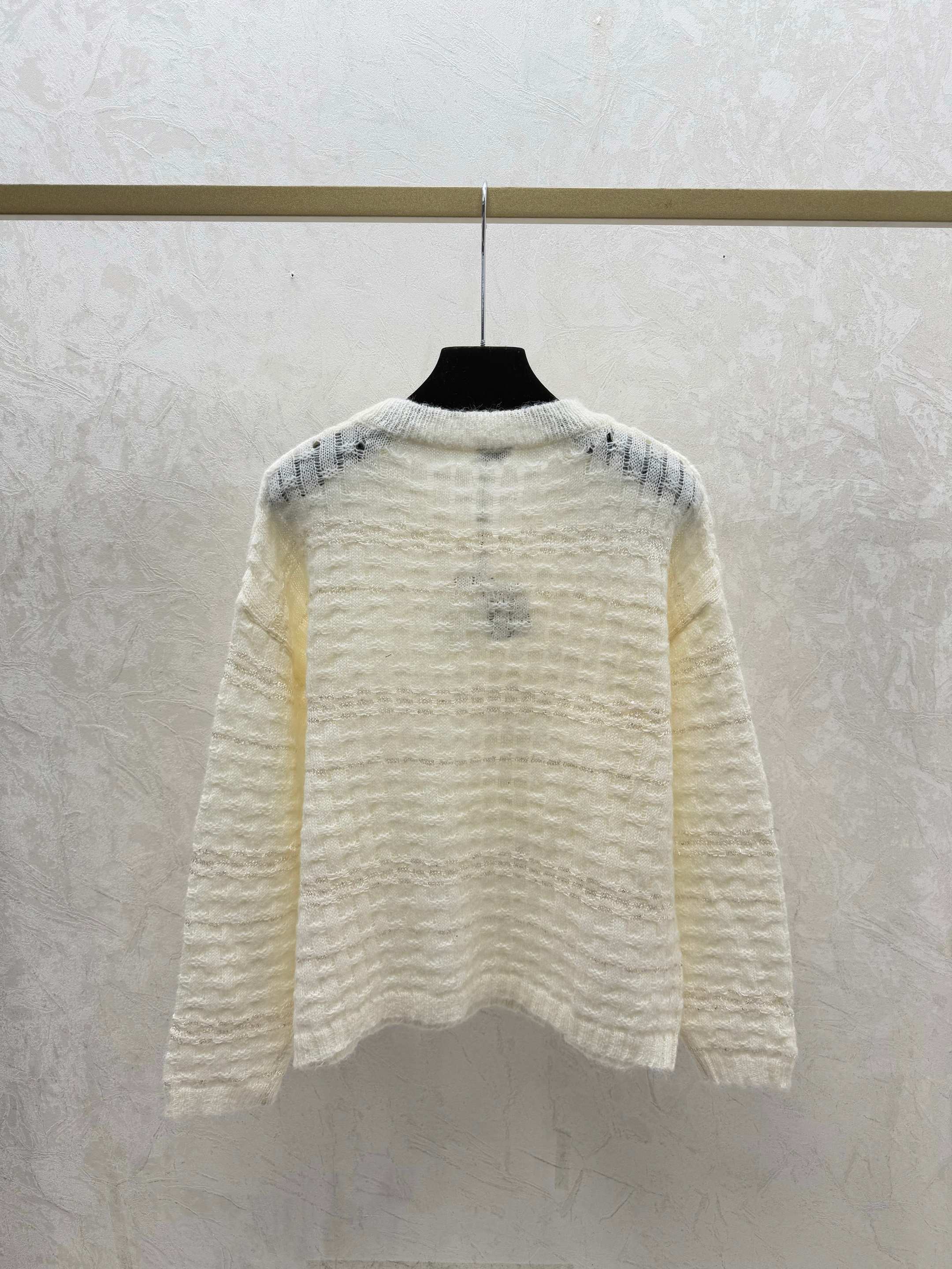 Details: Early autumn new style, solid - color hollow beaded round - neck knitted long - sleeve, available in white, gray, sizes 36, 38, 40