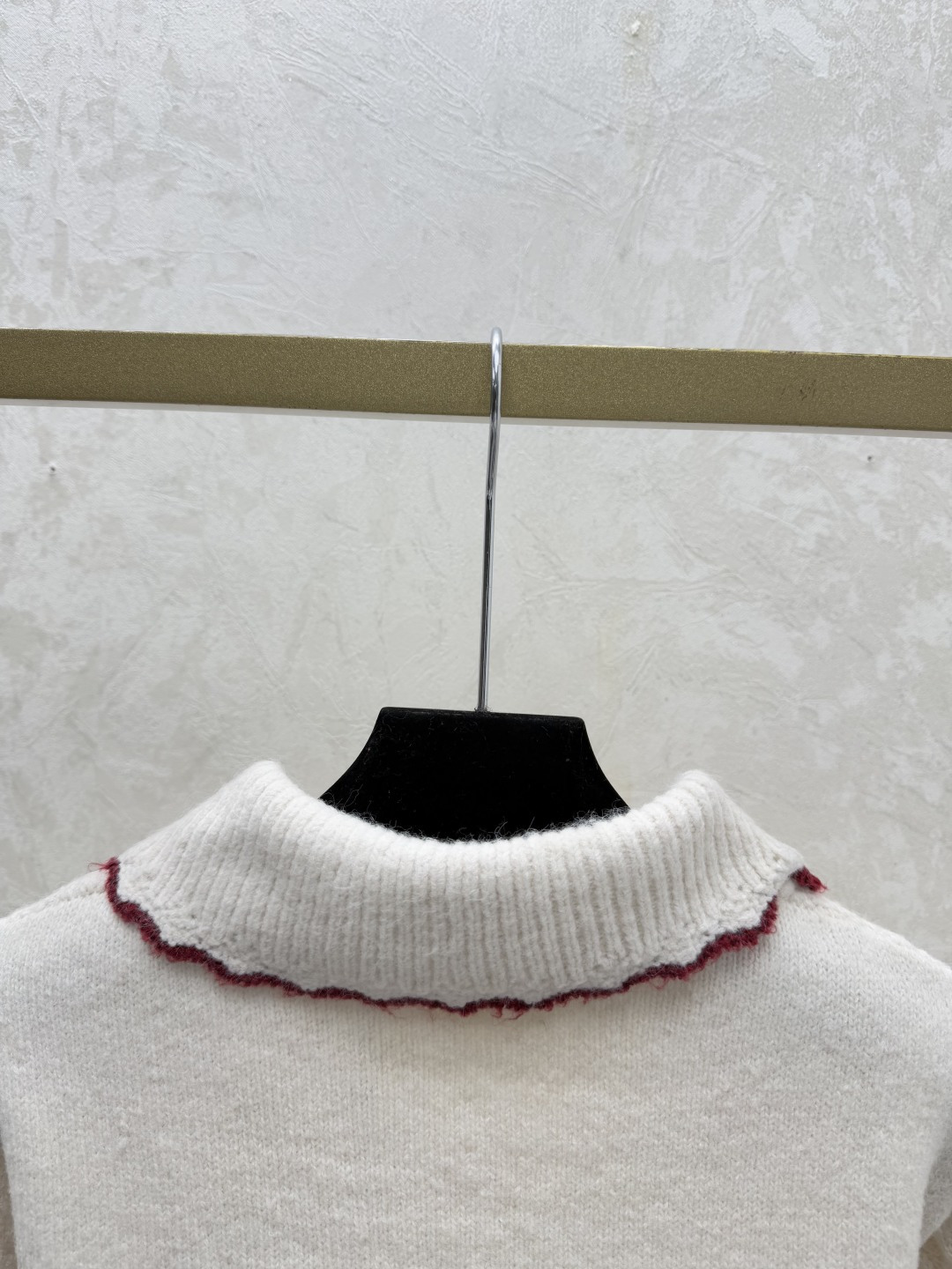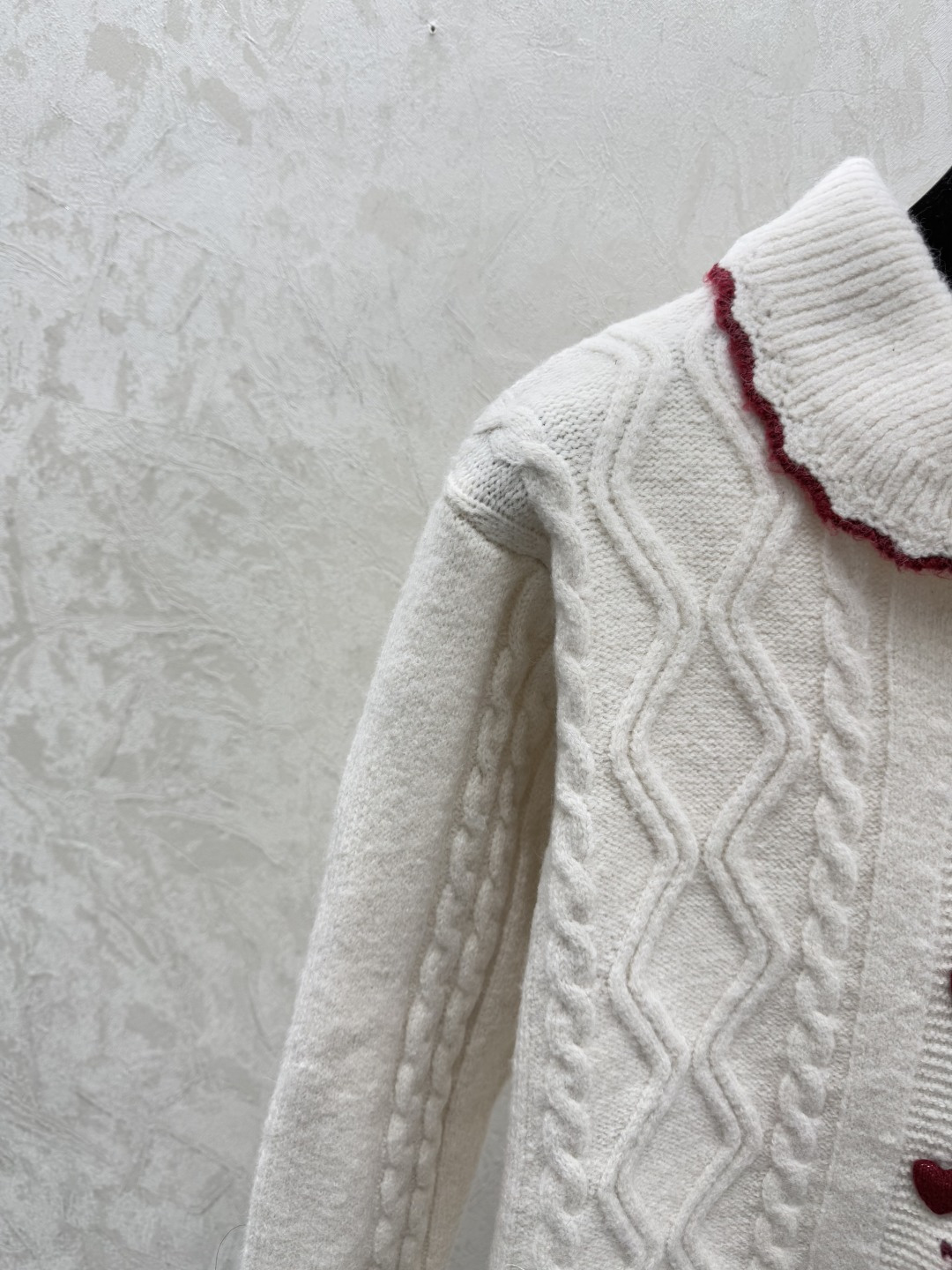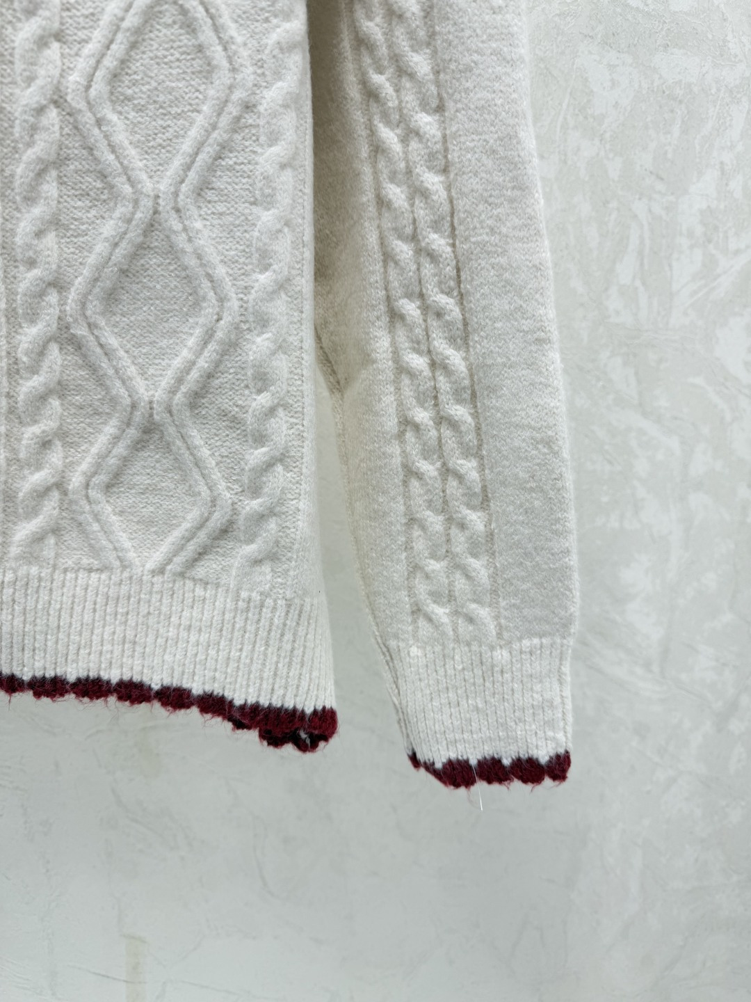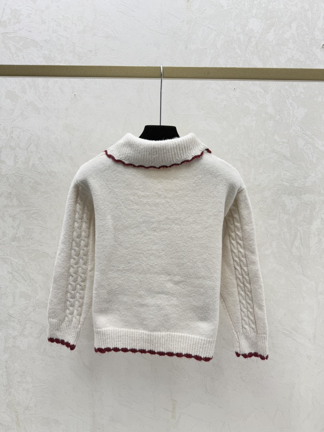 Details: Early autumn color-blocked lapel knitted long-sleeved cardigan in white. Sizes varying from 36 to 40. Premium custom, fine - made