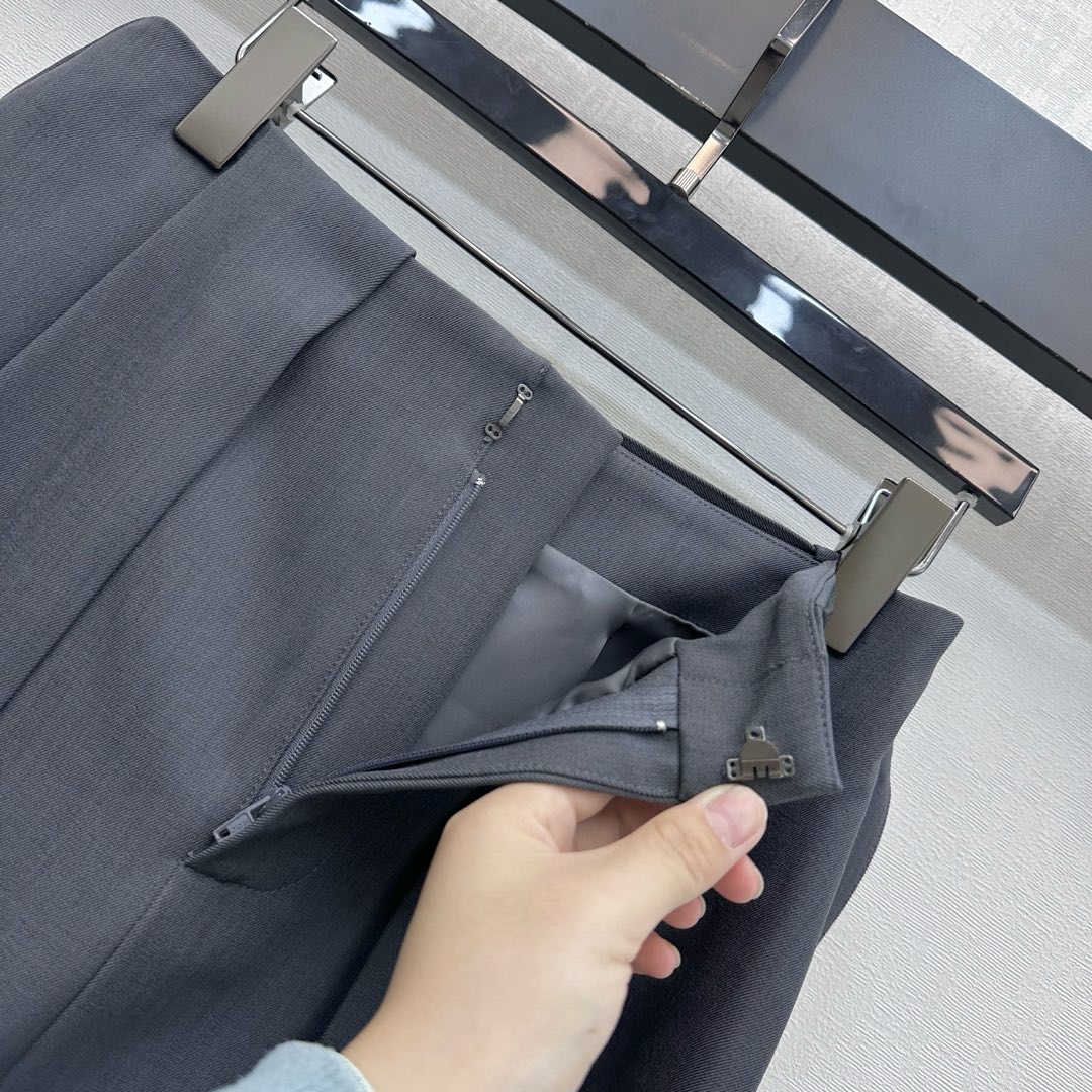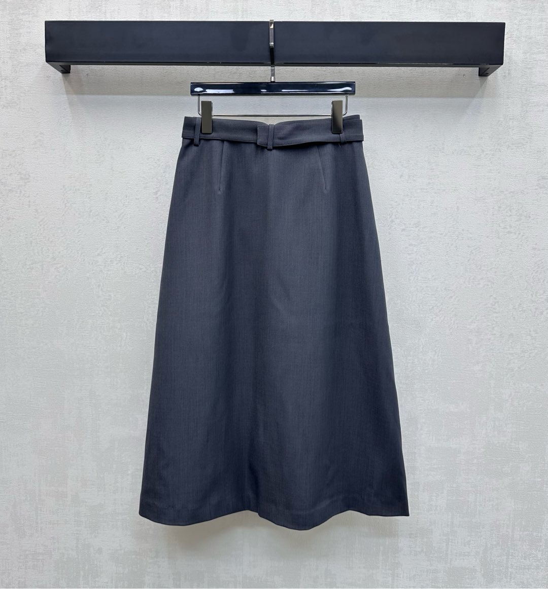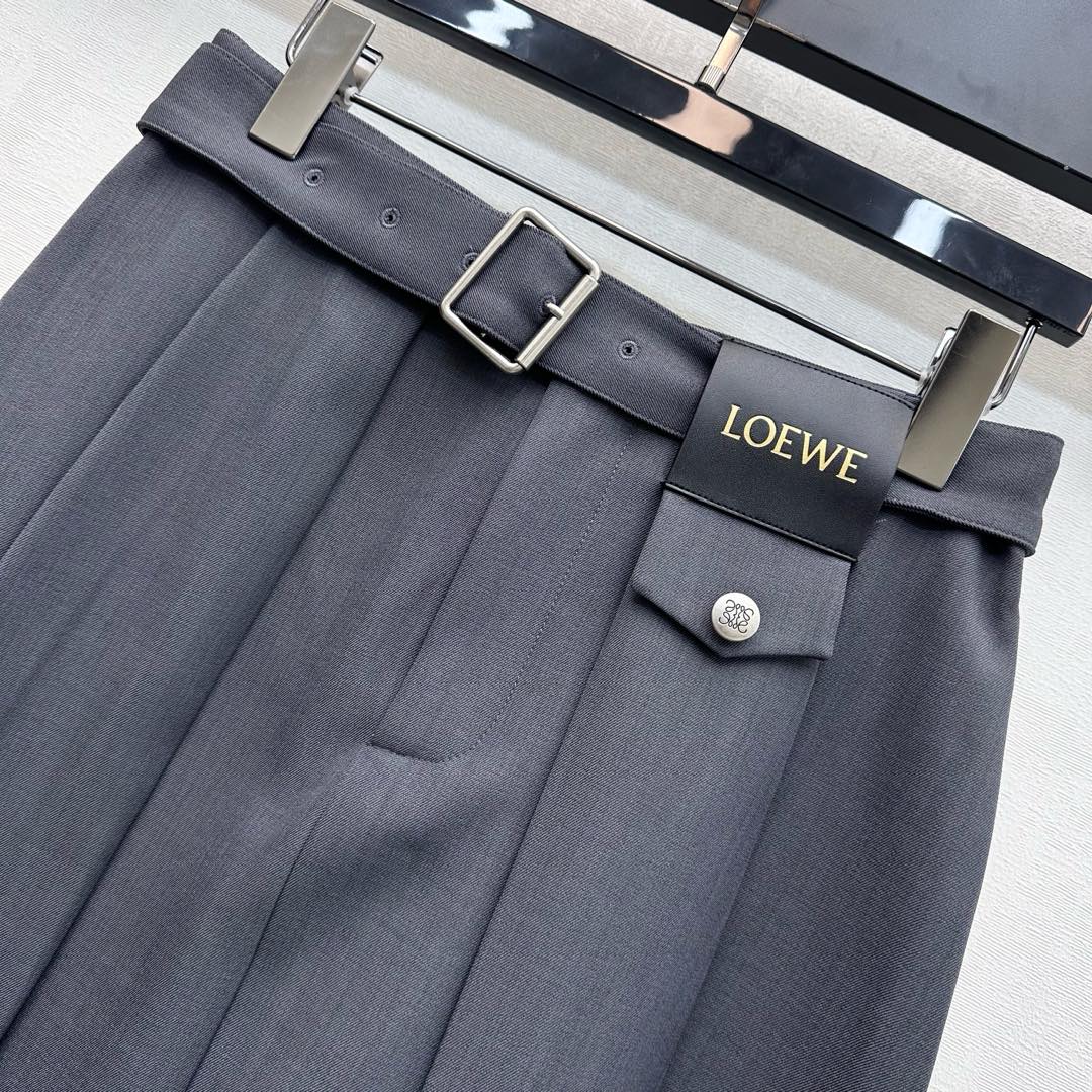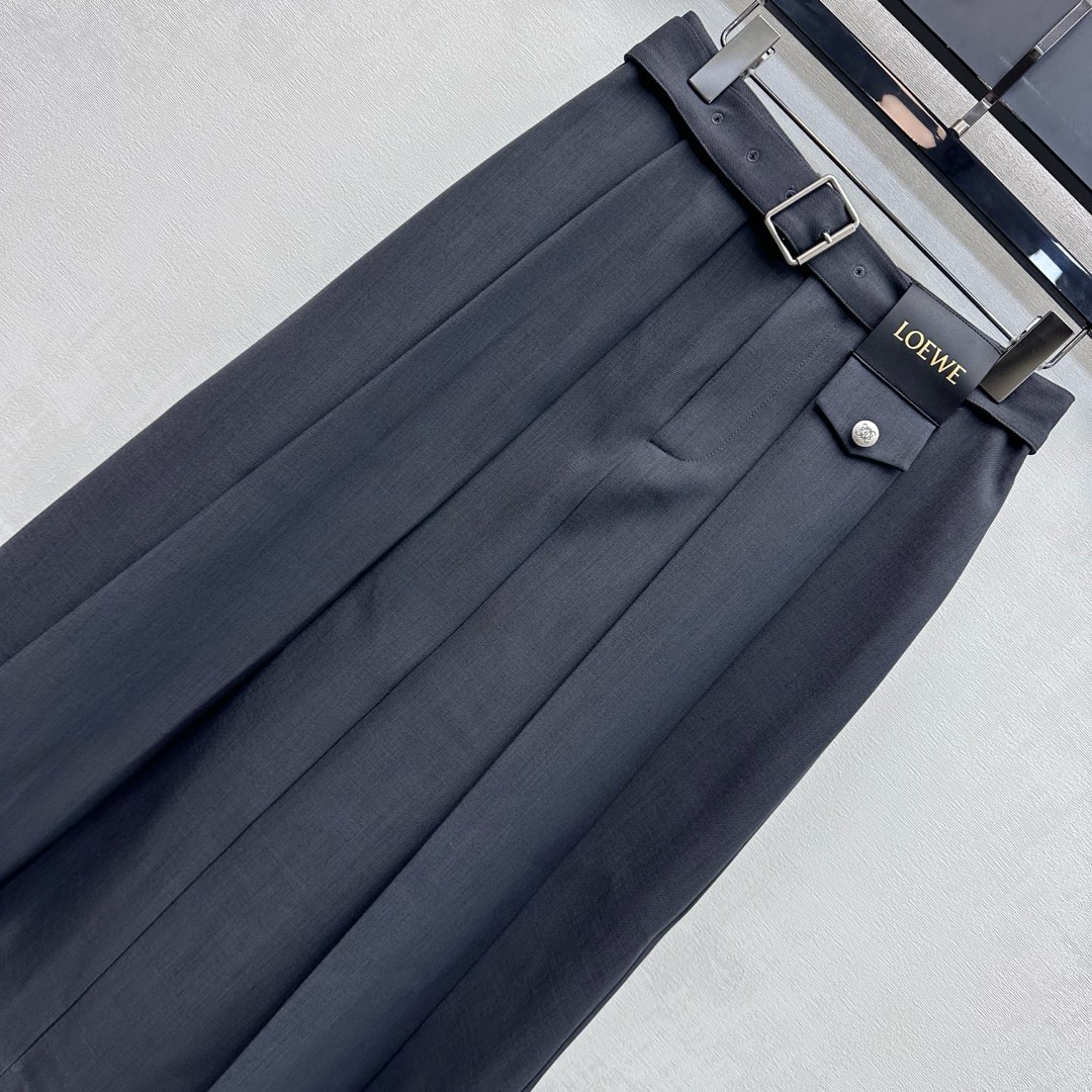 Details: New pleated midi skirt, tailored fabric, stylish with waist belt and logo buttons.