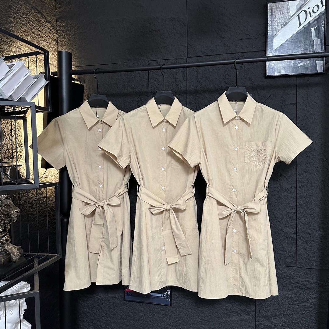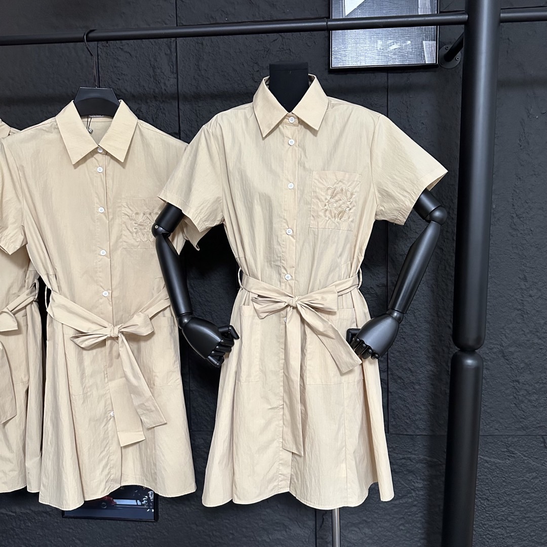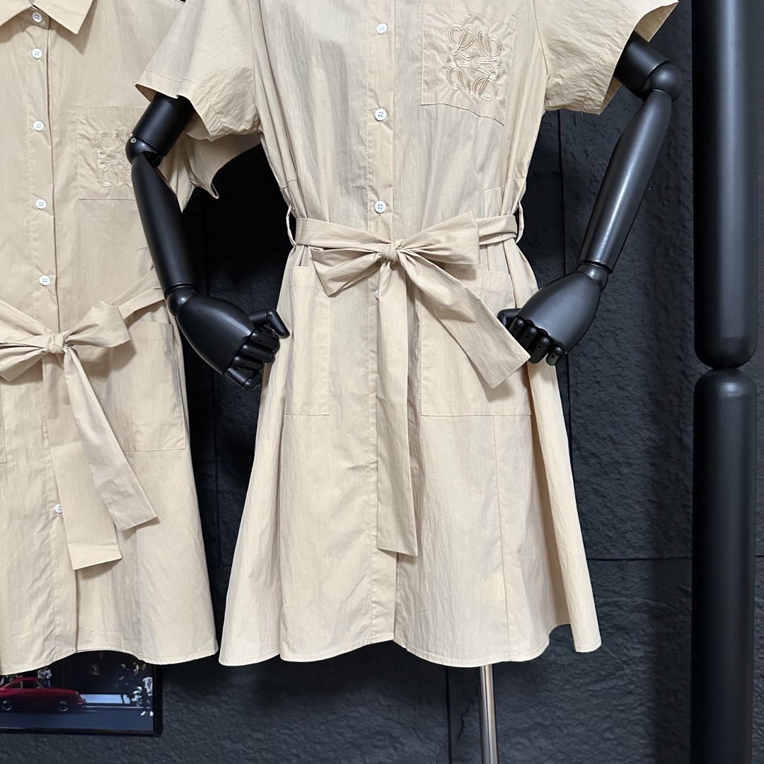 here:home > WOMENS > Loewe > Dress-Skirt Loewe (W) > Loewe Loose Literary Dress with Belt and Embroidered Pocket
