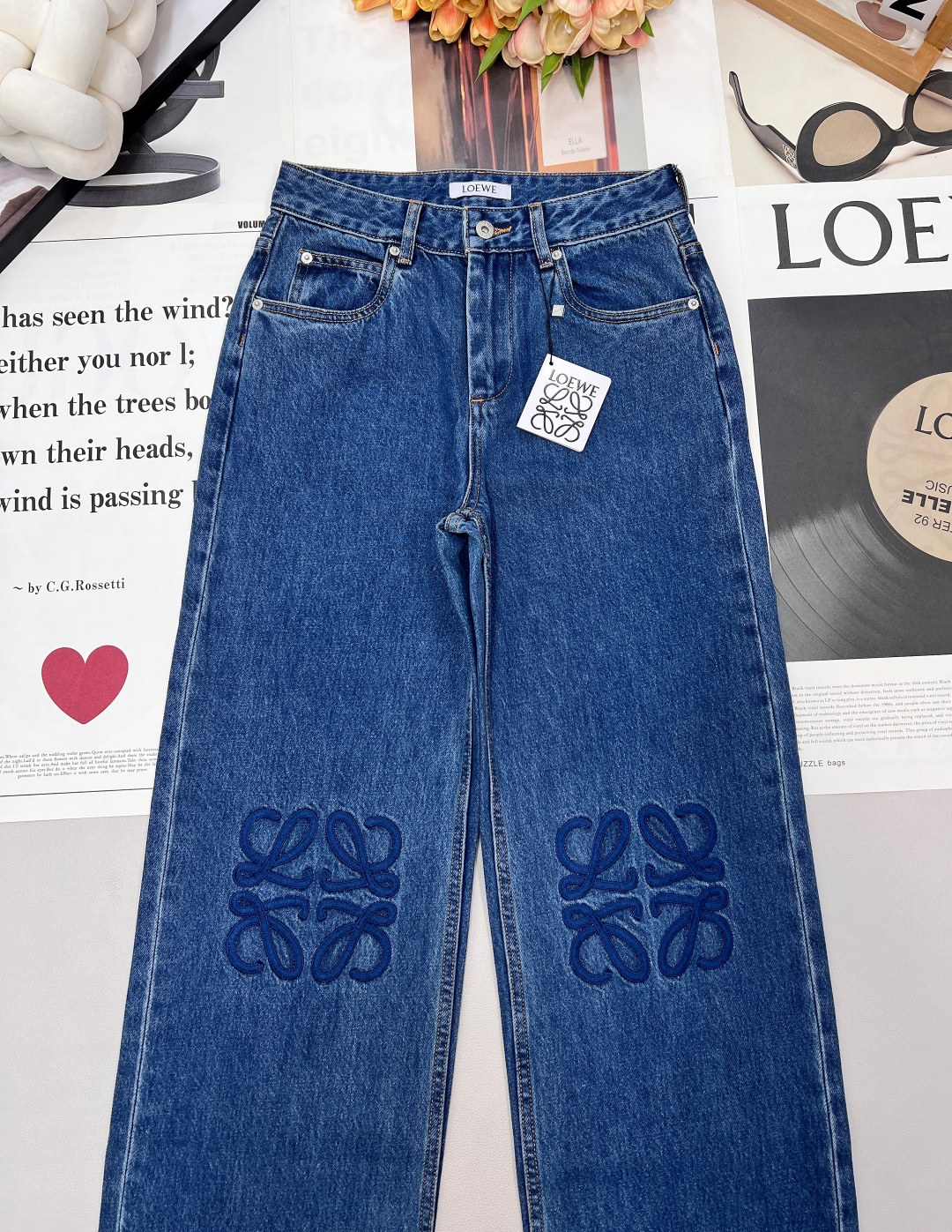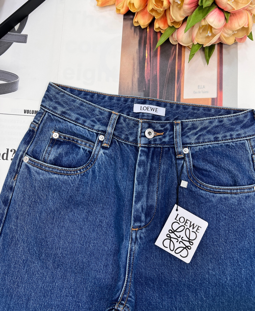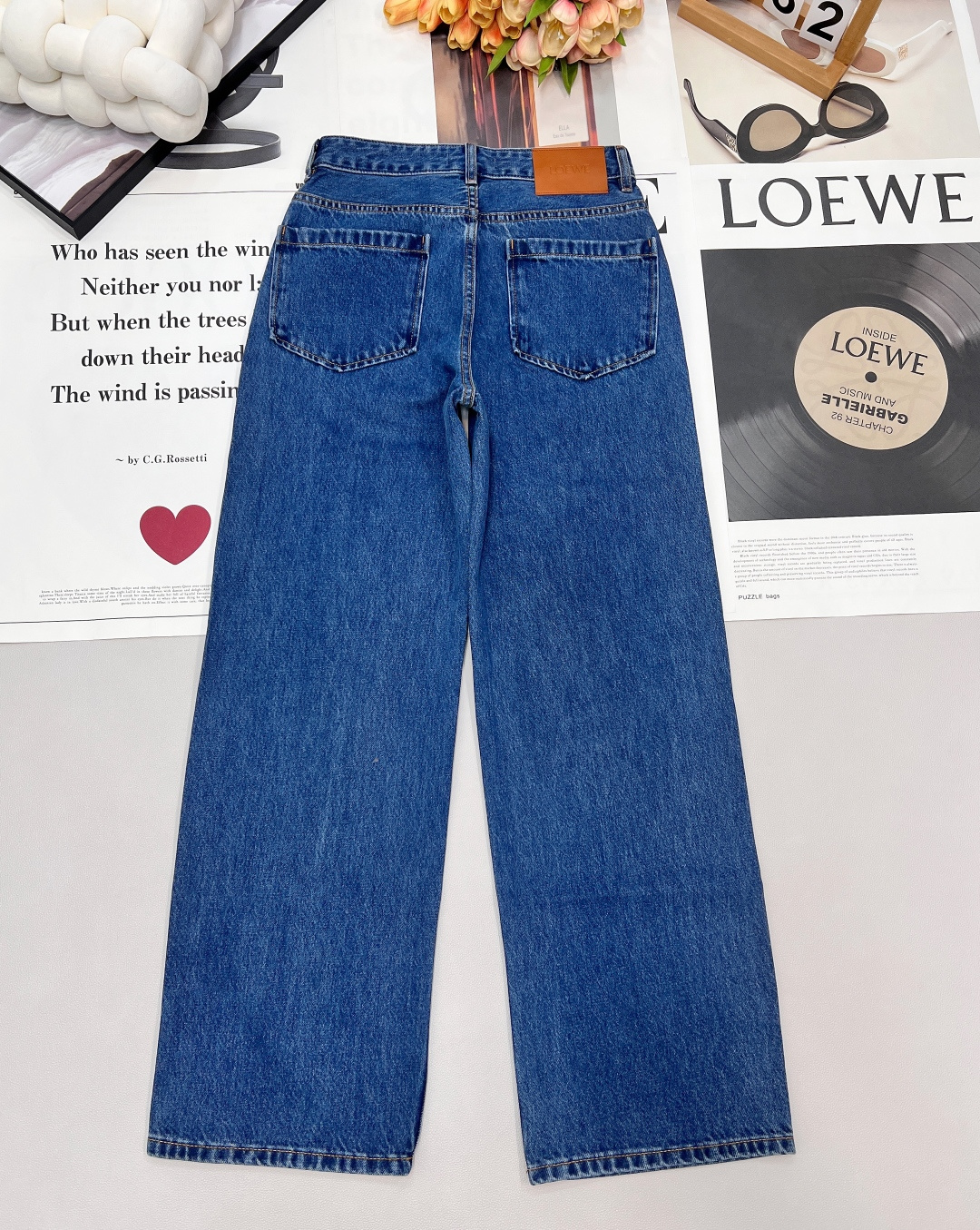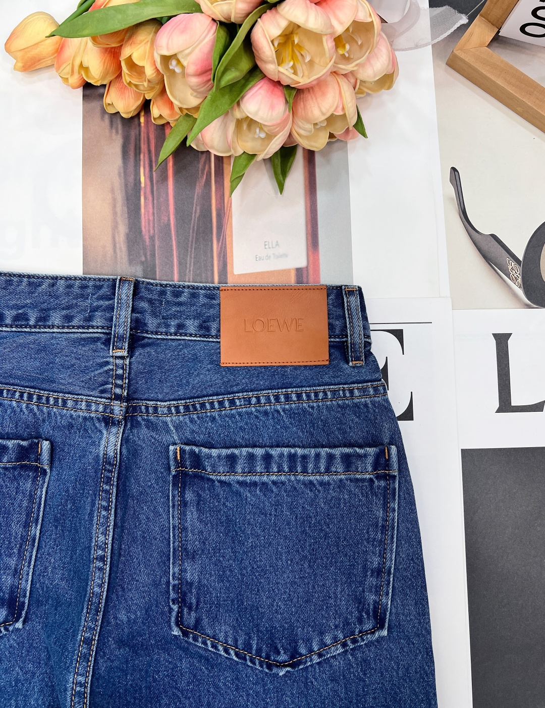 Details: Exclusive high-waisted straight-leg blue jeans, flattering for all figures, high-end customization, fine workmanship