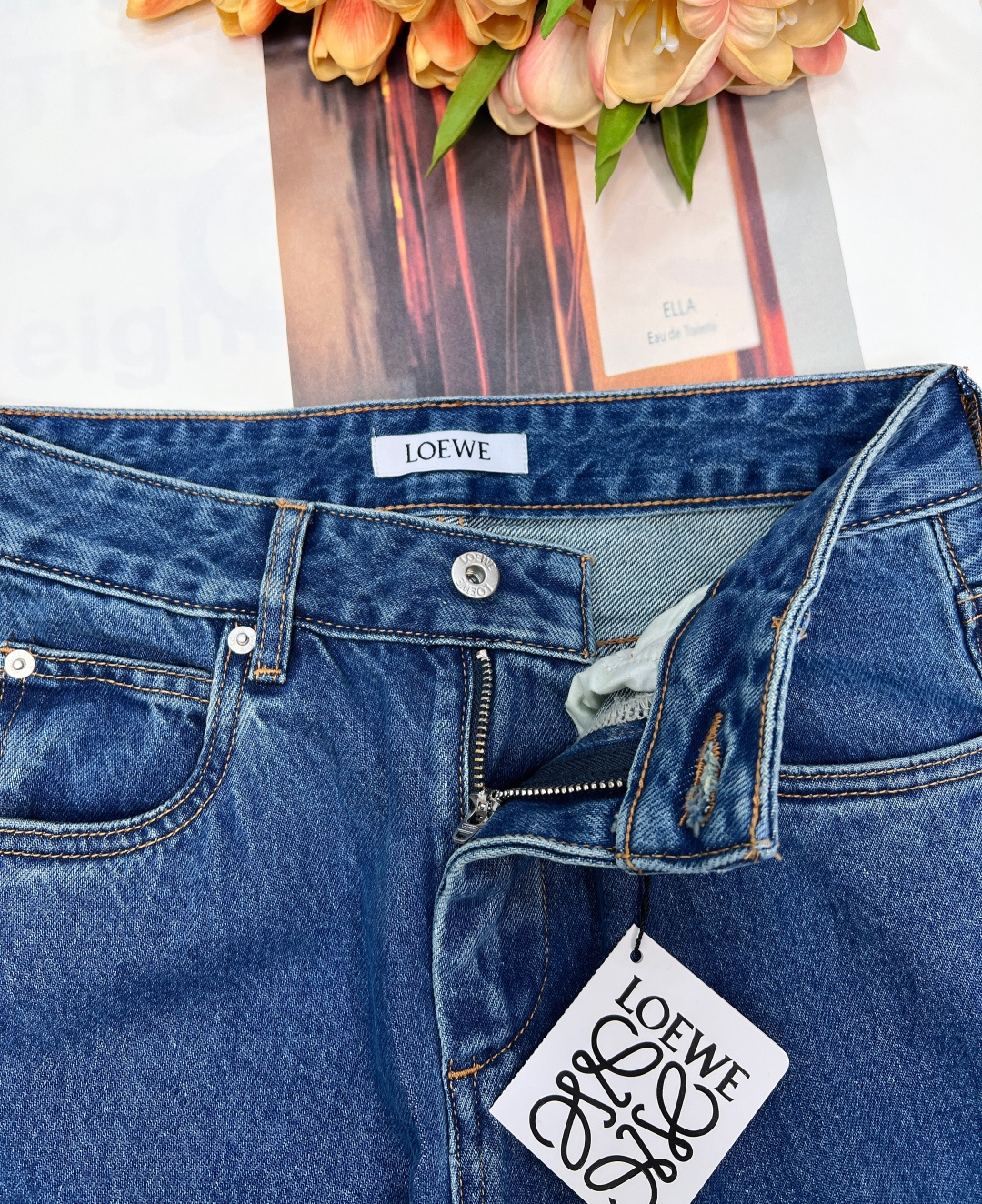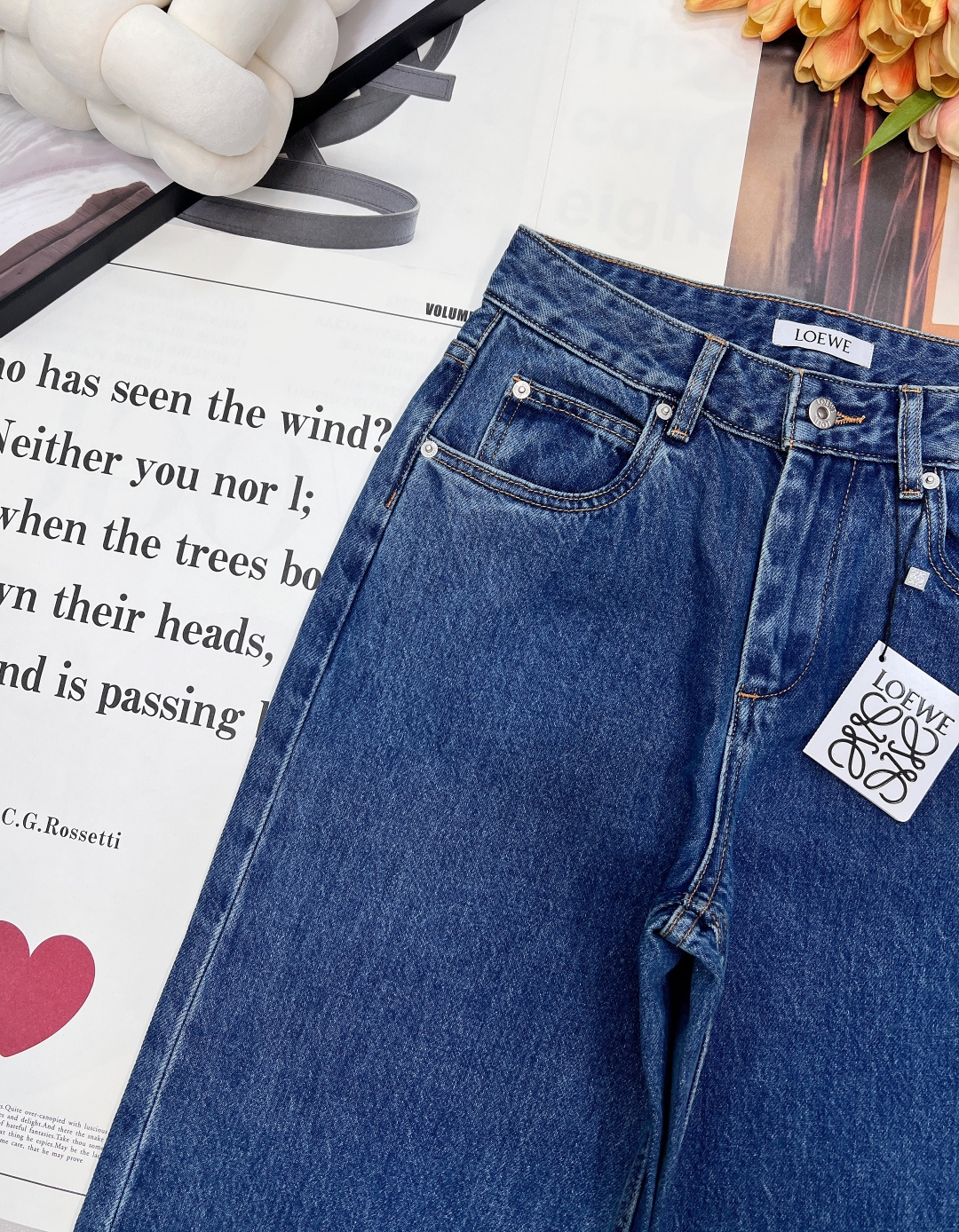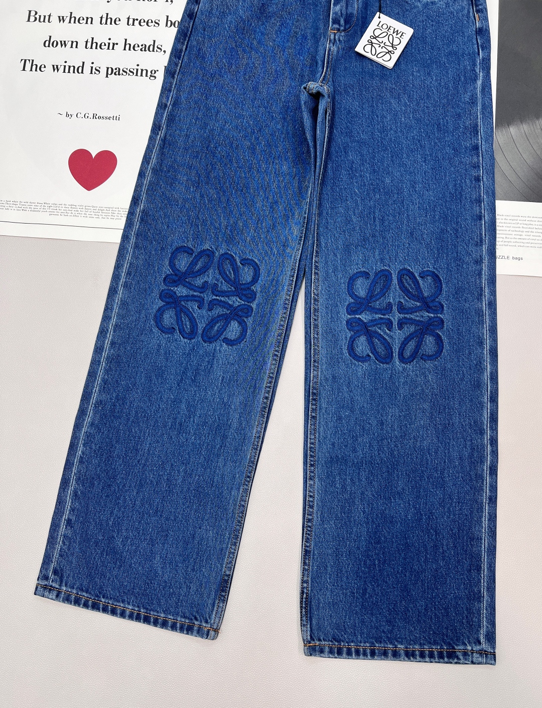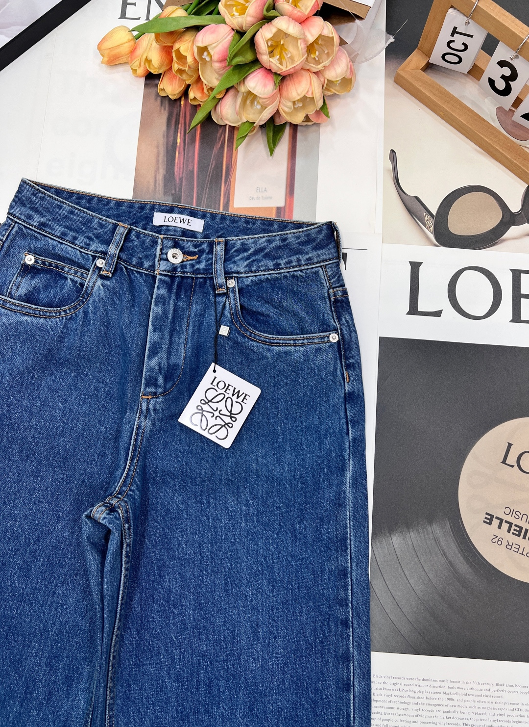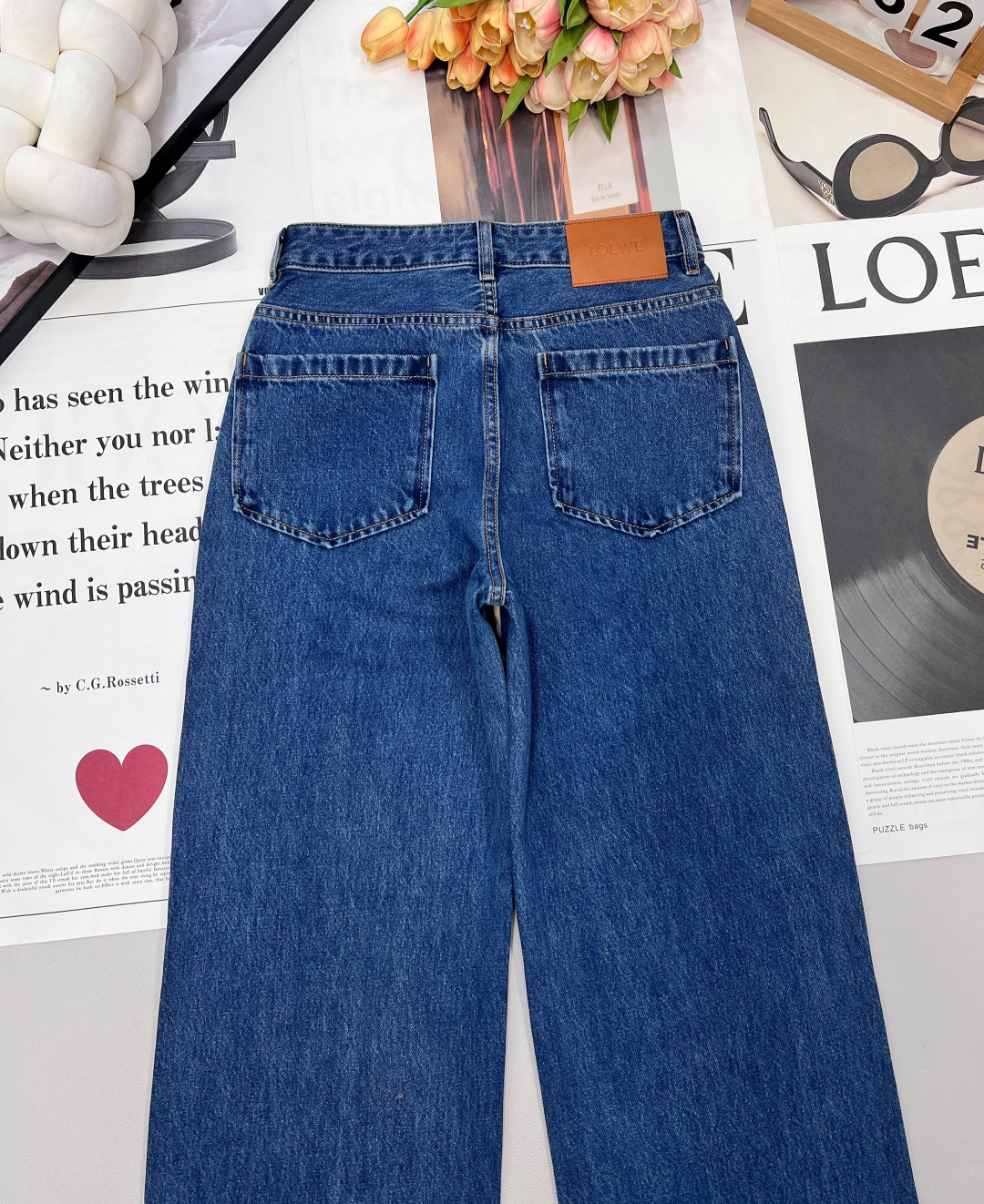 Details: Exclusive high-waisted straight-leg blue jeans, flattering for all figures, high-end customization, fine workmanship