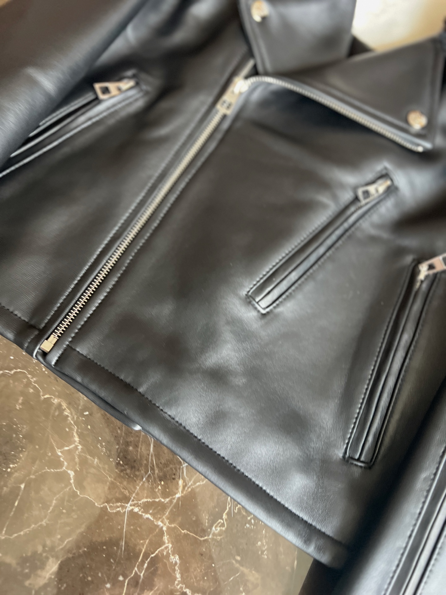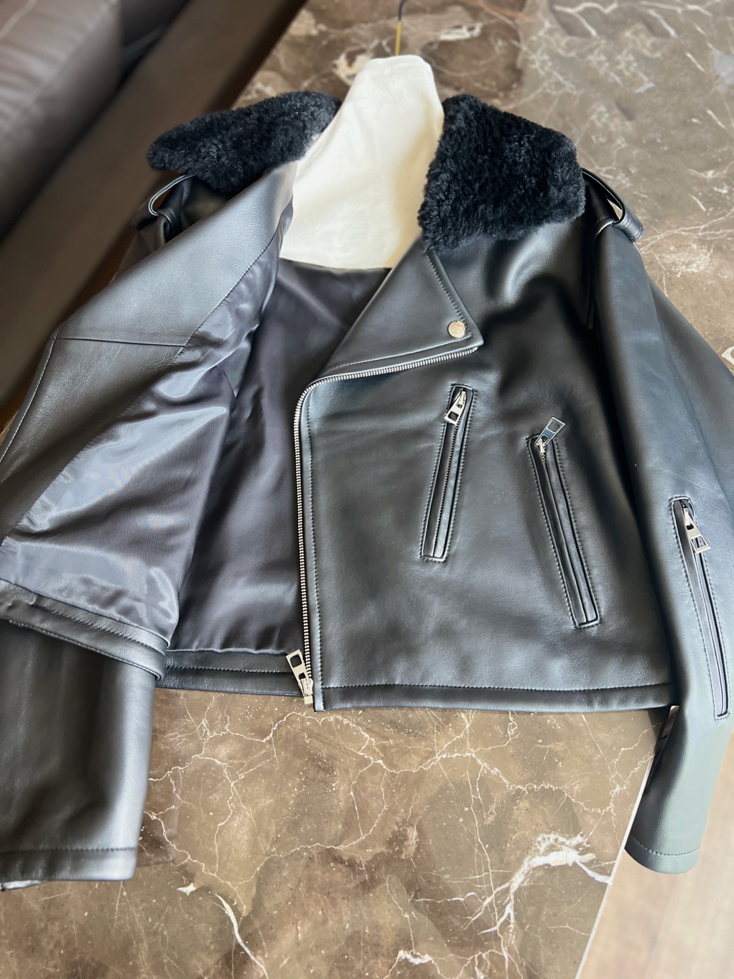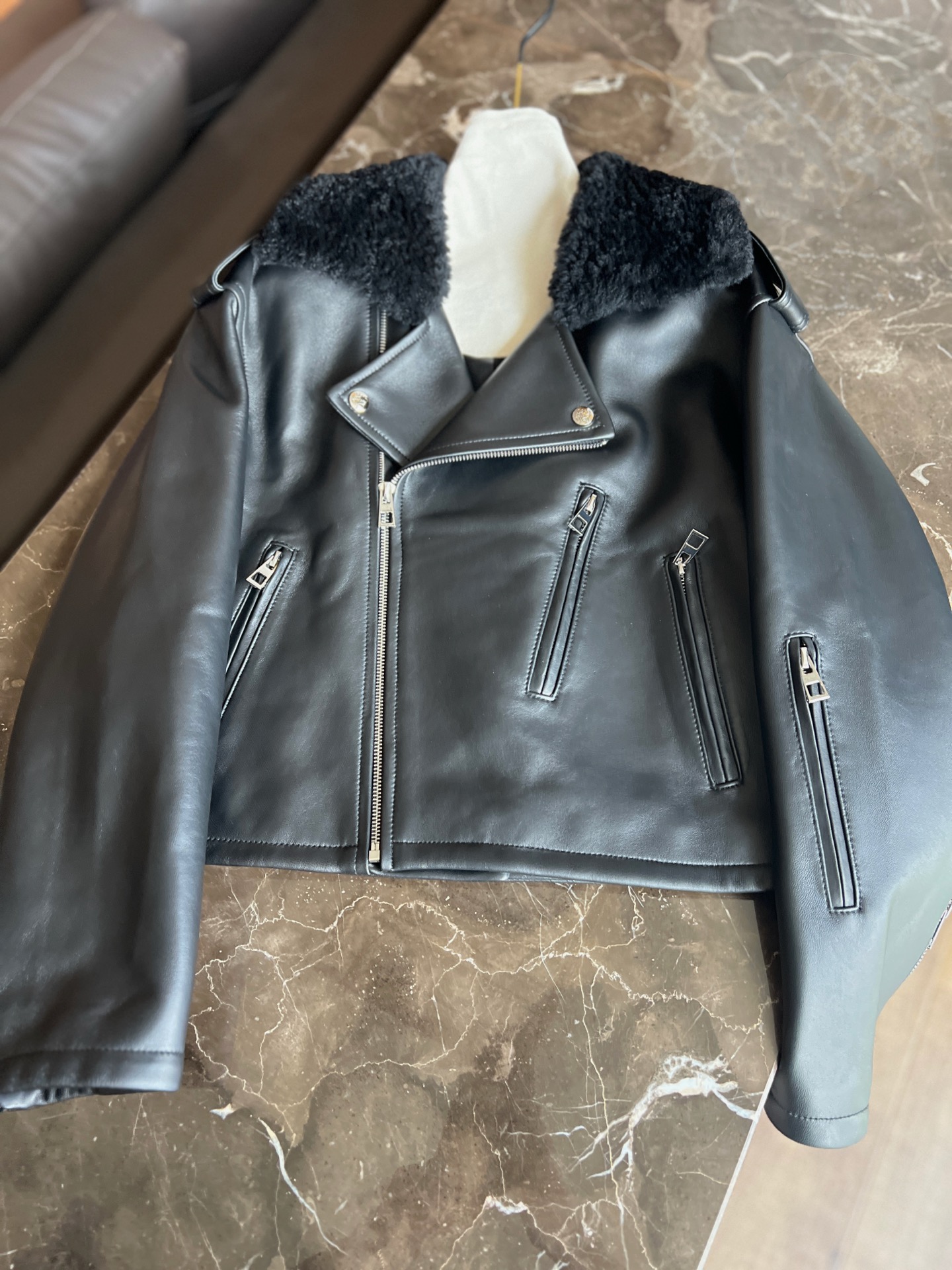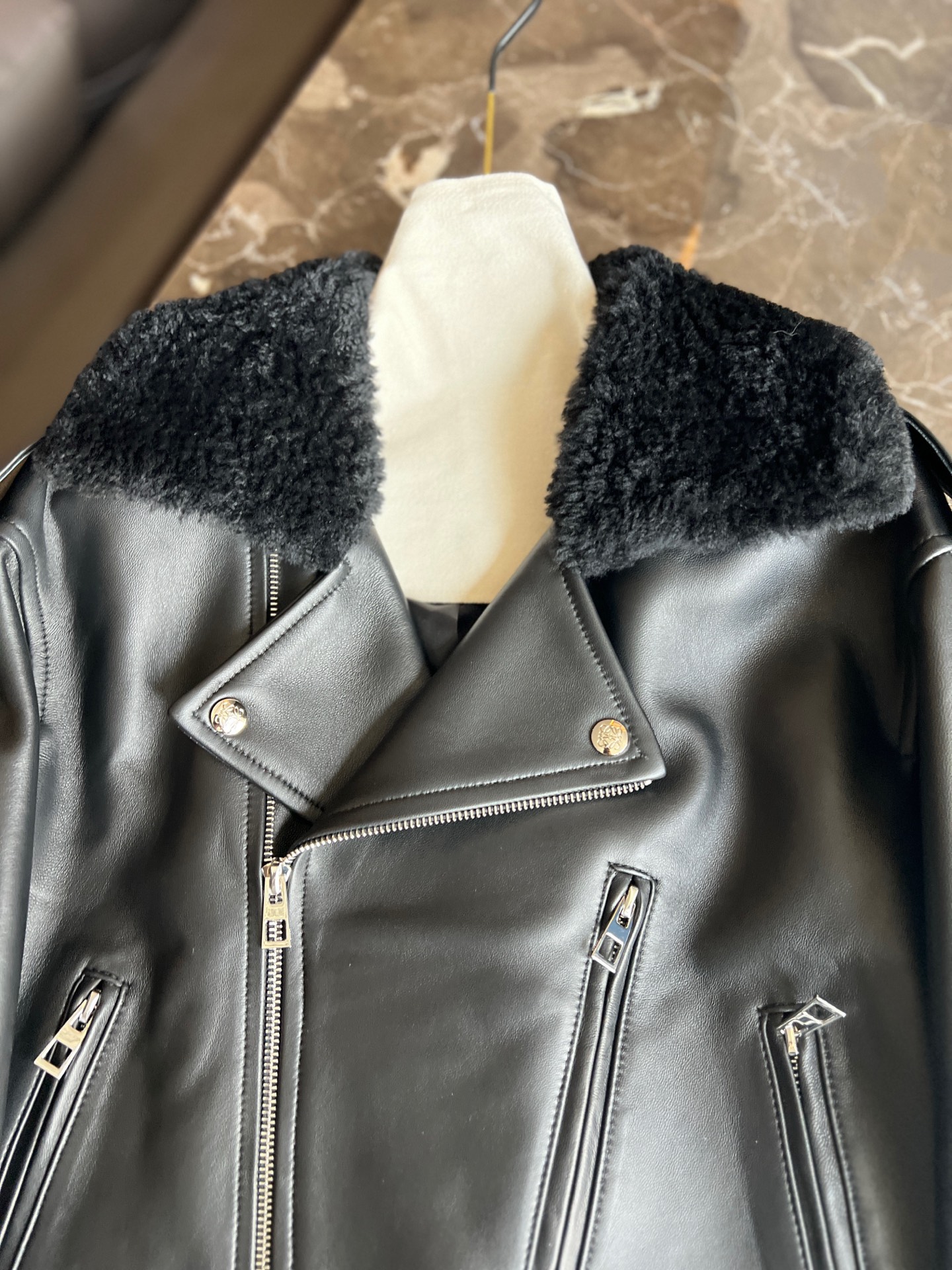Details: Autumn and winter leather coat with fur - collar, versatile style, imported lambskin fur - on - leather, high - end customization, fine workmanship