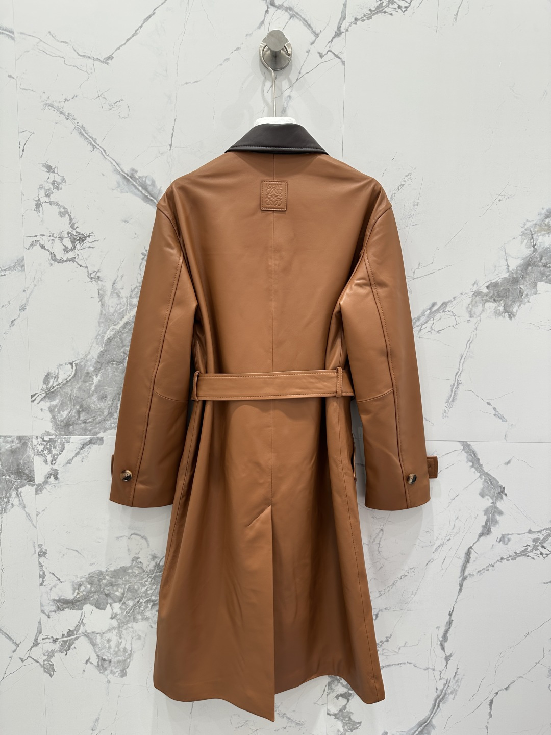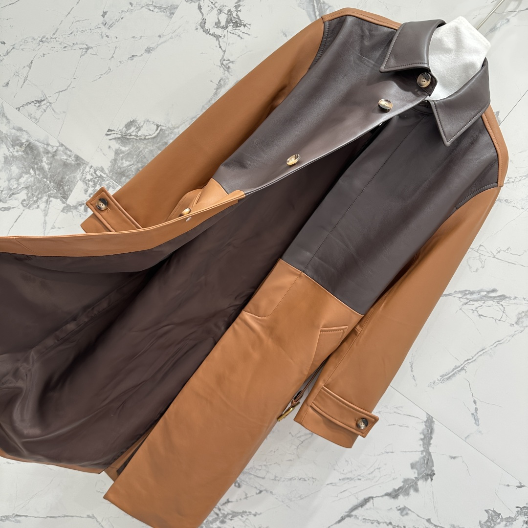 Details: Premium long leather trench coat, minimalist design, top-quality lambskin, tailored fit, chic and sophisticated, perfect for any occasion.