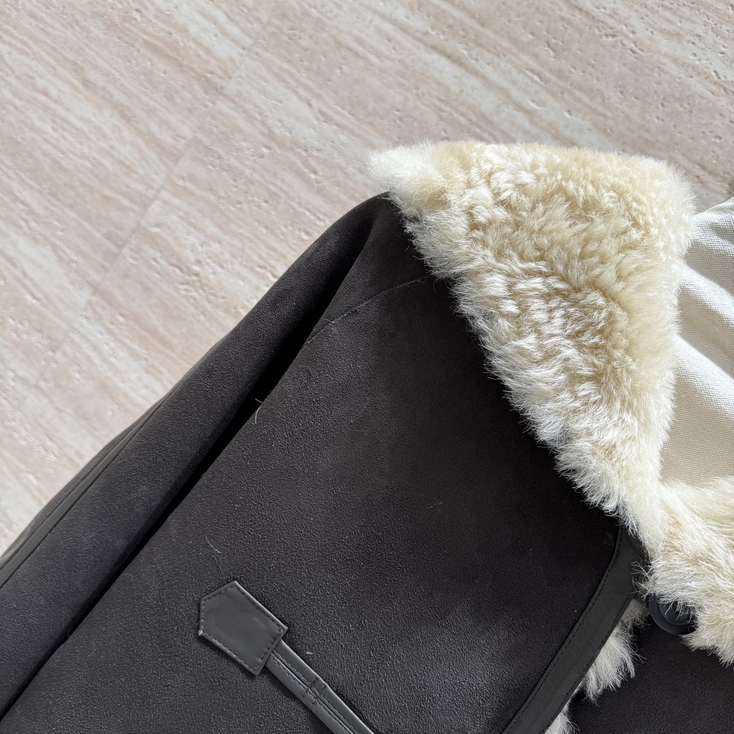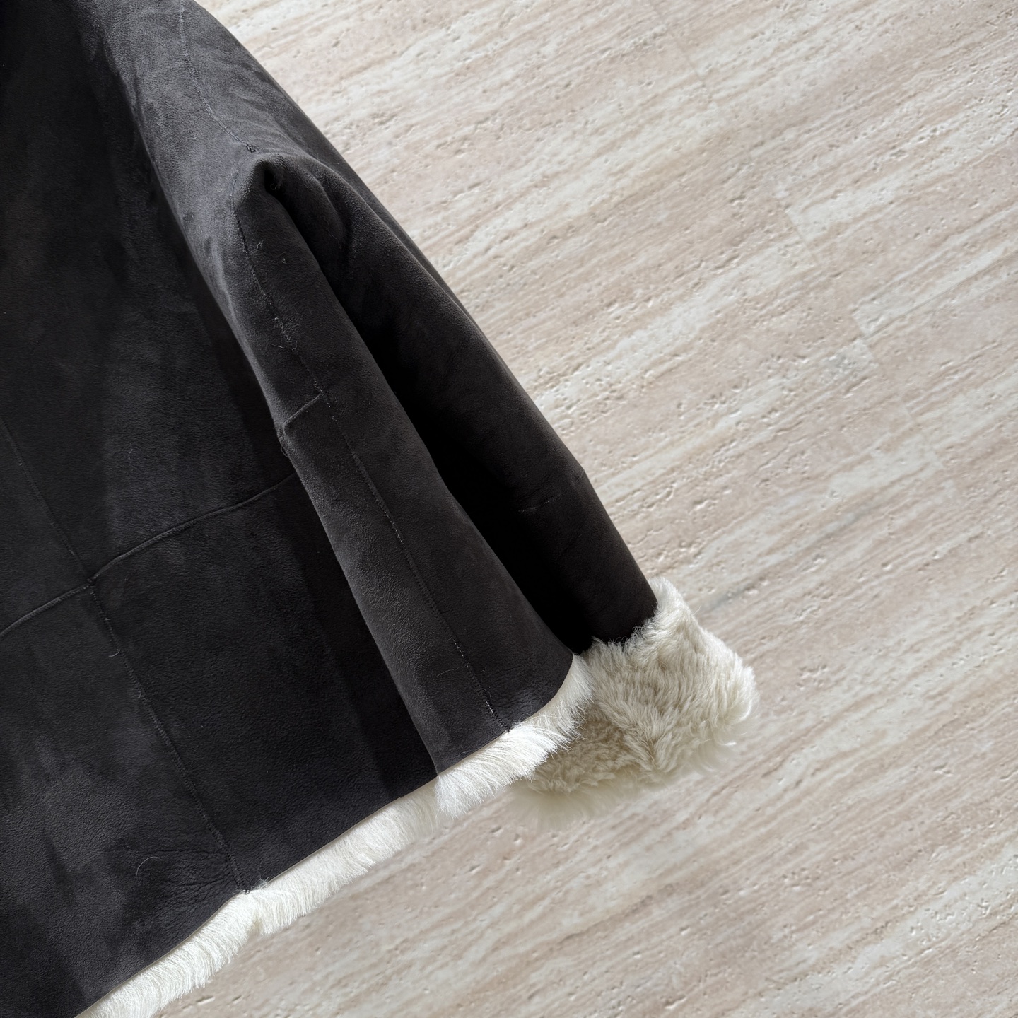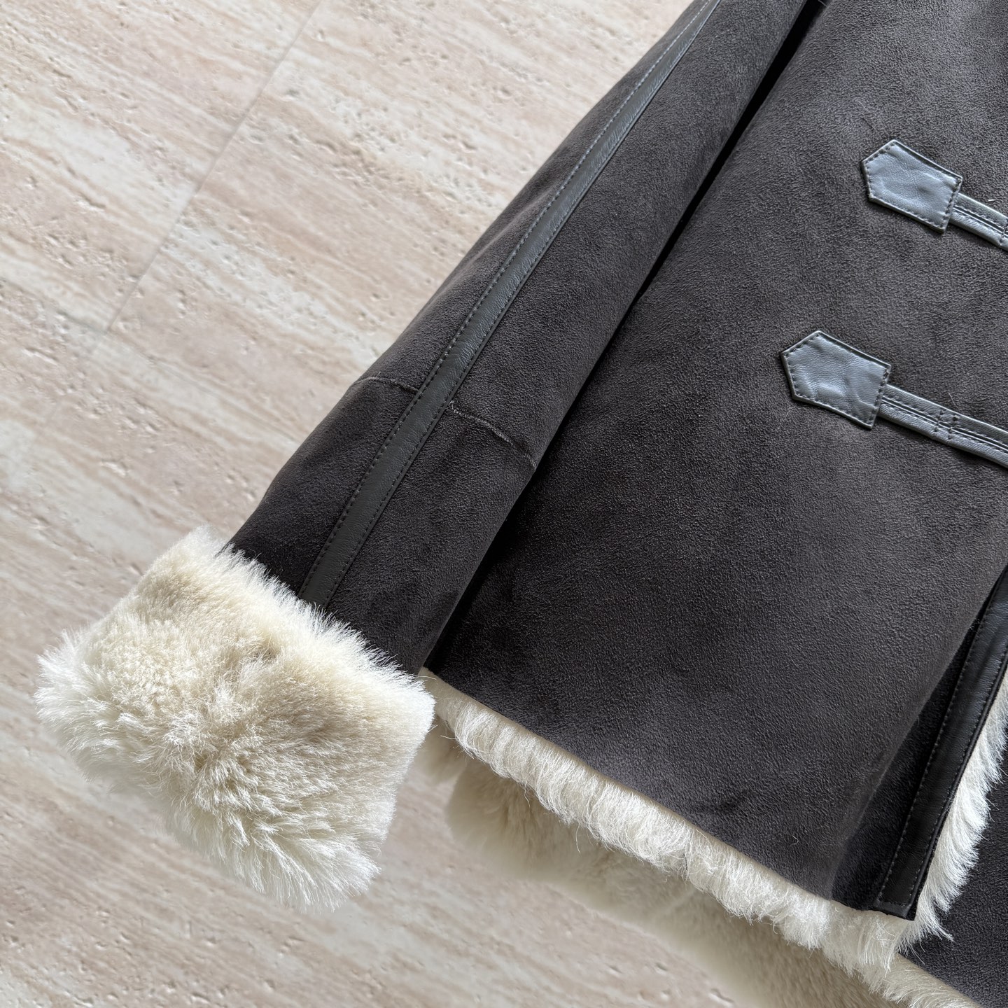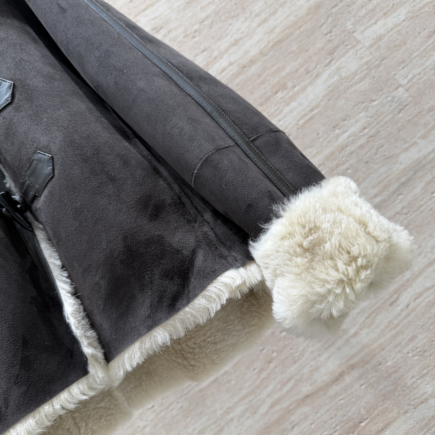 Details: Hooded fur coat with horn buttons, German imported suede, loose fit, size 36 - 42