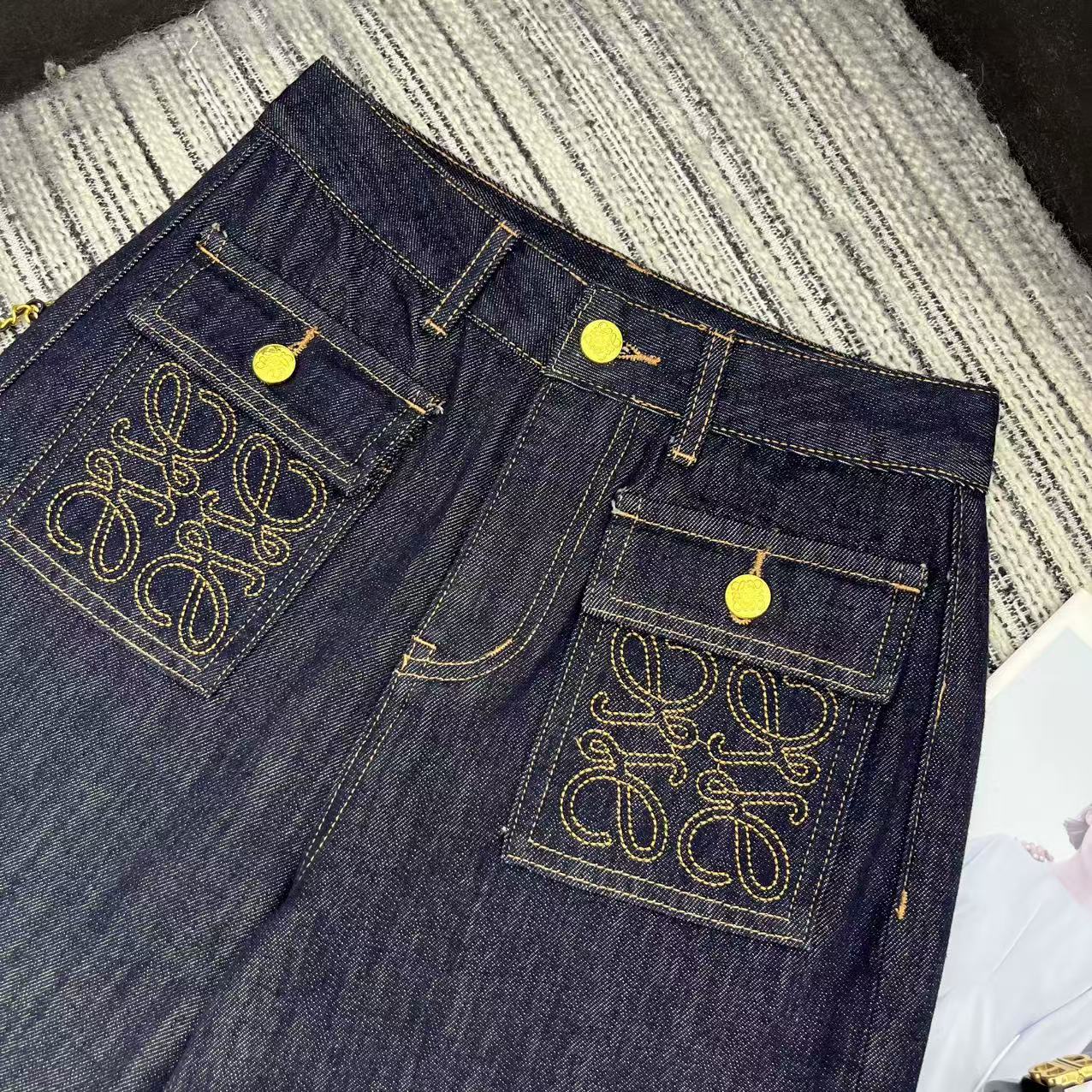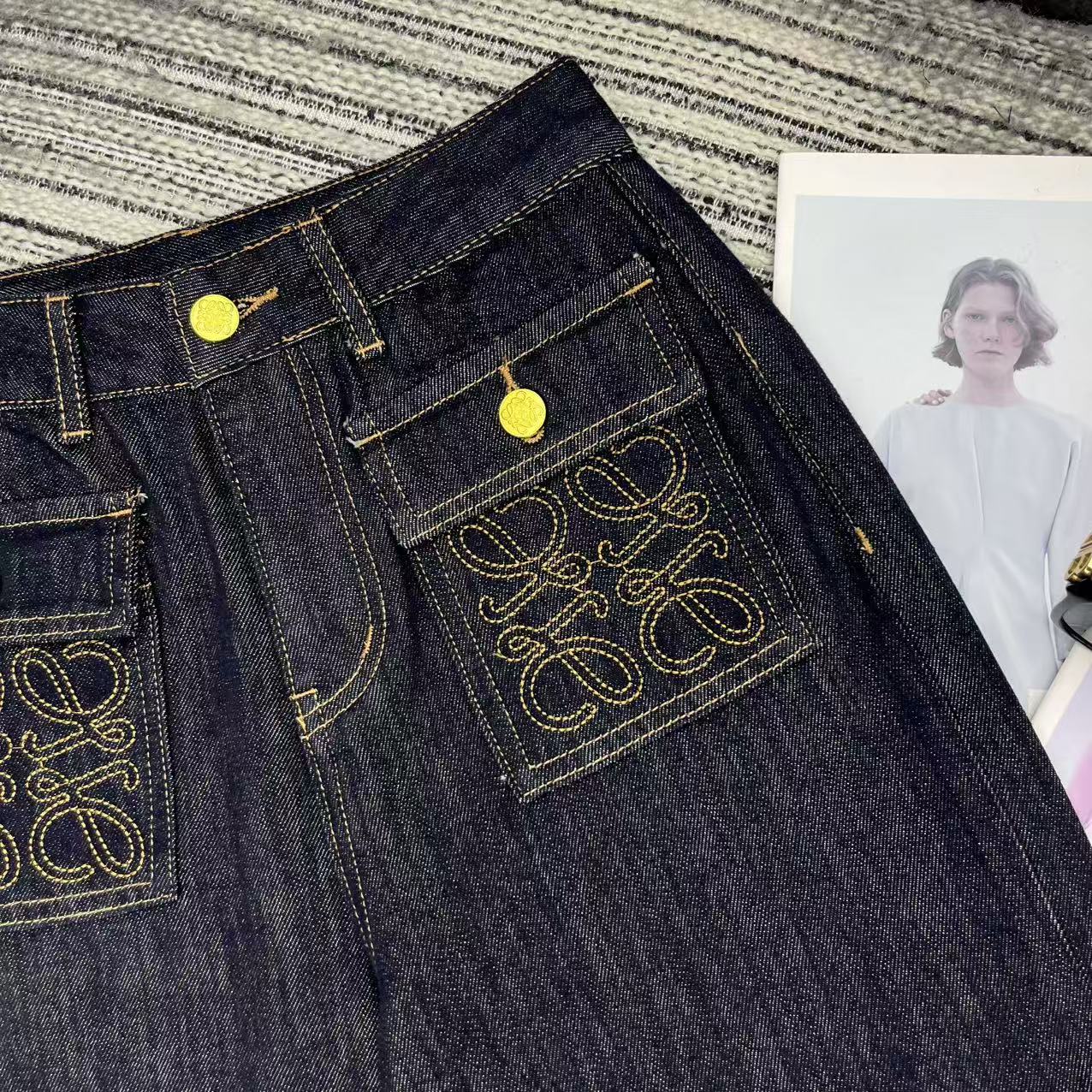 Details: Recommended early autumn series, embroidered logo pocket denim straight-leg pants.