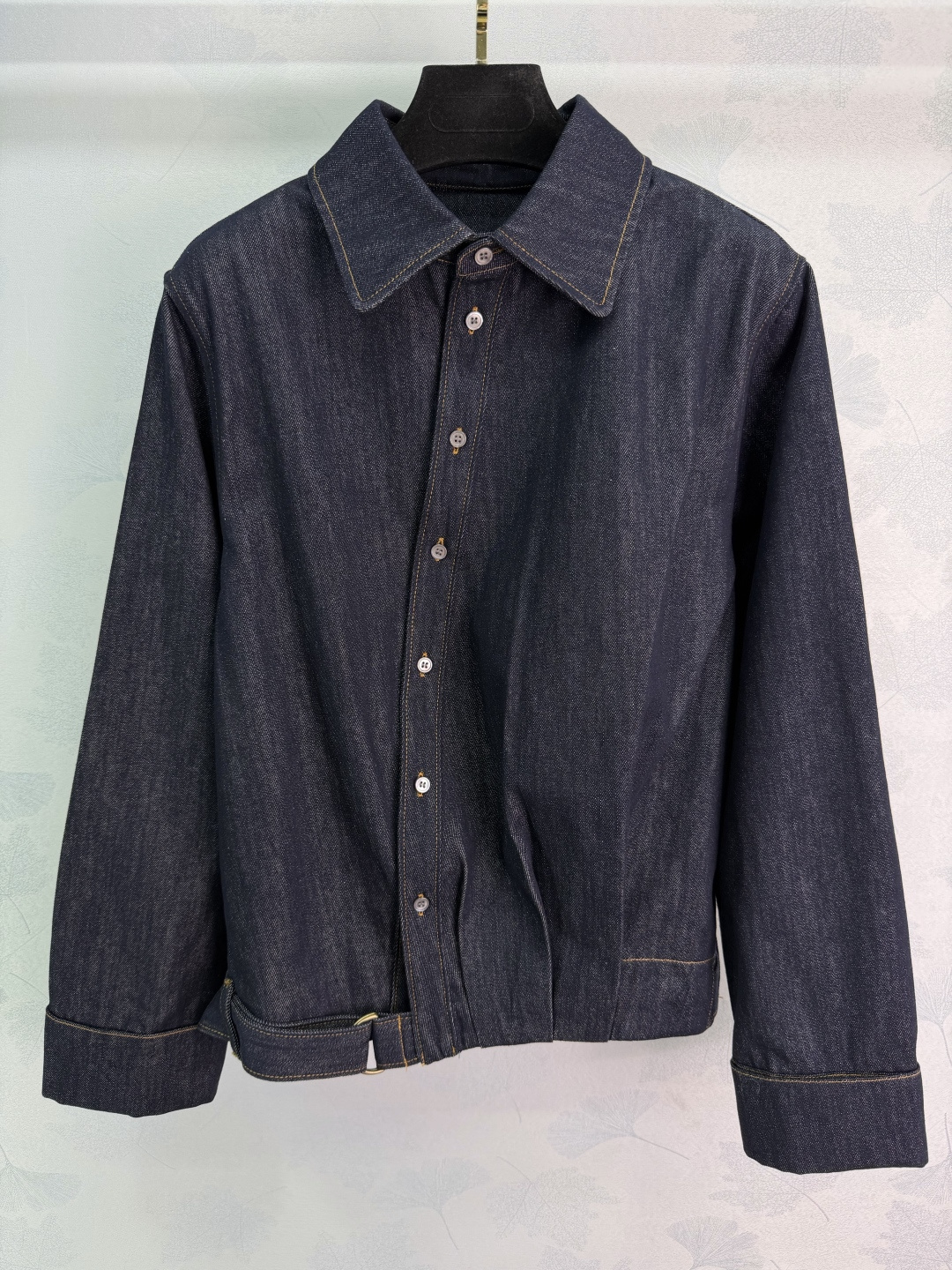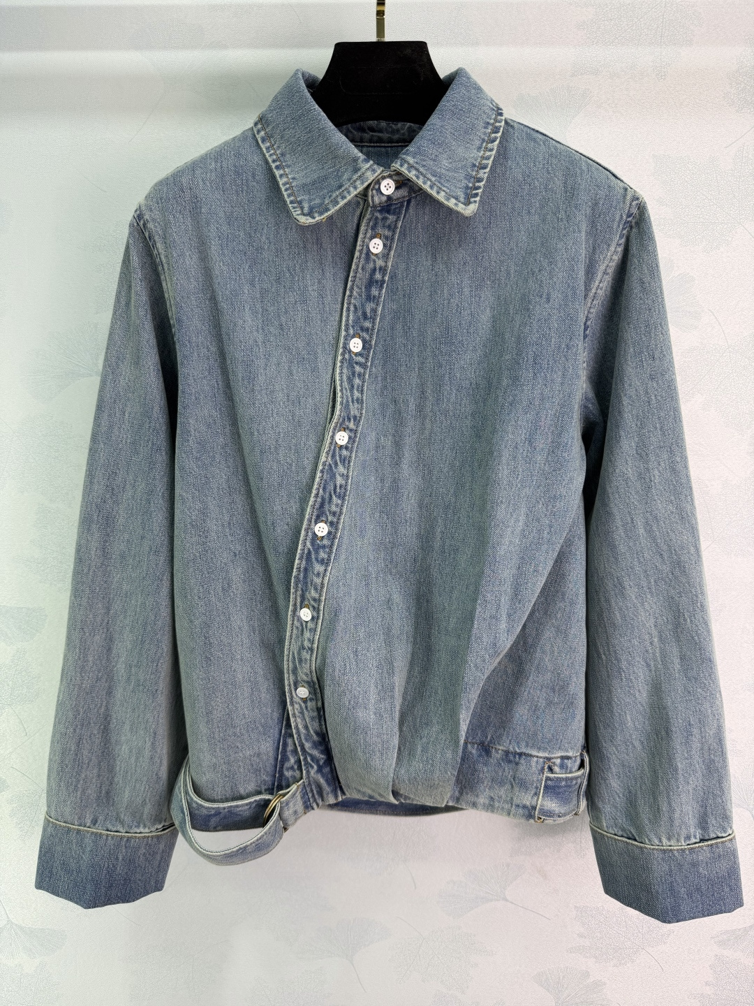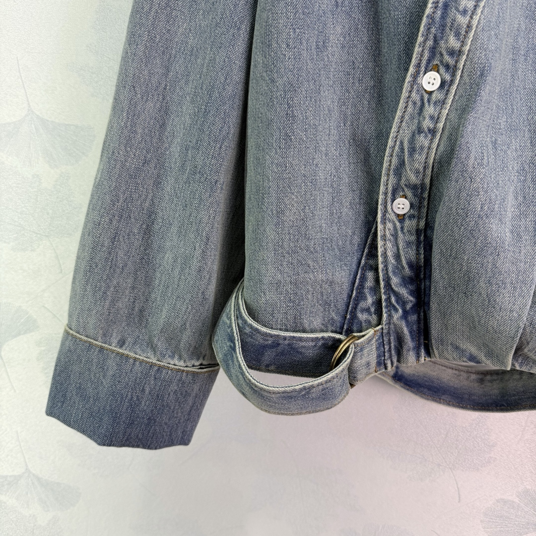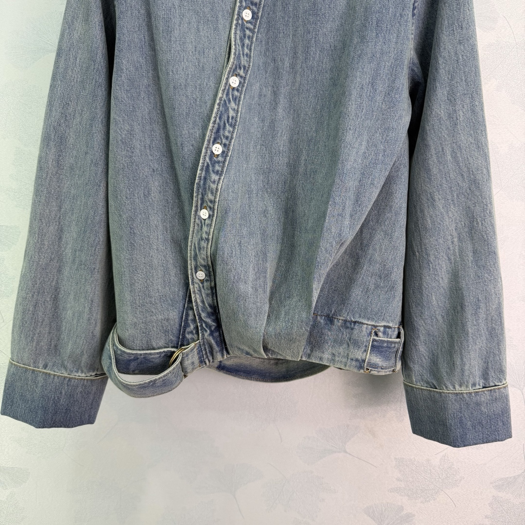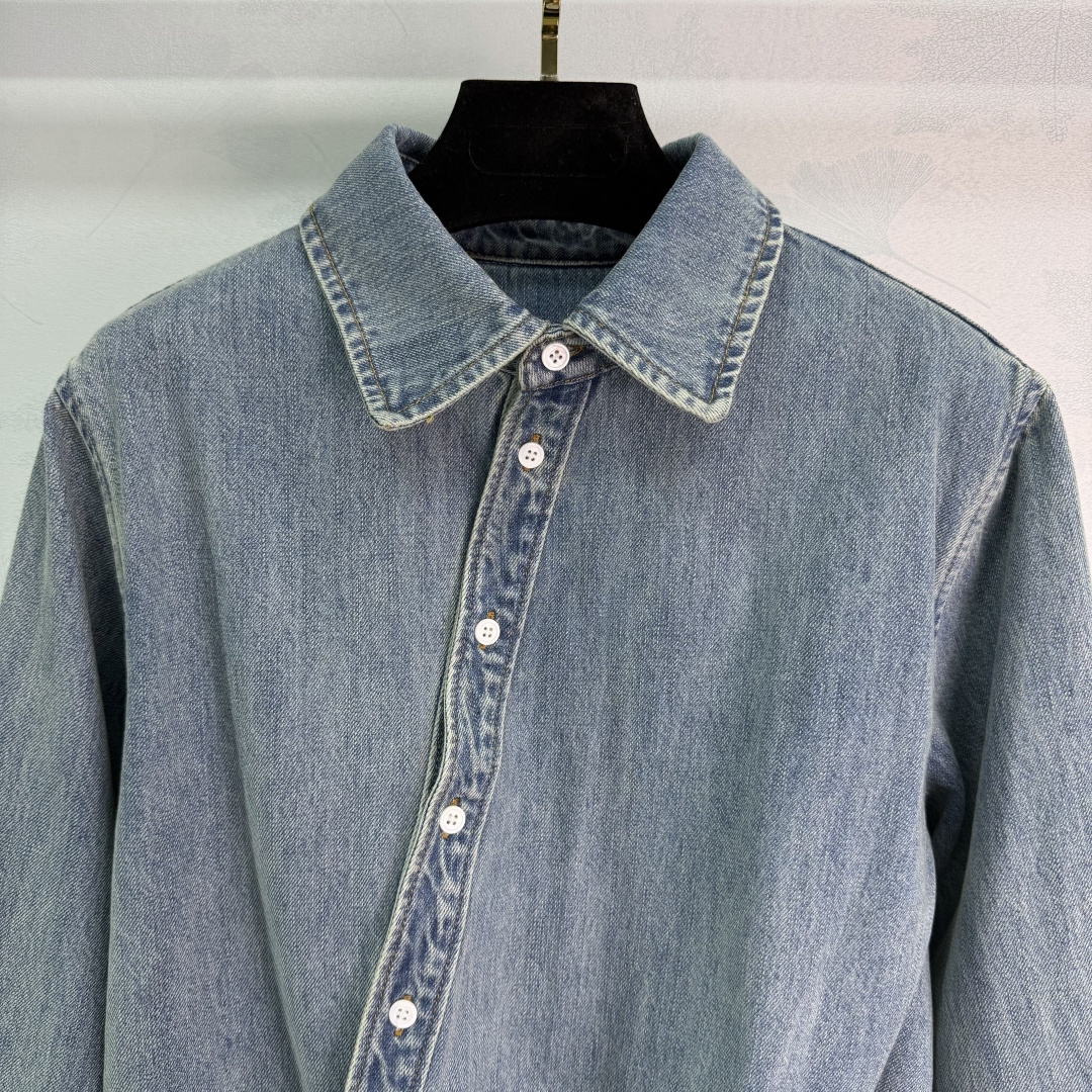 Details: Early spring denim shirt and wide-leg pants set, breathable and soft, asymmetric hem, structured design, coordinated and stylish outfit.