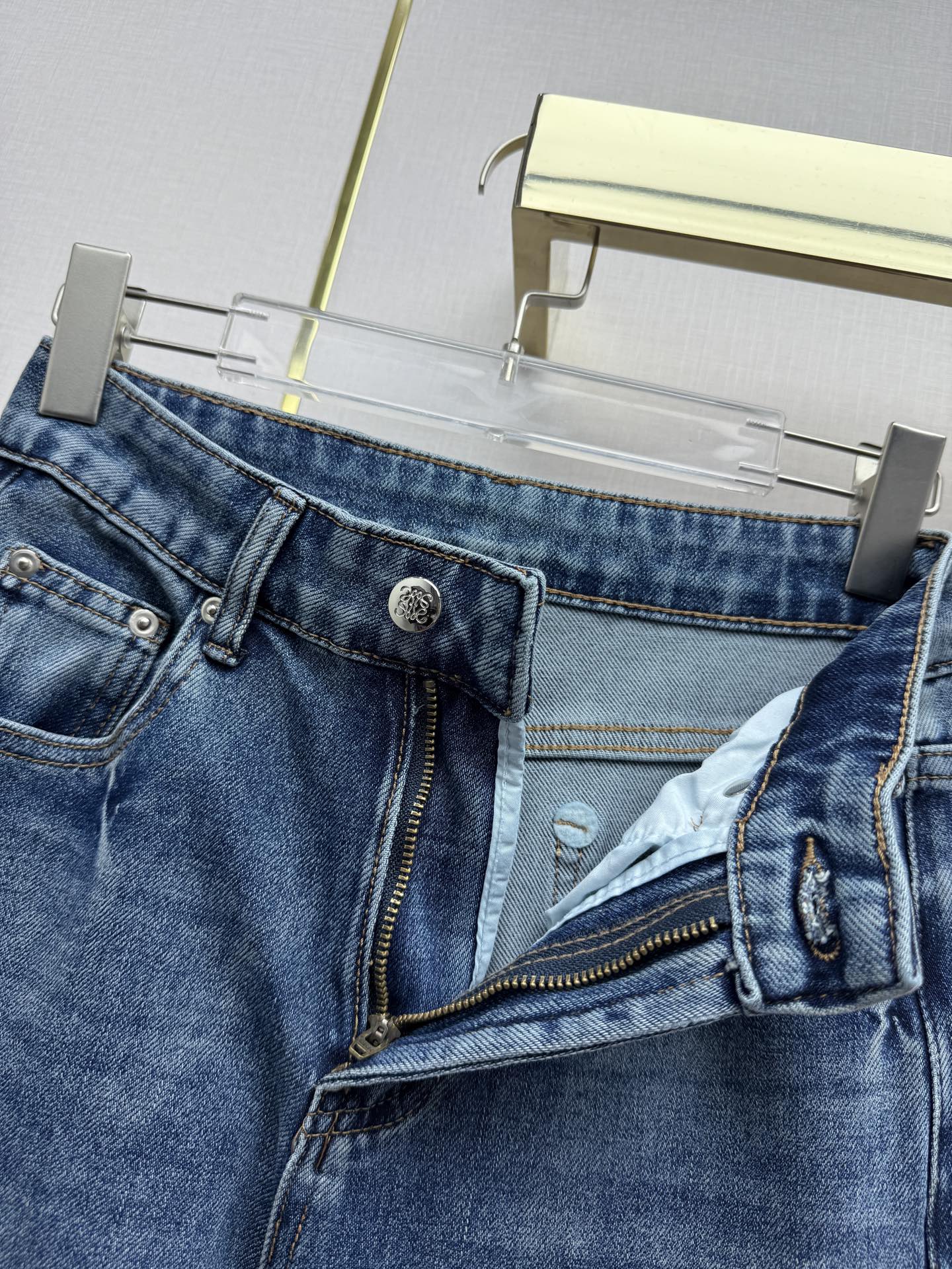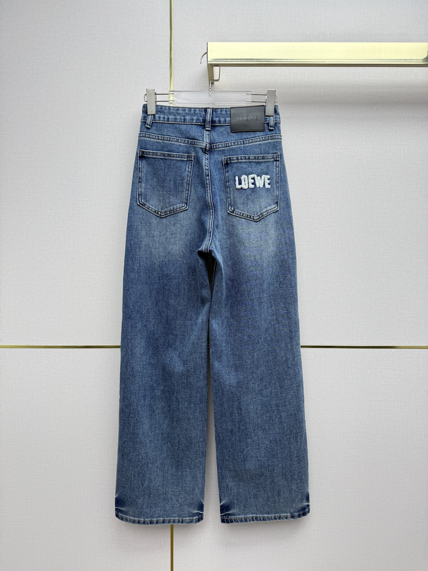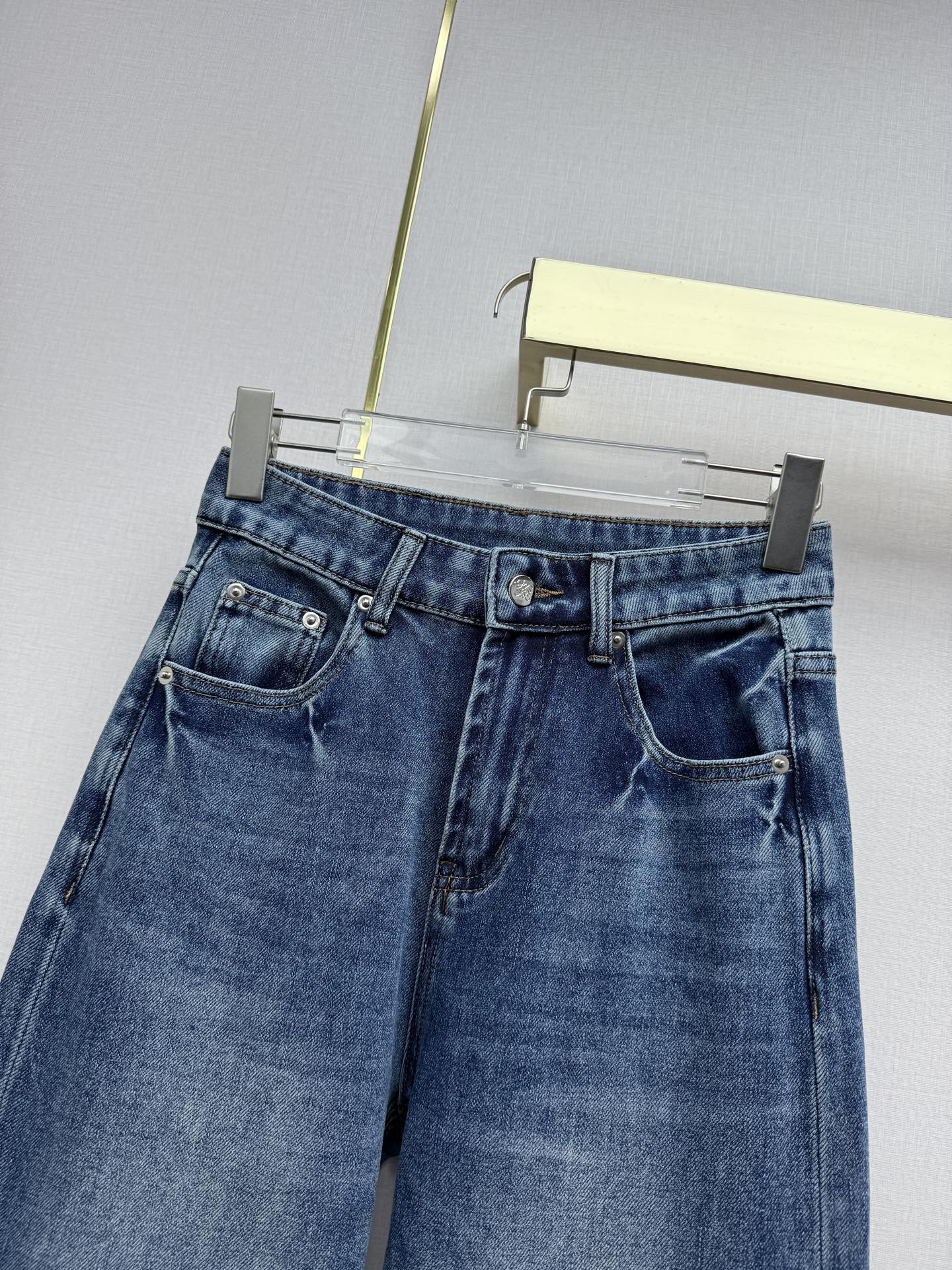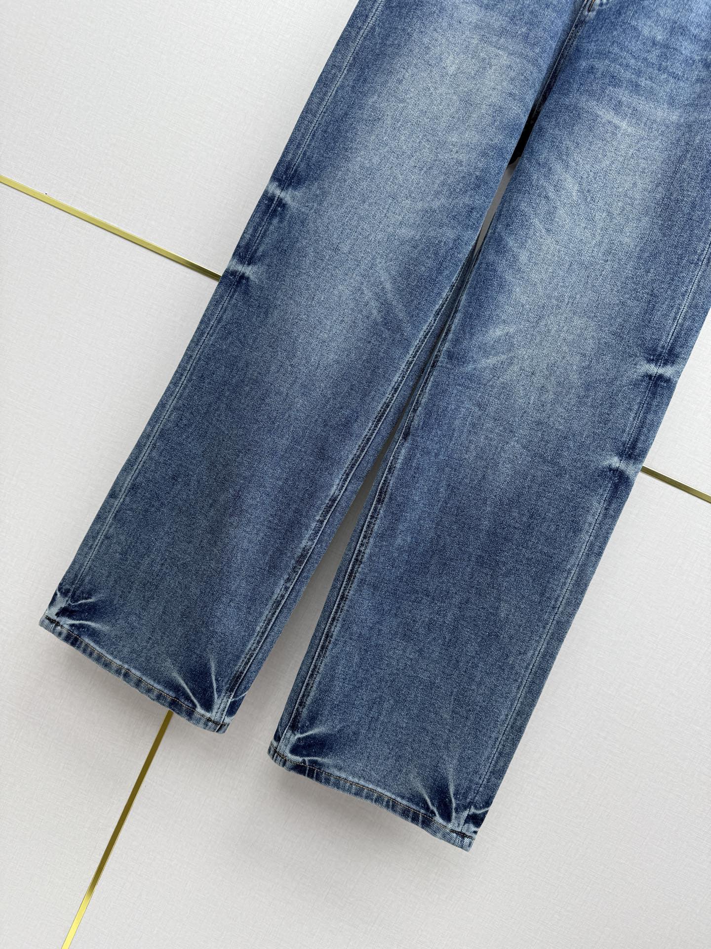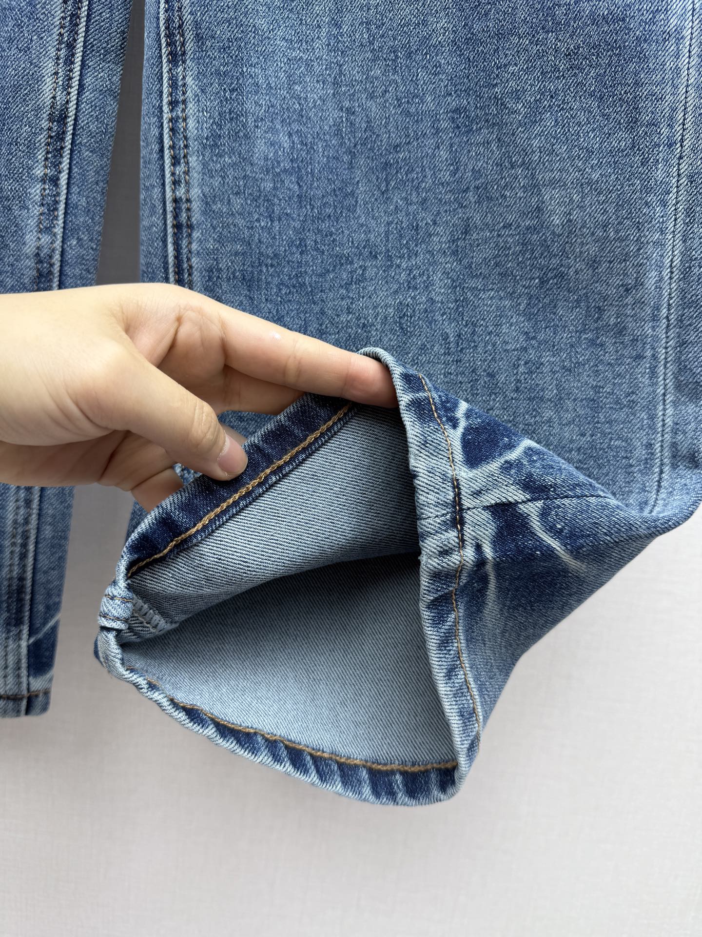 Details: Denim Straight - leg Pants with Embroidered Lettering, Gradient Wash, Stretchy Fabric, Versatile Staple, Available in Blue and Dark Blue, High - end Customization, Exquisite Craftsmanship