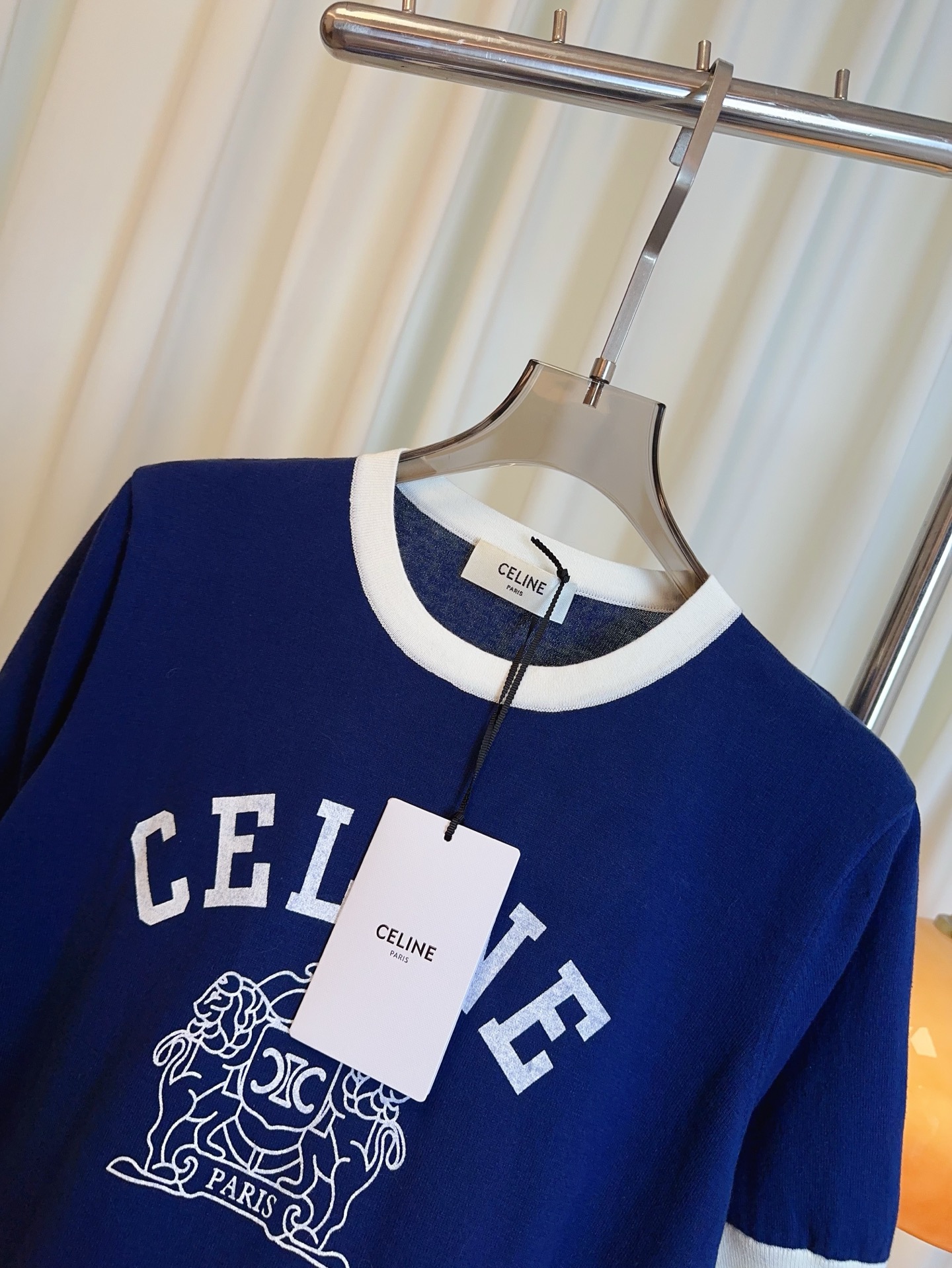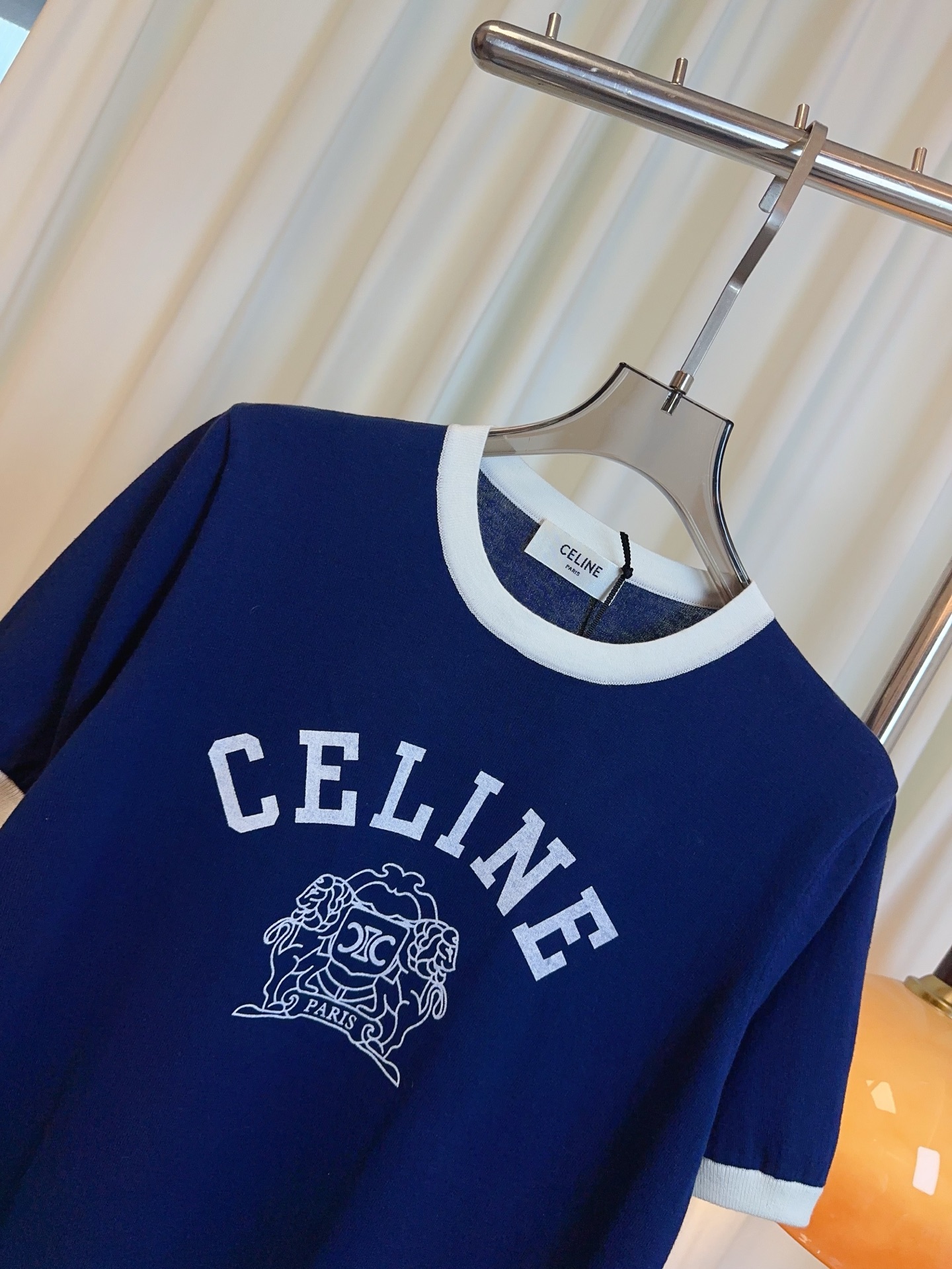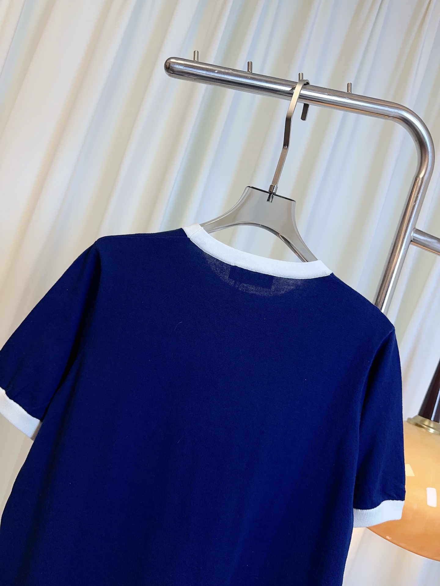 Details: New silk-cotton color-blocked short-sleeved top with logo, comfortable, delicate.