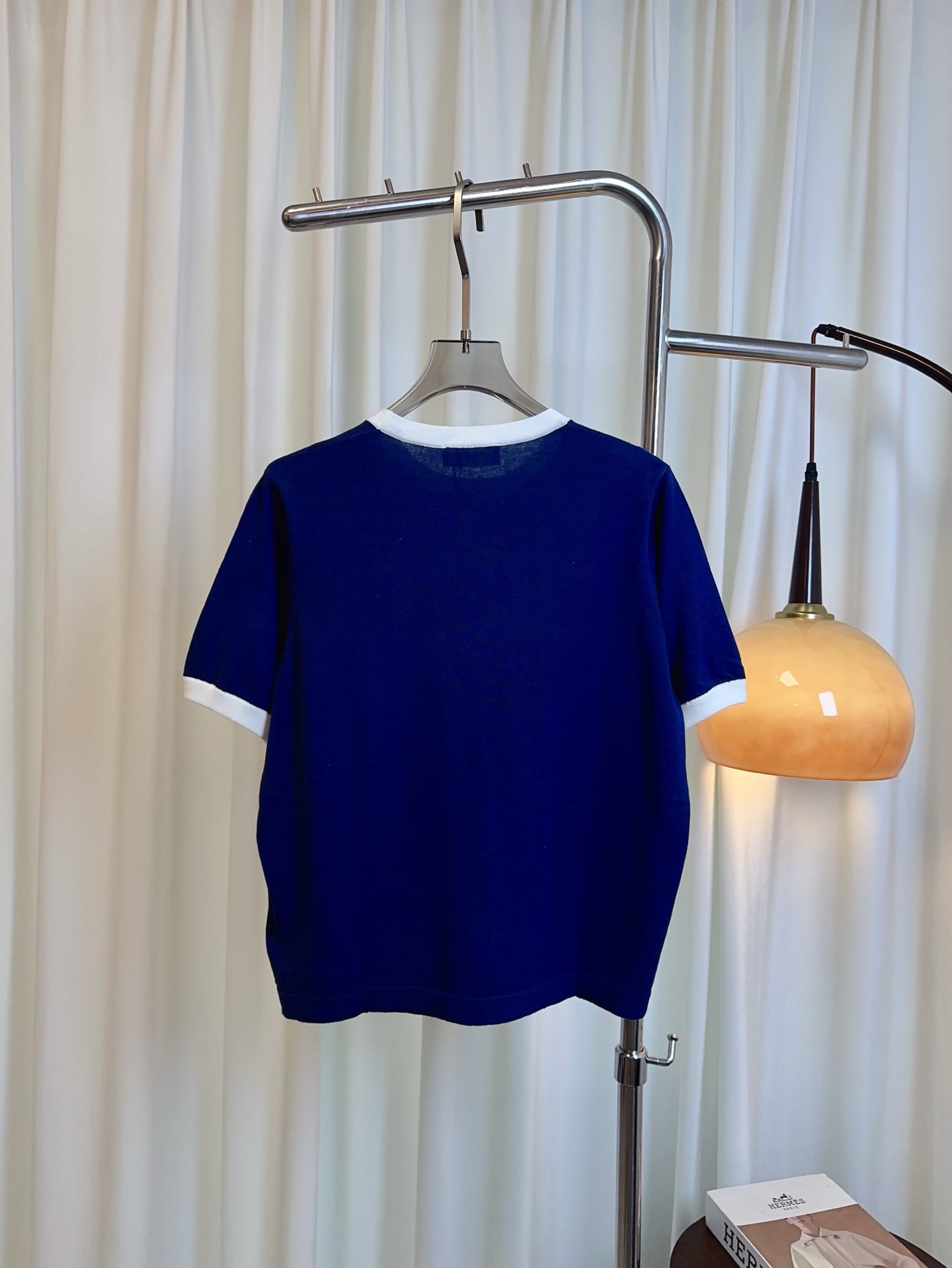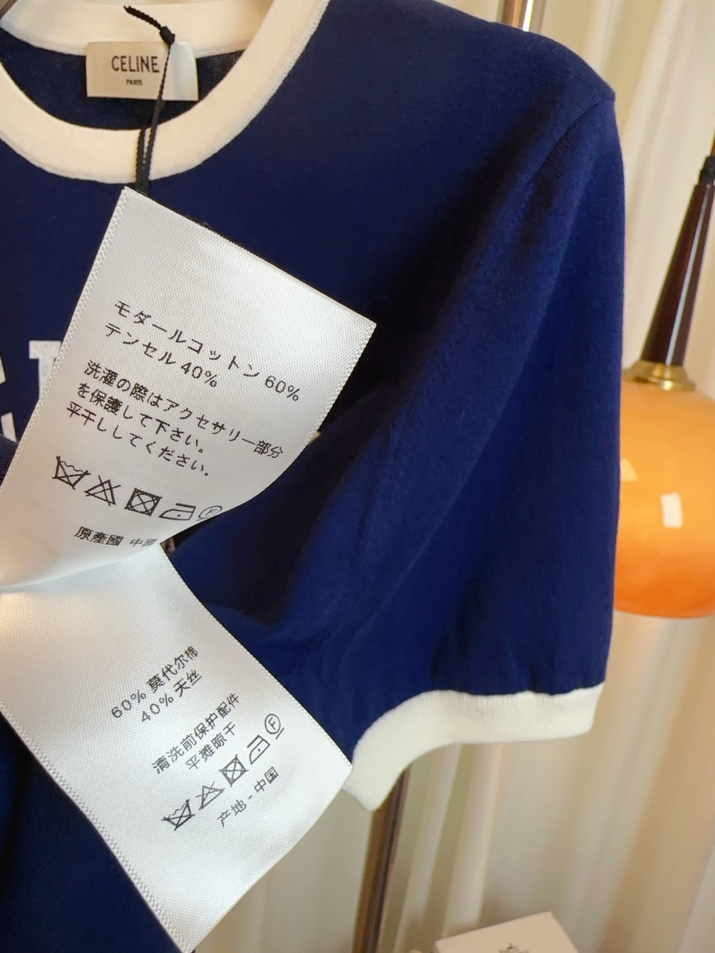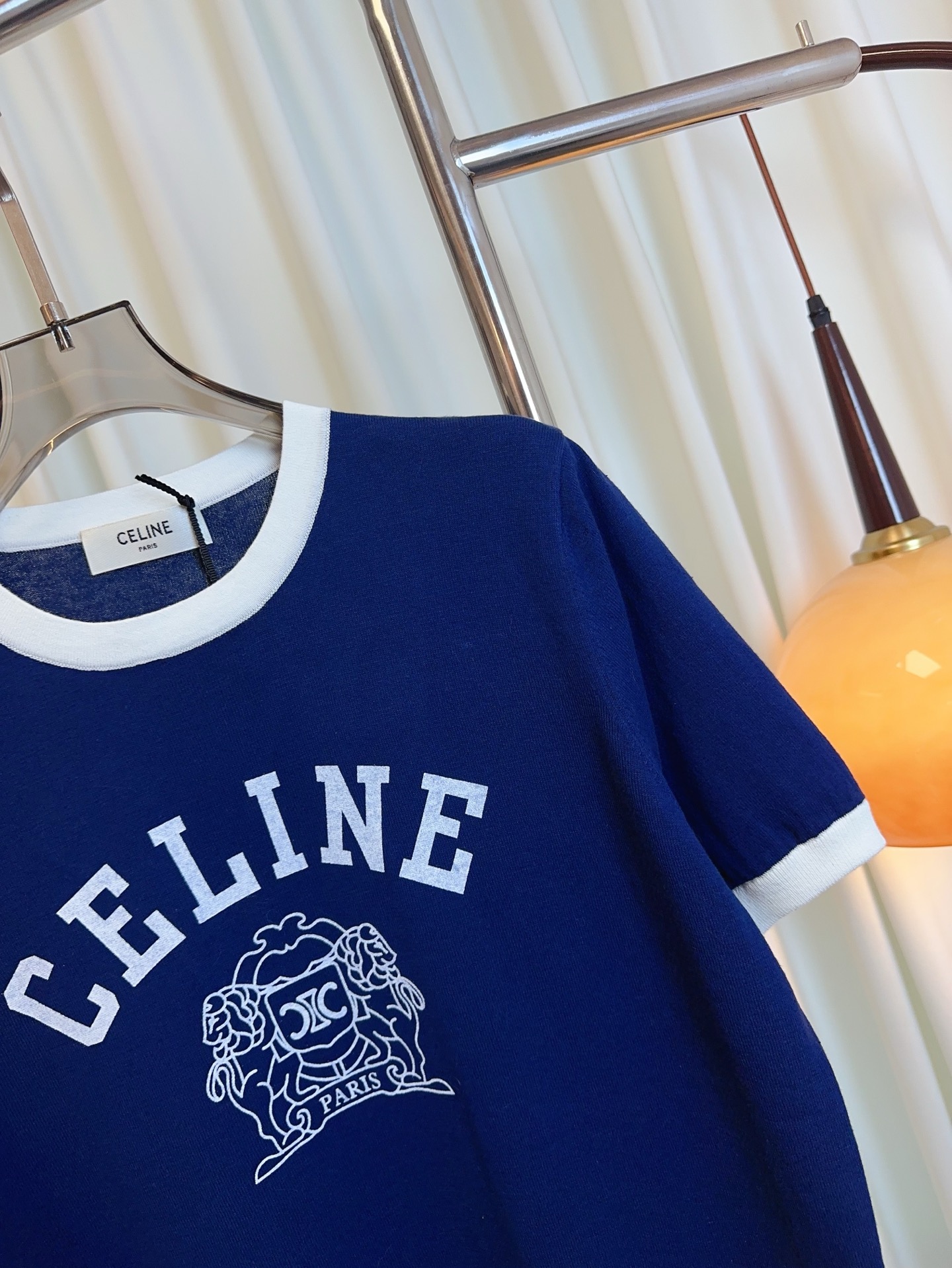 Details: New silk-cotton color-blocked short-sleeved top with logo, comfortable, delicate.