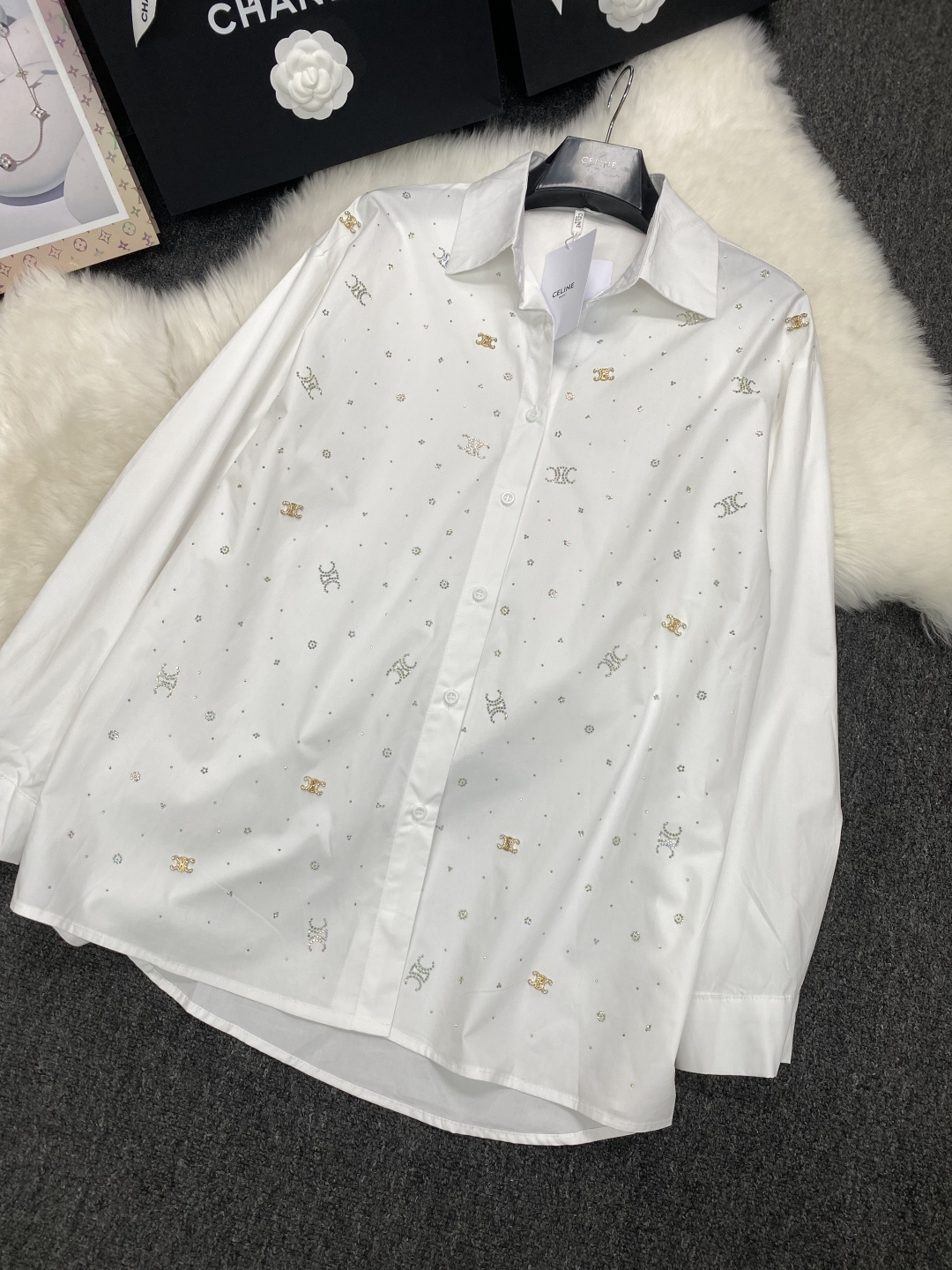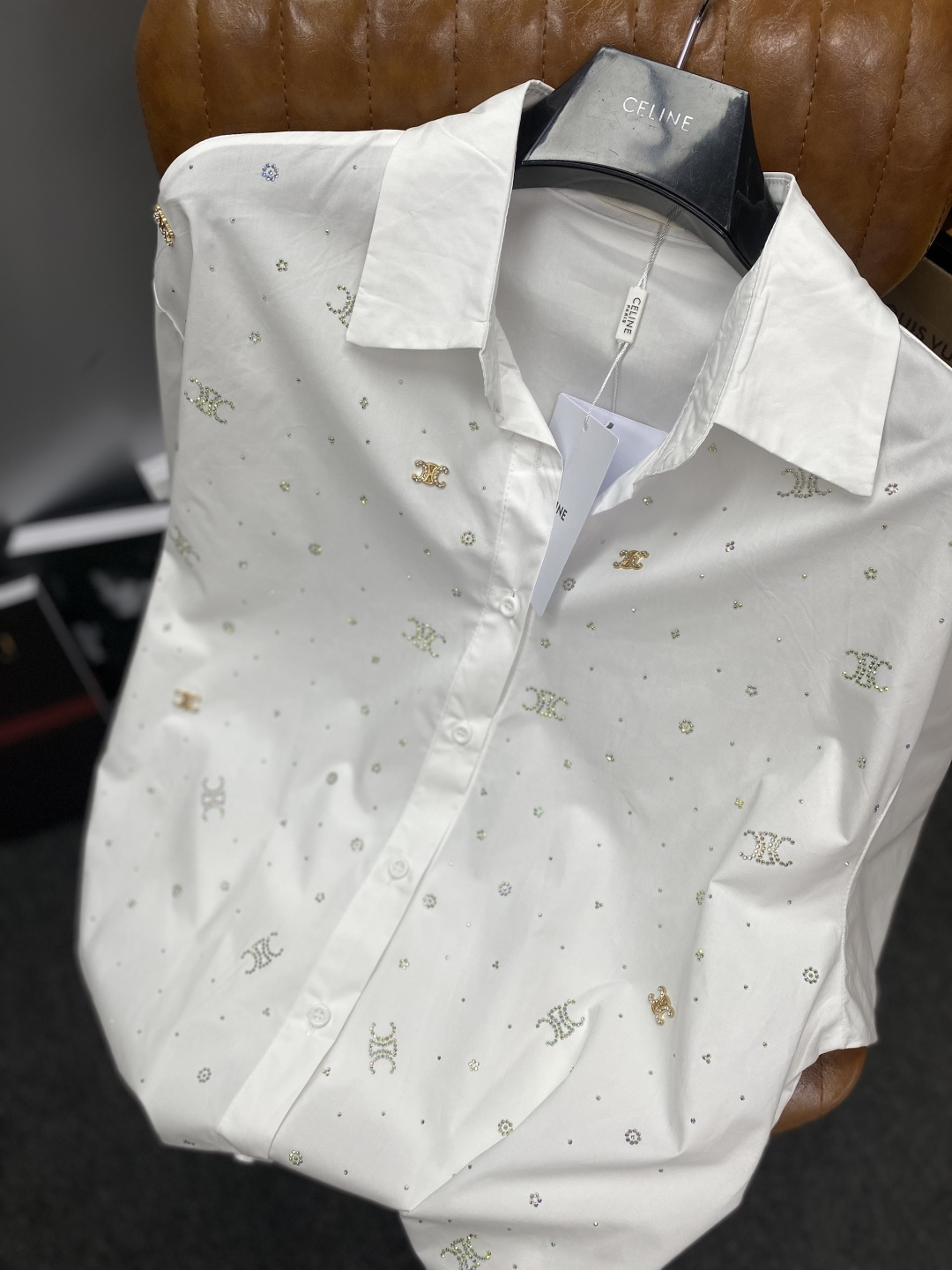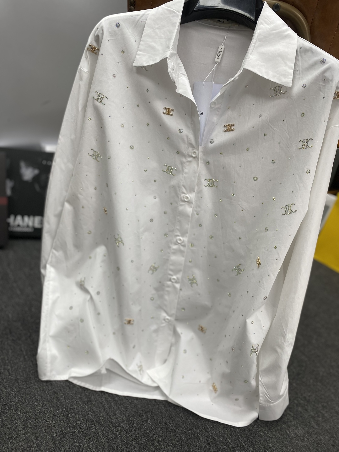 Details: New full - rhinestone brand logo badge shirt, simple and fashionable, soft fabric, available in black, white and blue, with sizes s, m, l