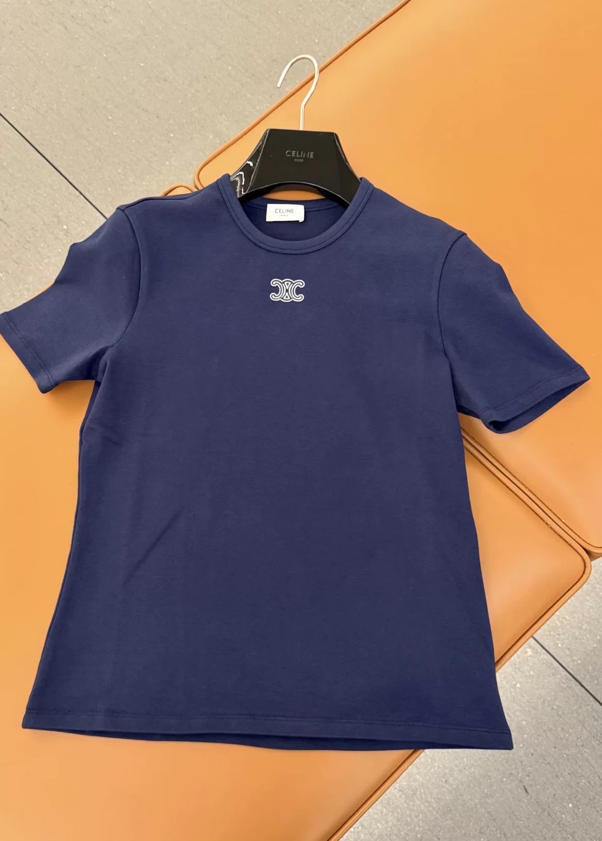 Details: New simple and fashionable round-neck short-sleeve T-shirt with embroidered logo, available in blue or white, size M