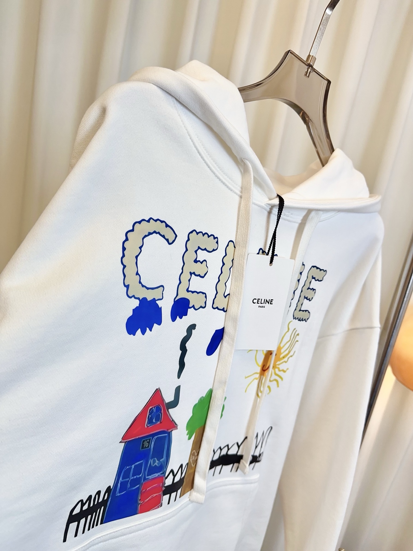 Details: New CE colorful printed logo hoodie, made of custom cotton fleece fabric. It has high weight, is soft and skin-friendly. The colorful printed logo embellishment makes it exquisite and unique. It s unisex, with high-end custom and fine workmanship, featuring 1:1 original quality.