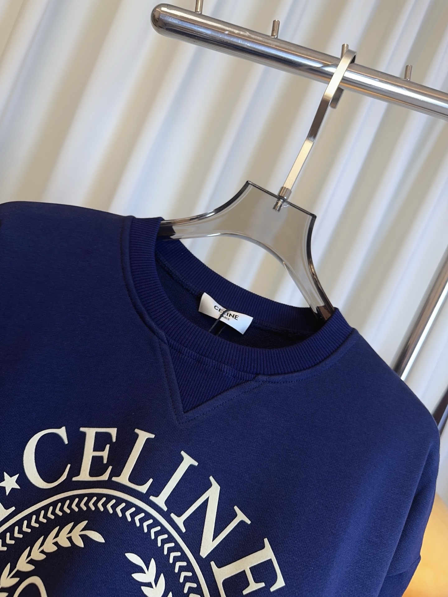 Details: New flocked logo sweatshirt made of looped cotton, breathable with drop-shoulder design, for girls, available in navy and black.