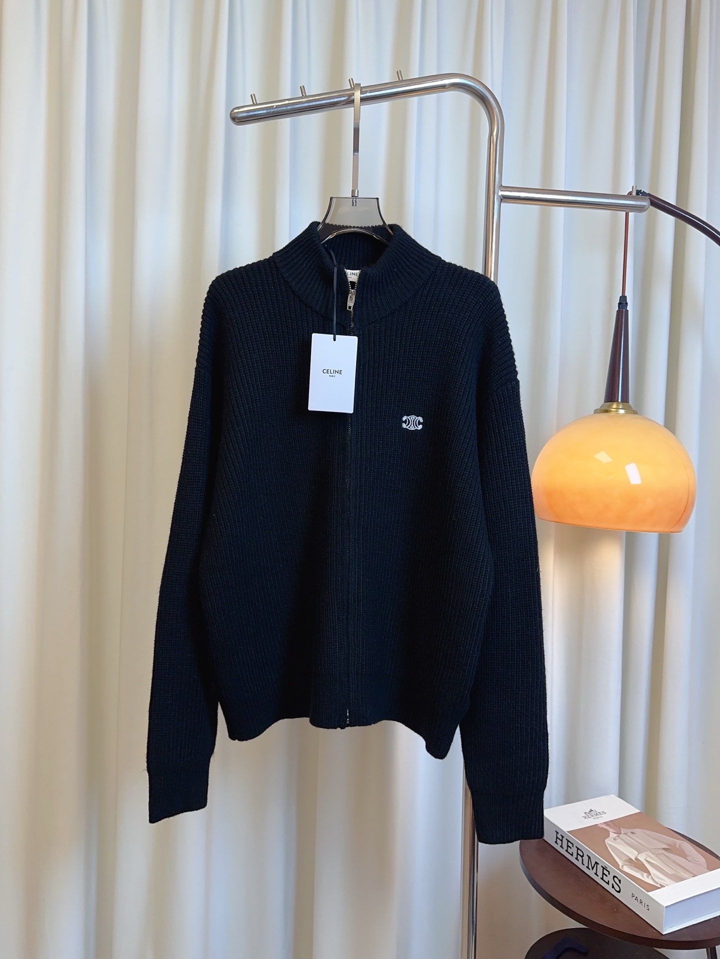 Details: New embroidered logo wool zip-up cardigan, warm and soft, decorated with logo.